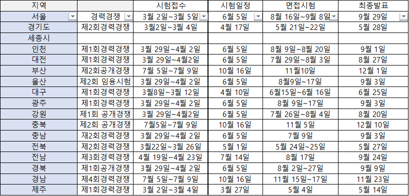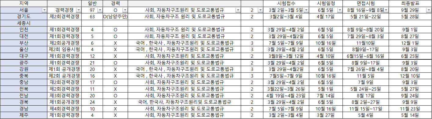 | 경력 제한 없이 면허만 있으면 응시 가능한 지역 | ||