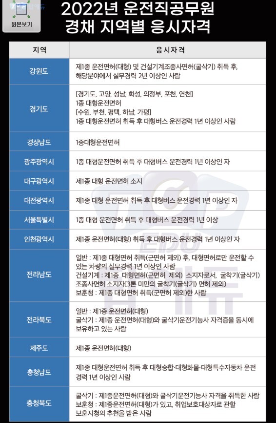 - 경력 : 서울시의 경우 대형 1년 경력 요함 (타지역의 경우 차이가 있음)