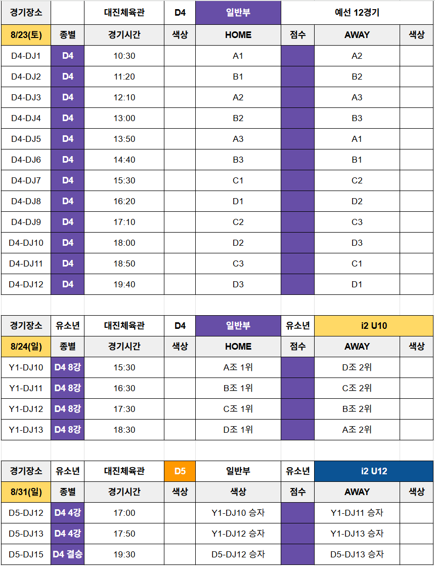 ※ 이 대회는 8/23(토) 오전 9시 개회식 참석이 필수입니다. 팀당 8명 이상 부탁드립니다.