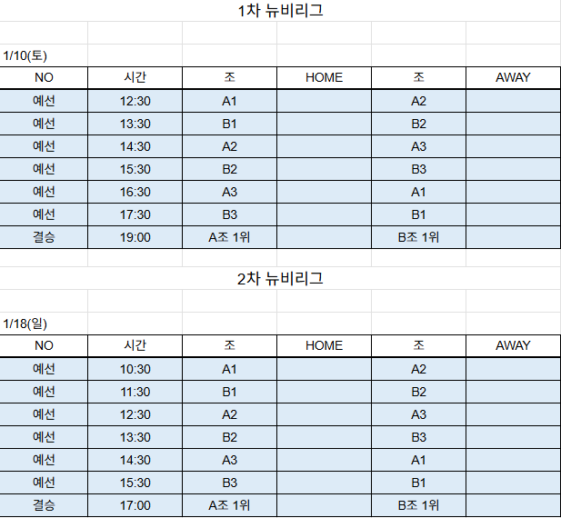 대회 방식 : 3팀 2개조 / 조별 1위간 결승전 진행