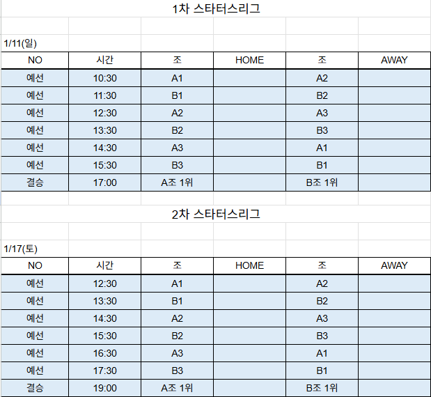 대회 방식 : 3팀 2개조 / 조별 1위간 결승전 진행