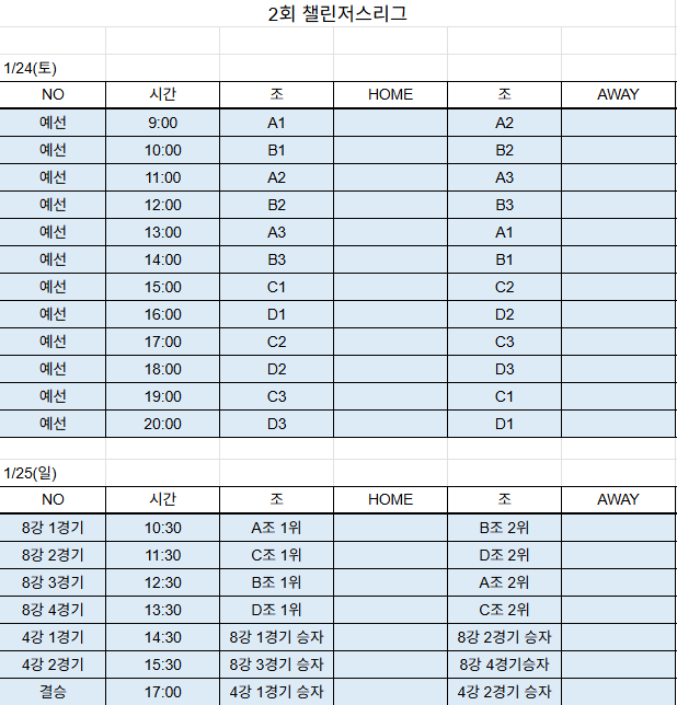 -대회일정 : 예선-1/24(토), 결선-1/25(일)