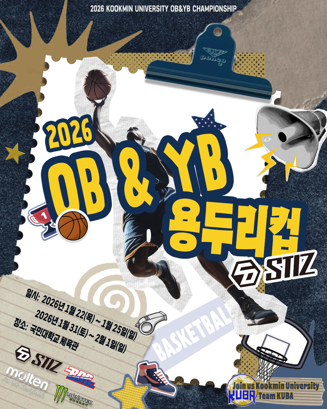 안녕하세요. 국민대학교 KUBA입니다. 여러분의 성원에 힘입어 2025년 여름 국민대학교 총장배 전국 아마추어 농구 대회를 성황리에 마무리 할 수 있었습니다. 감사드립니다.