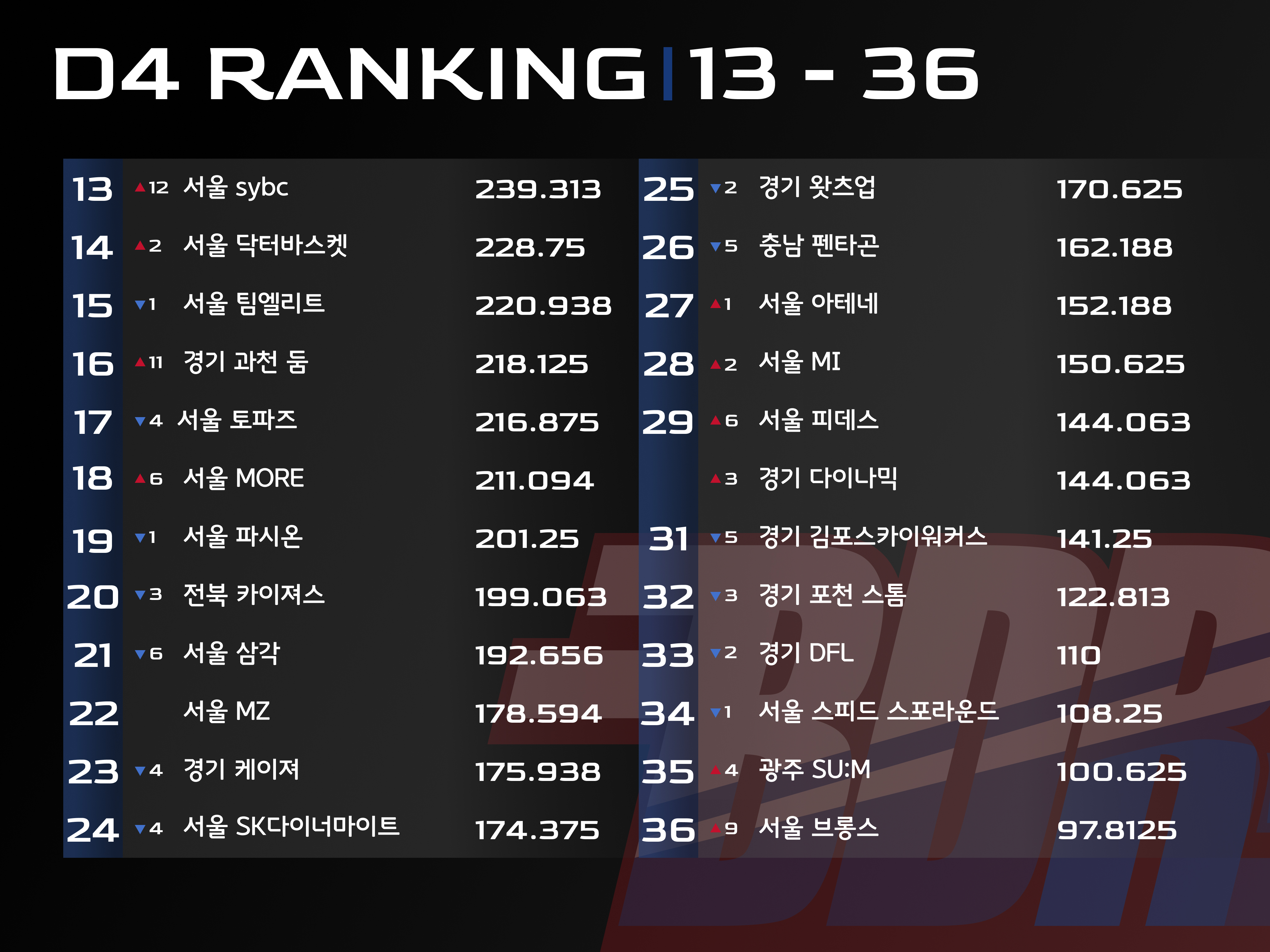 | 8월 | 경기 | BDR 자율리그 | D5 | 10 |