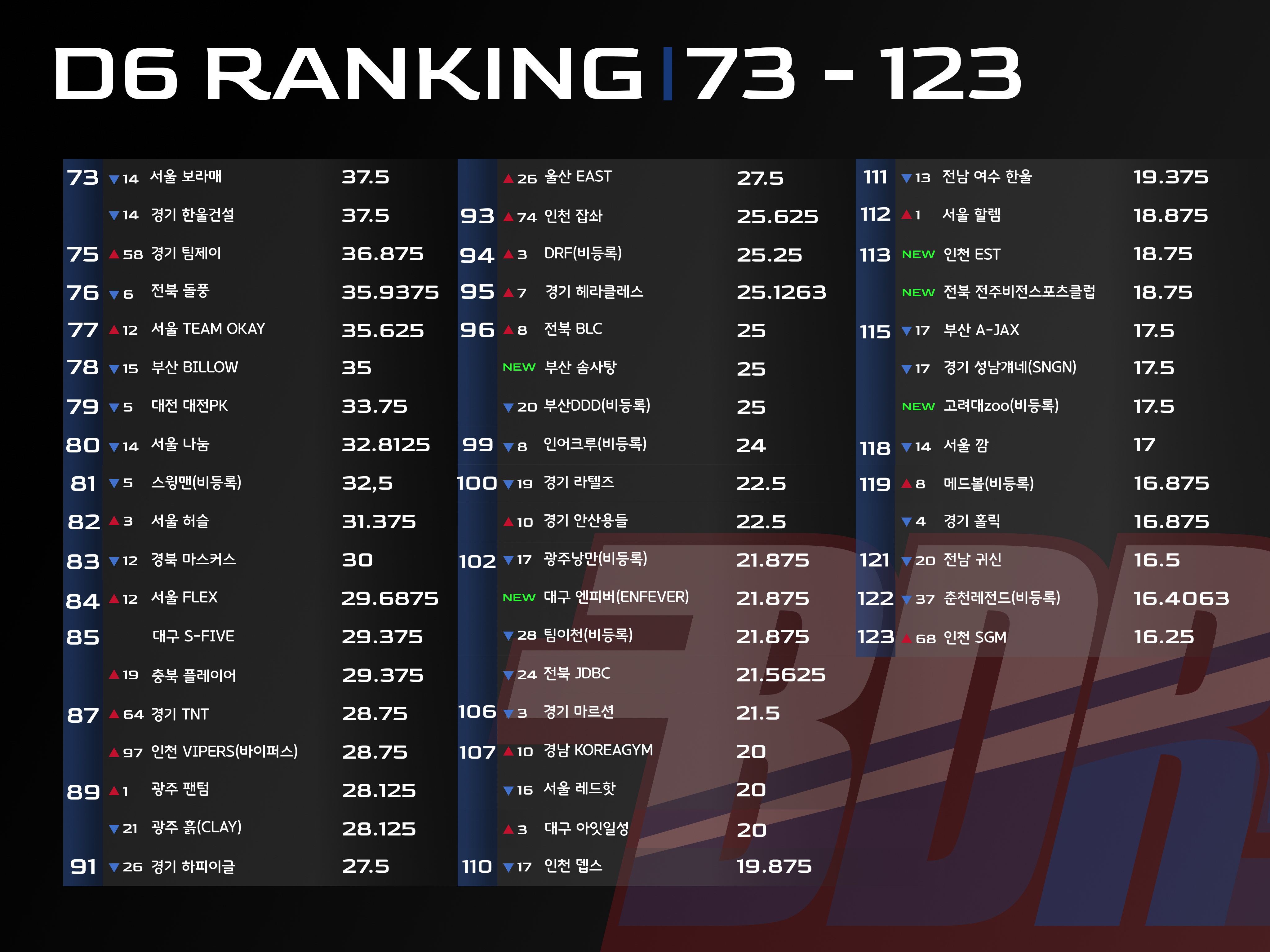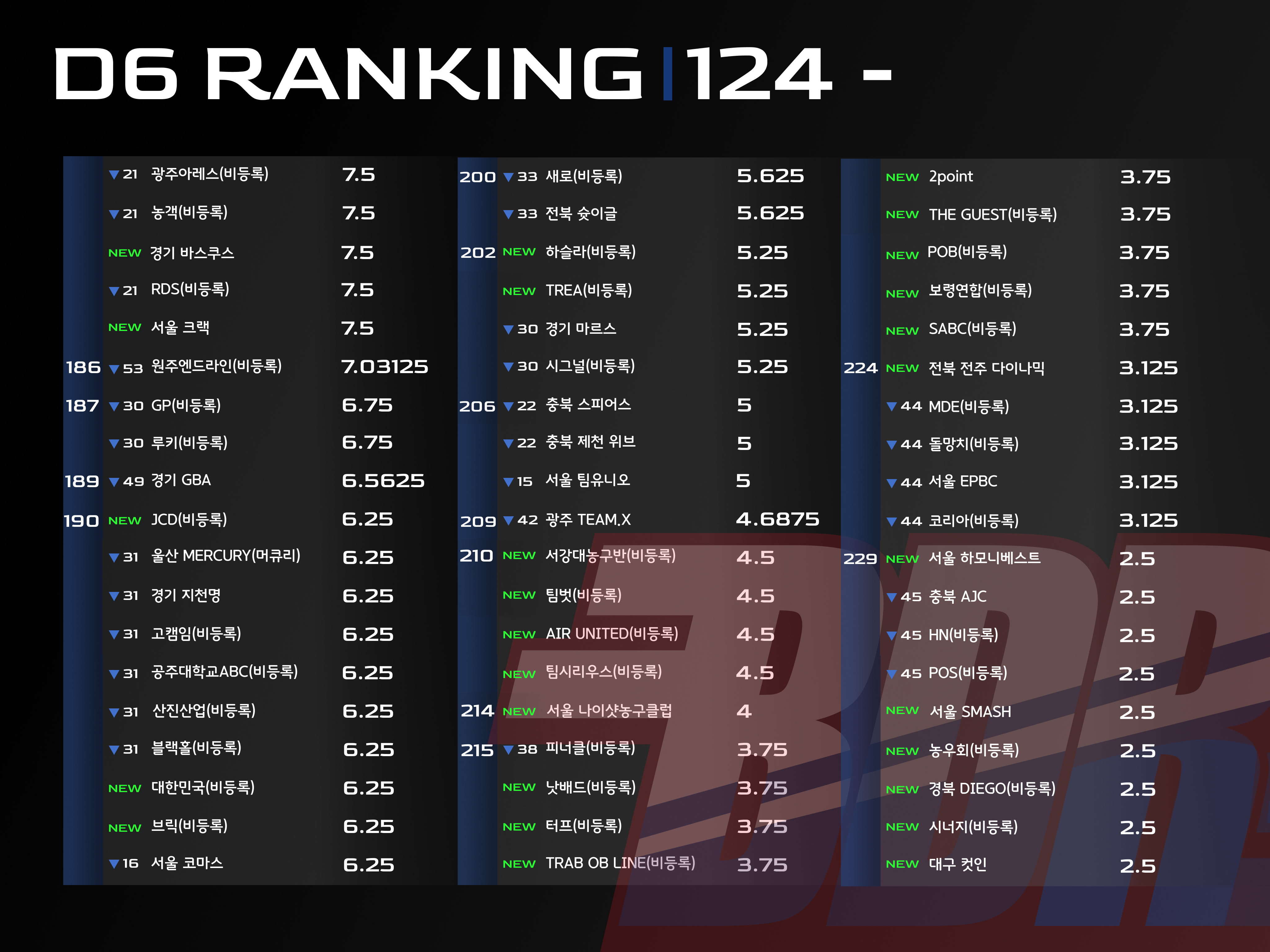 | 6월 | 경기 | 비기너스 | D6 | 8 |