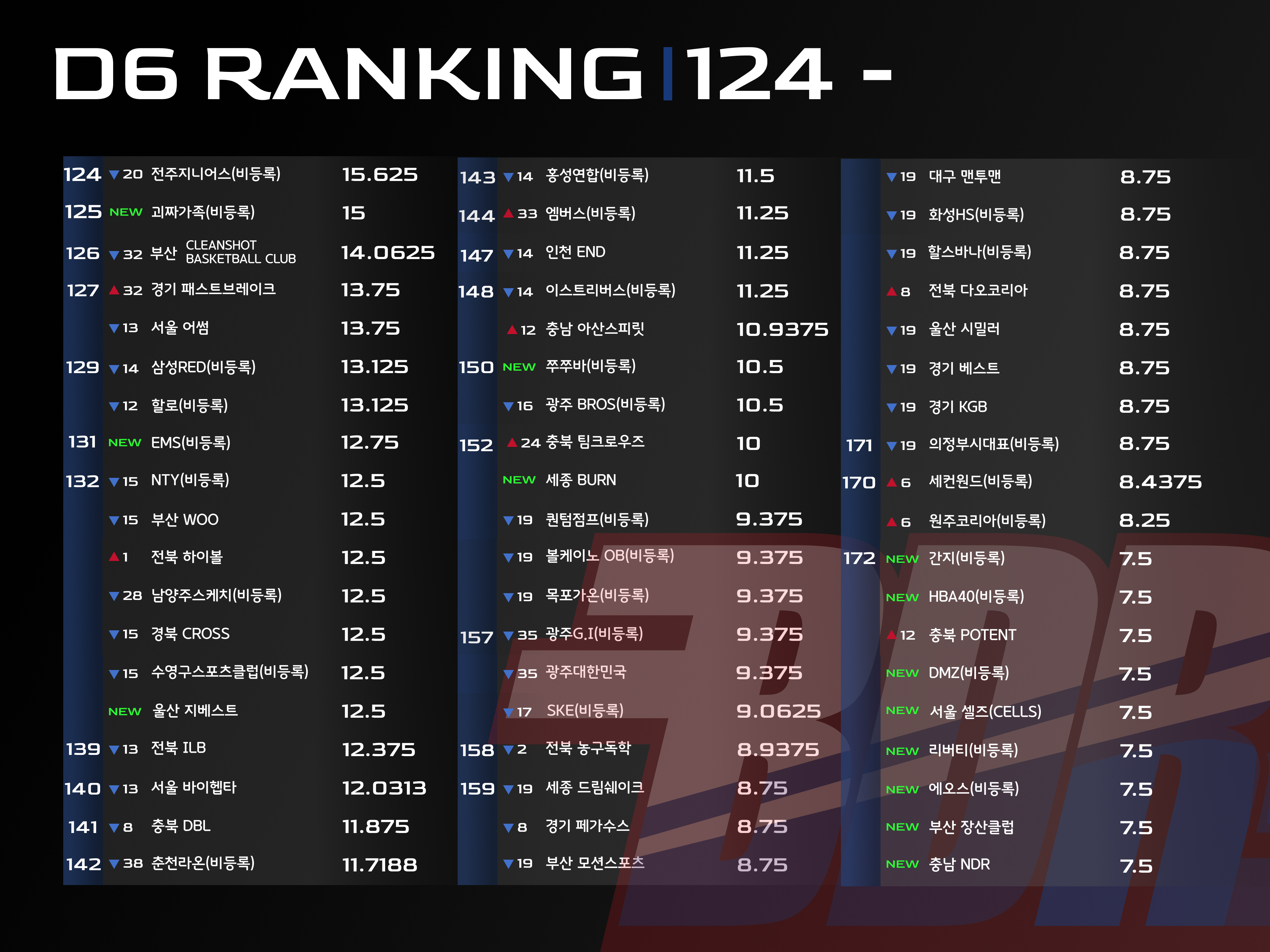 | 6월 | 인천 | 농구연구소 비선출챔피언쉽 3회 | D5 | 24 |