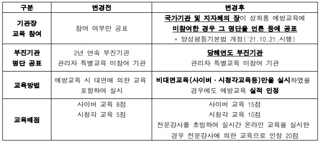 『2021년 폭력예방교육 운영안내(지침)』주요 변경 사항을 아래와 같이 안내하오니, 기관에서는