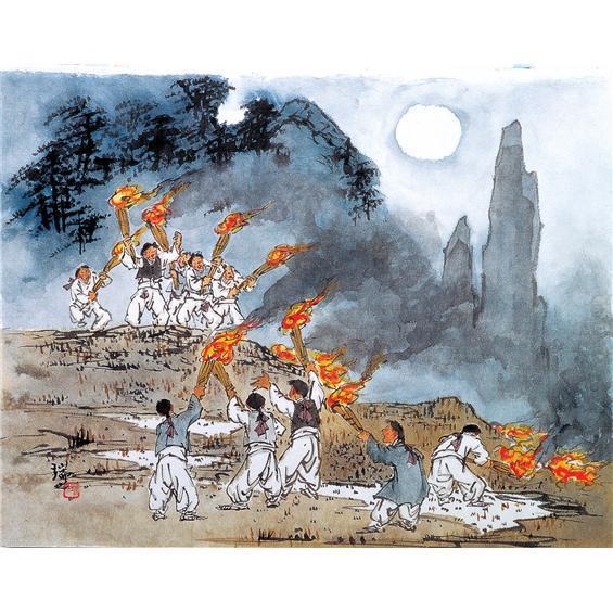 짚으로 만든 커다란 달집을 만들어 달이 뜰 때 풍물을 치며 태우는 달집 태우기를 하였으며 답집이 고르게 타면 그 해 풍년이 왔다고 합니다.