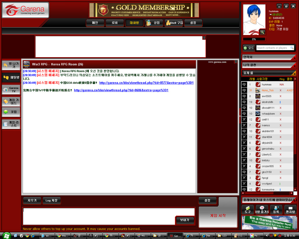 2. 방장을 공유기라할지라도 할수있다, (가레나에서 왠만하면 호스트 될 수 있습니다)
