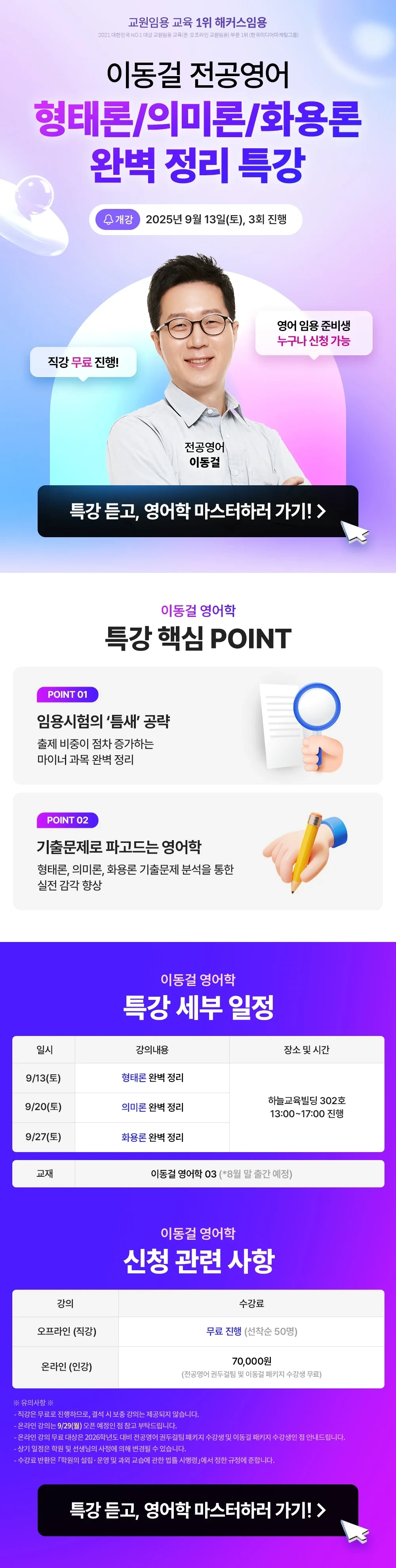 [신청마감]9월 정리 특강: 형태론/의미론/화용론 작성자이동걸|작성시간25.08.21|조회수179 목록 댓글 3 글자크기 작게가 글자크기 크게가 다음검색 현재 게시글 추가 기능 열기 북마크 공유하기 신고 센터로 신고 댓글 댓글 3 댓글쓰기 답글쓰기 댓글 리스트 해당 댓글은 작성자와 운영진만 볼 수 있습니다. 해당 댓글은 작성자와 운영진만 볼 수 있습니다. 작성자이티의꾸움 | 작성시간 25.09.30 교수님 안녕하세요 9-10월 종합반 수강중인데요 의미화용론 강의를 인강으로 신청하고 싶은데 못찾겠어요 ㅠㅠ 댓글 전체보기