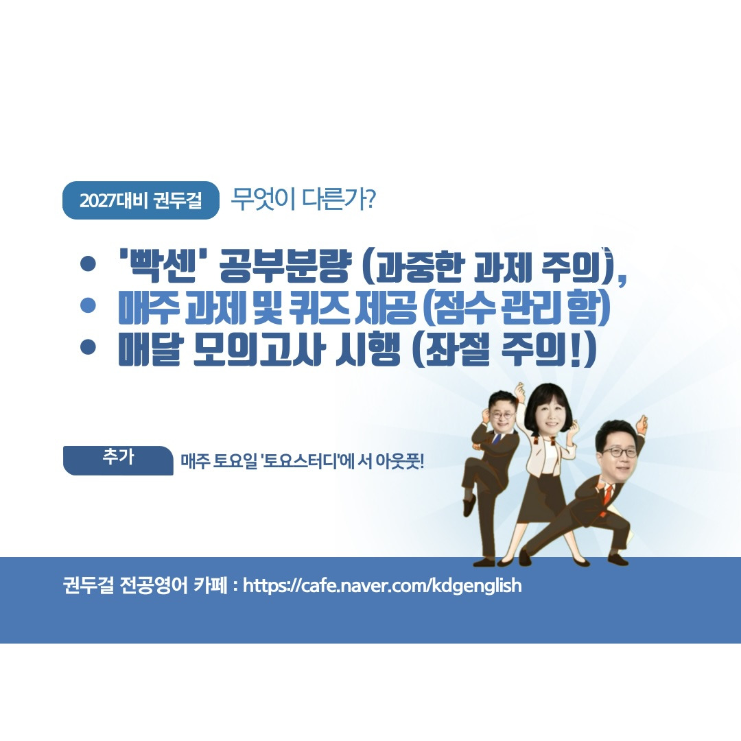 '이젠, 합격하는 공부하자' 2026년 1월2일 개강! 작성자이동걸|작성시간25.12.31|조회수107 목록 댓글 0 글자크기 작게가 글자크기 크게가 다음검색 현재 게시글 추가 기능 열기 북마크 공유하기 신고 센터로 신고 댓글 댓글 0 댓글쓰기 답글쓰기 댓글 리스트