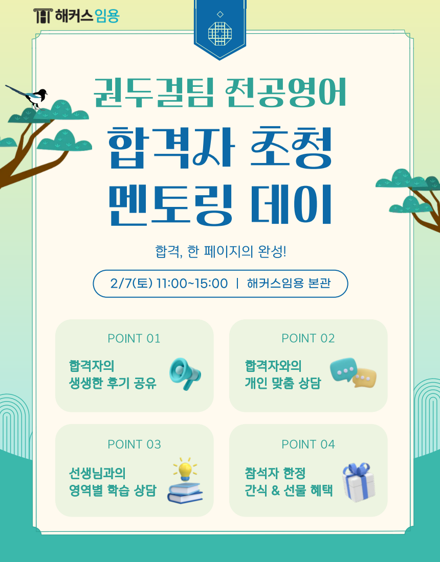 2026 합격자 초청 멘토링 데이 작성자이동걸|작성시간26.01.26|조회수92 목록 댓글 0 글자크기 작게가 글자크기 크게가 다음검색 현재 게시글 추가 기능 열기 북마크 공유하기 신고 센터로 신고 댓글 댓글 0 댓글쓰기 답글쓰기 댓글 리스트