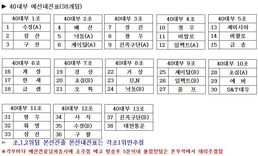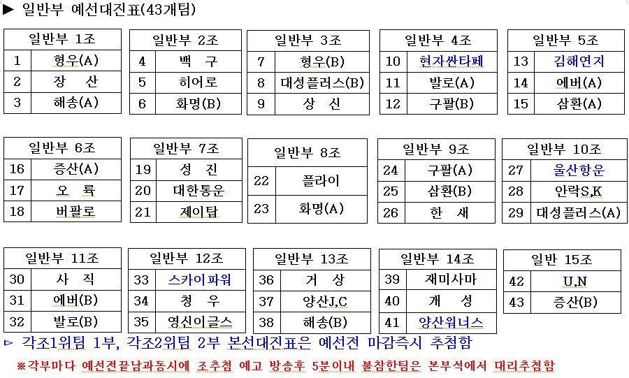 [스크랩] 2011년 신춘족구대회 대진표 작성자꽃돌이(호천-심재율)|작성시간11.03.25|조회수21 목록 댓글 0 글자크기 작게가 글자크기 크게가 ▶일반부_예선대진표(신춘)[1].hwp 첨부파일첨부된 파일이 4개 있습니다. jpg 파일 1.jpg 다운로드 jpg 파일 2.jpg 다운로드 jpg 파일 3.jpg 다운로드 hwp 파일 ▶일반부_예선대진표(신춘)[1].hwp 다운로드 다음검색 스크랩 원문 : 부산광역시족구연합회 현재 게시글 추가 기능 열기 북마크 공유하기 신고 센터로 신고 댓글 댓글 0 댓글쓰기 답글쓰기 댓글 리스트