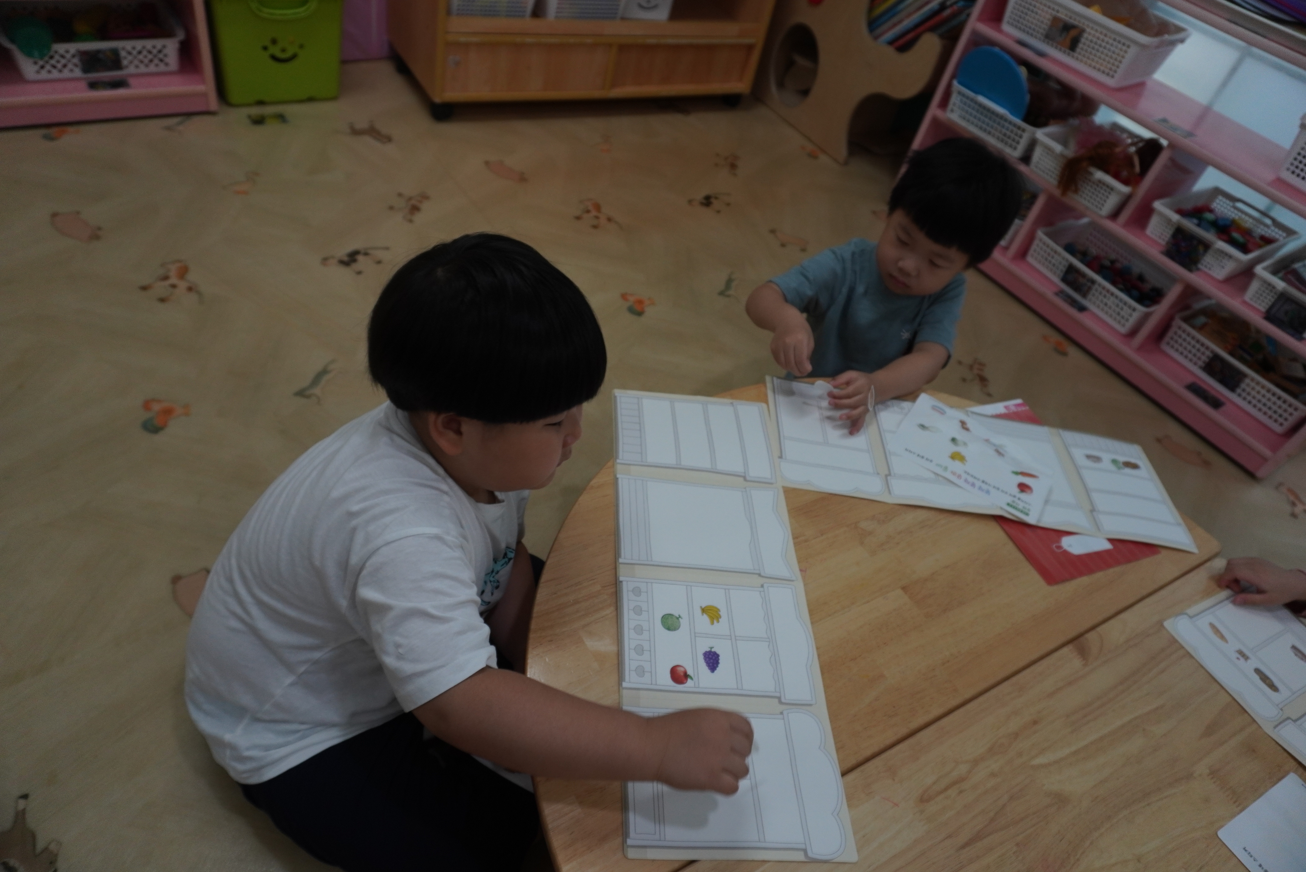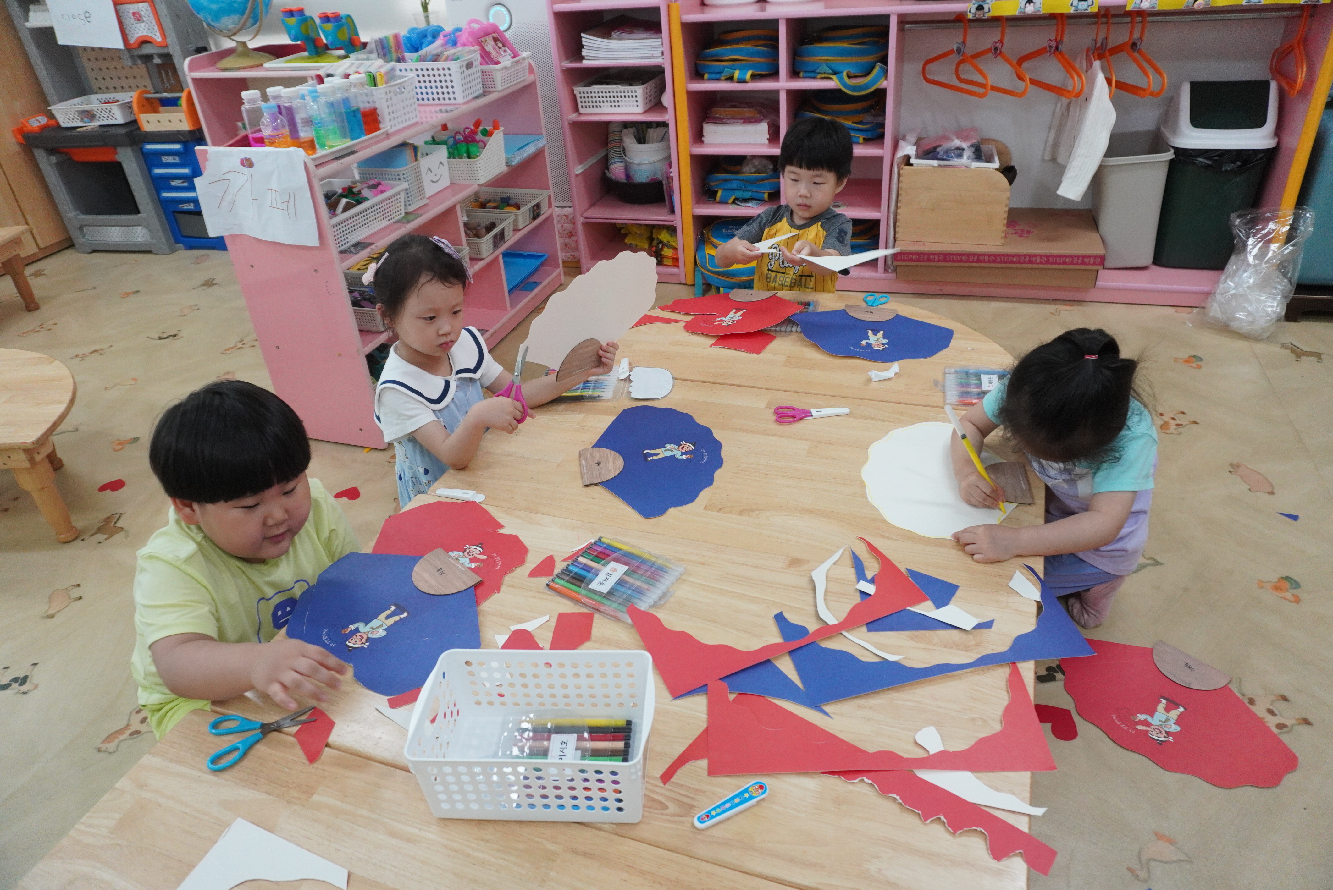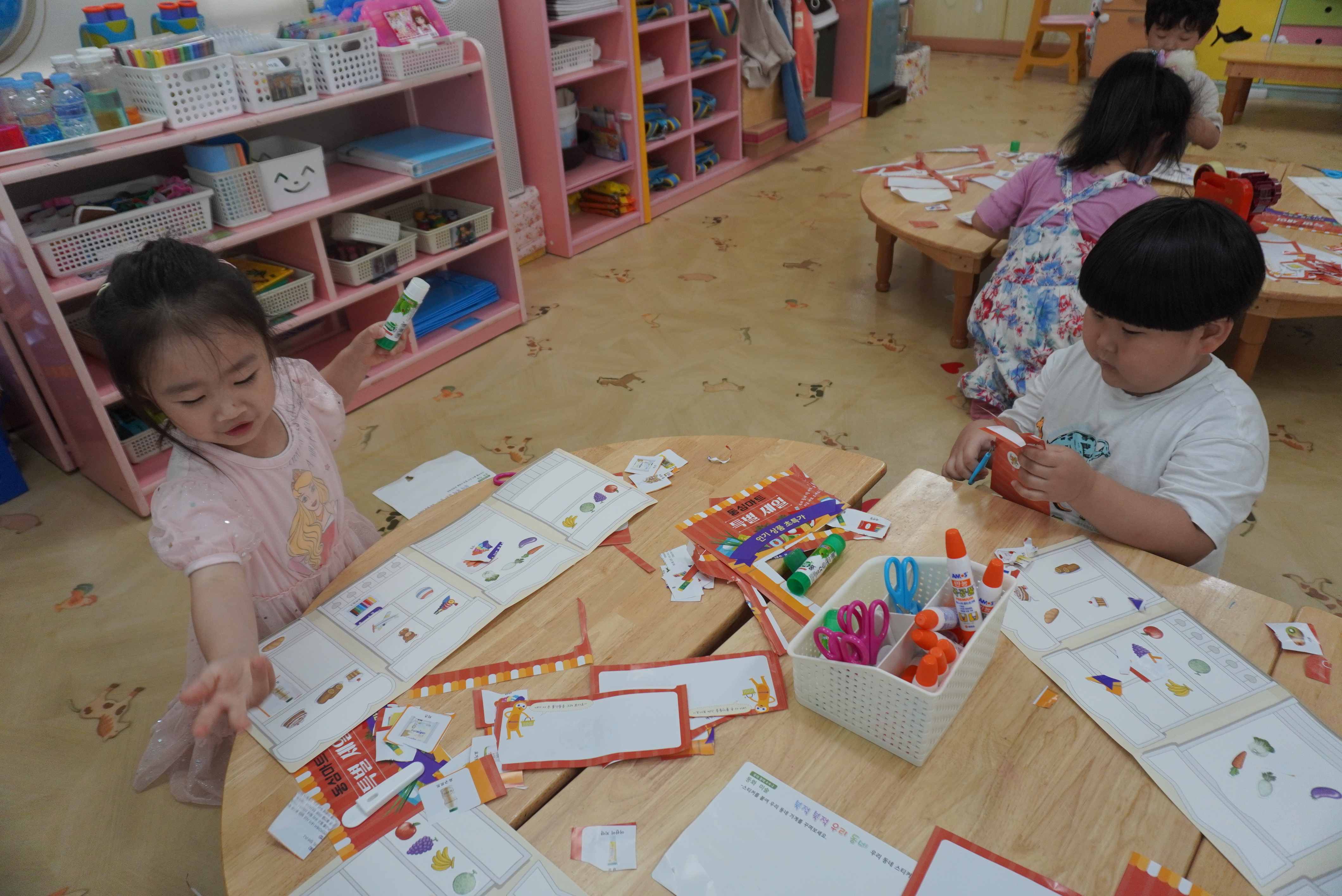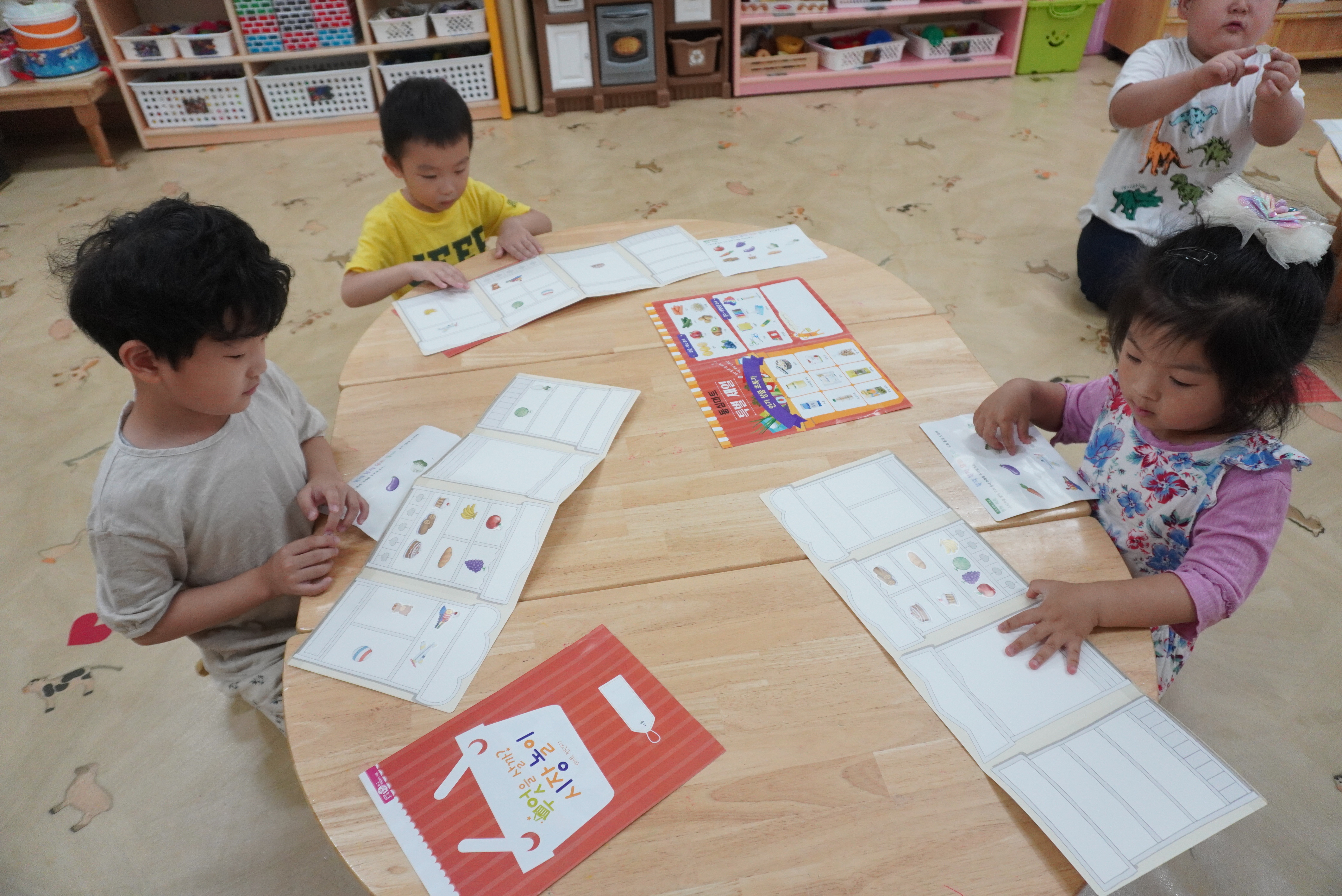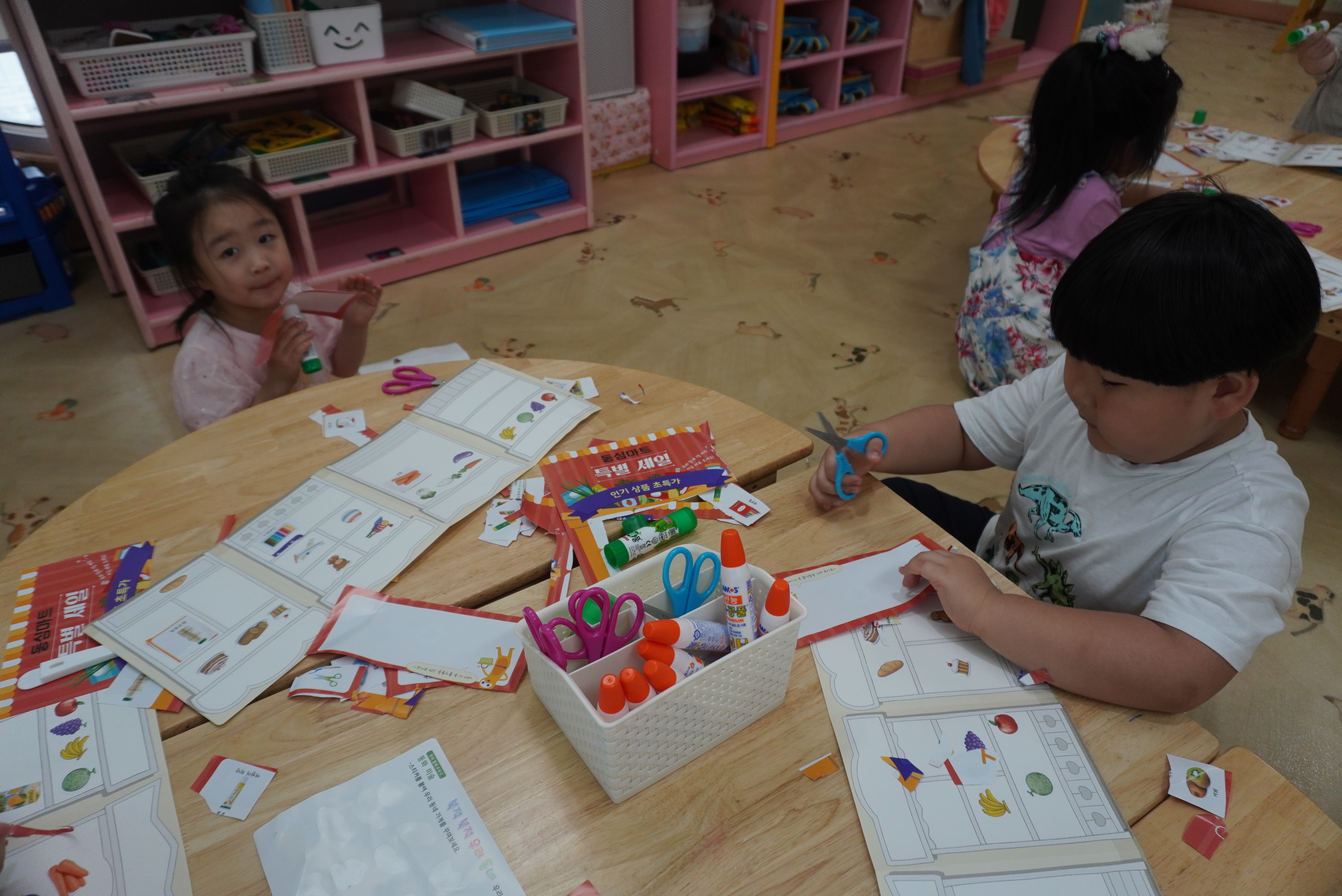 ♣ 전단지와 스티커를 이용해서 가게별로 물건 분류하고 “빨간부채 파란부태” 동화를 듣고 난 후