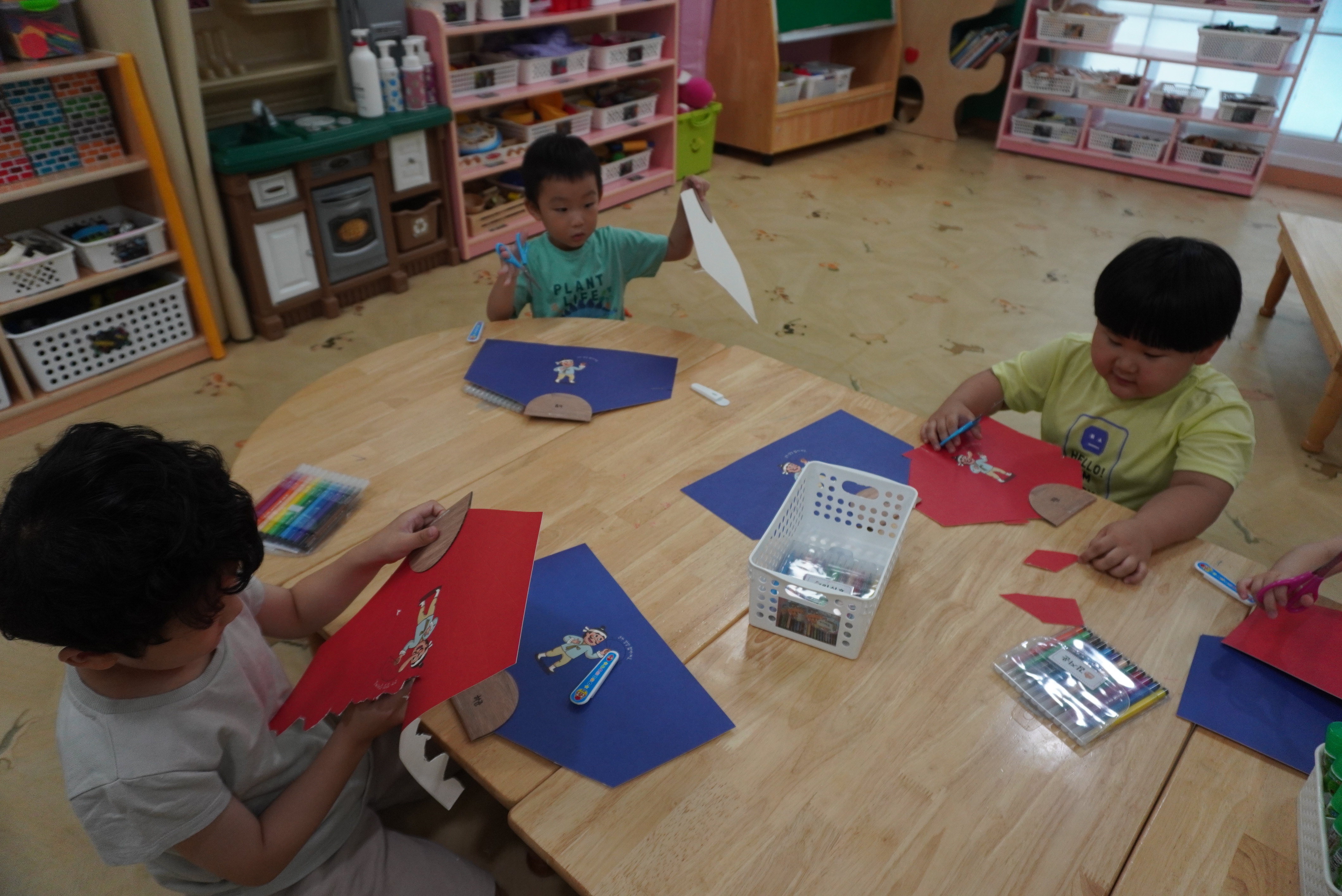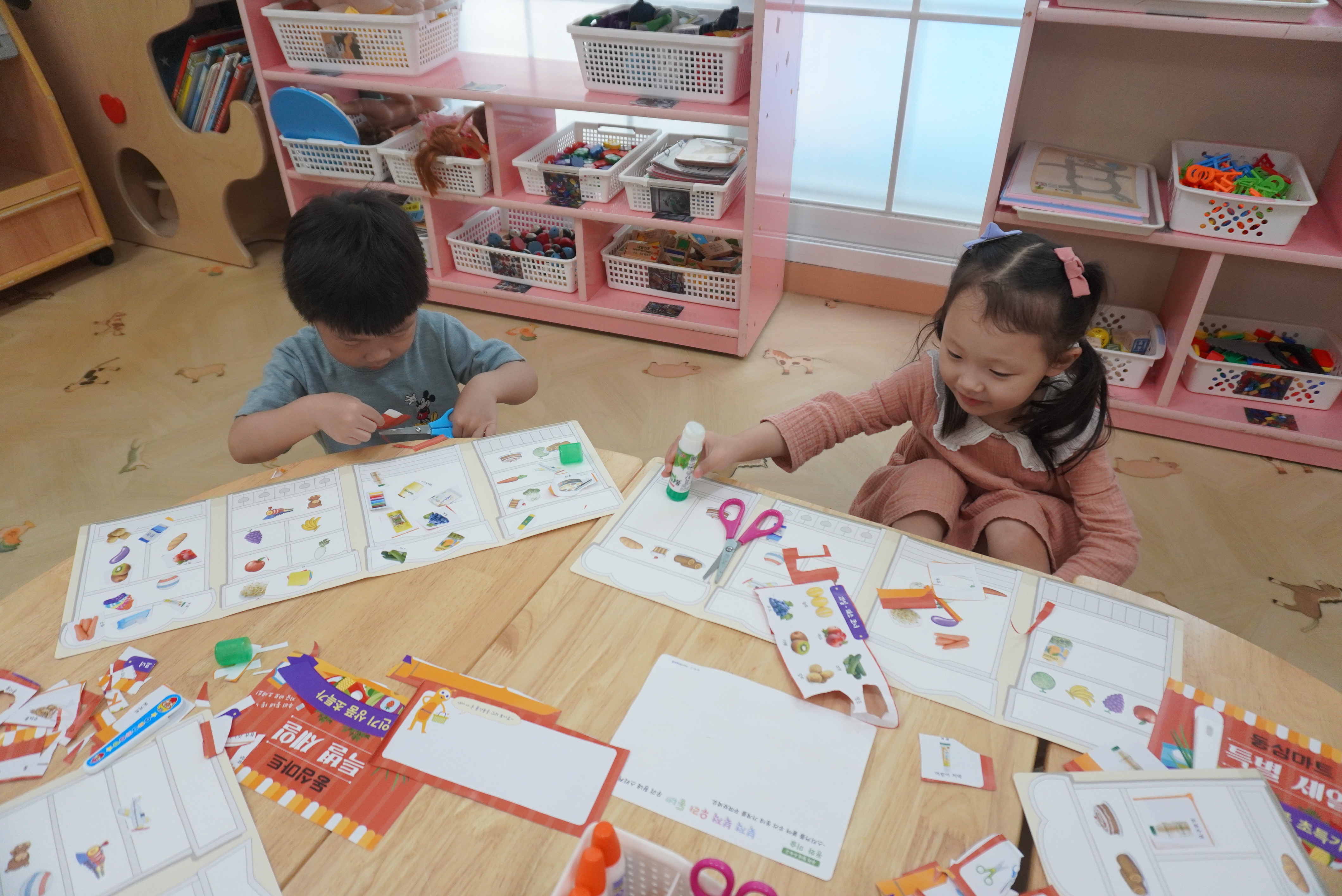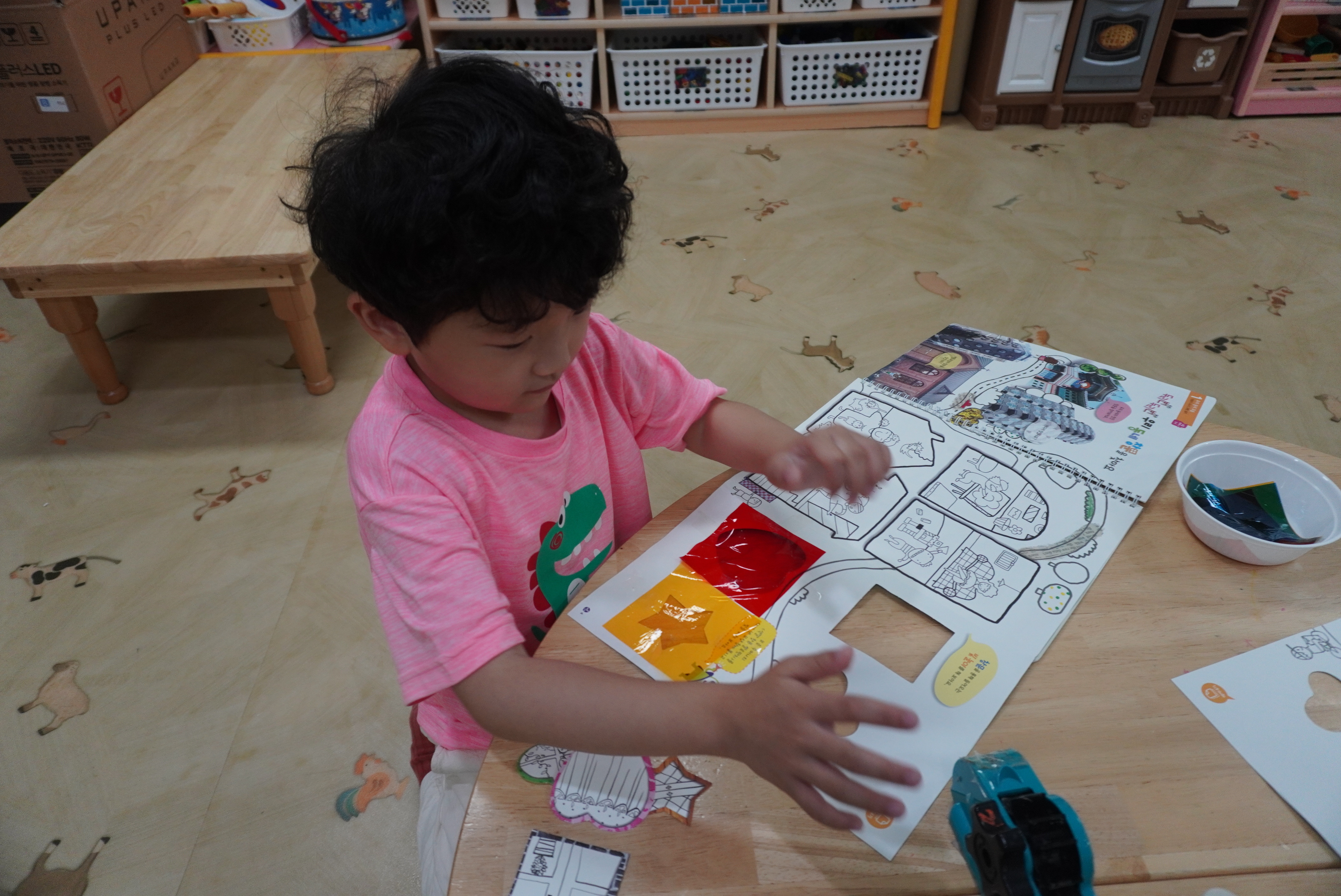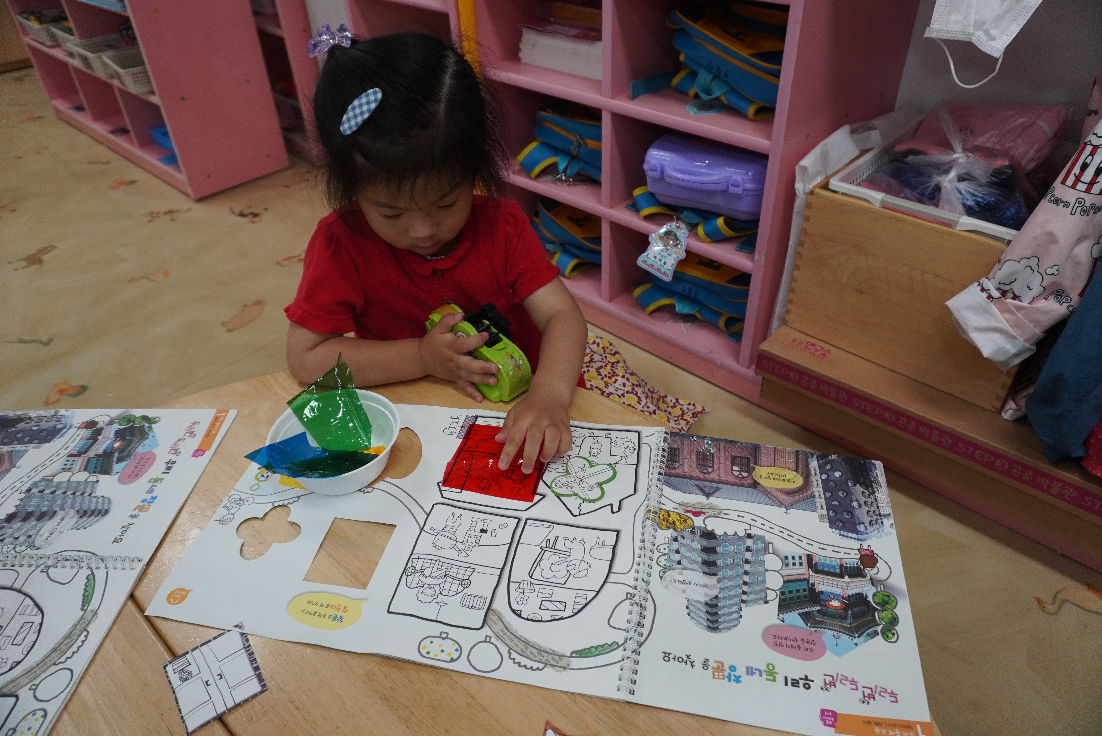 ♣ 전단지와 스티커를 이용해서 가게별로 물건 분류하고 “빨간부채 파란부태” 동화를 듣고 난 후