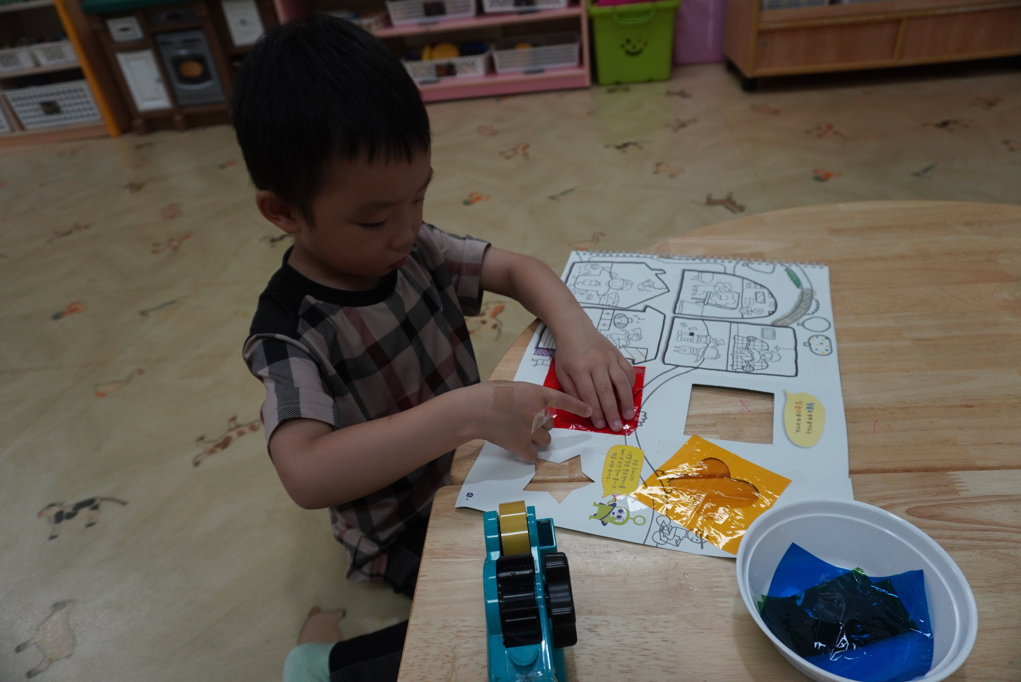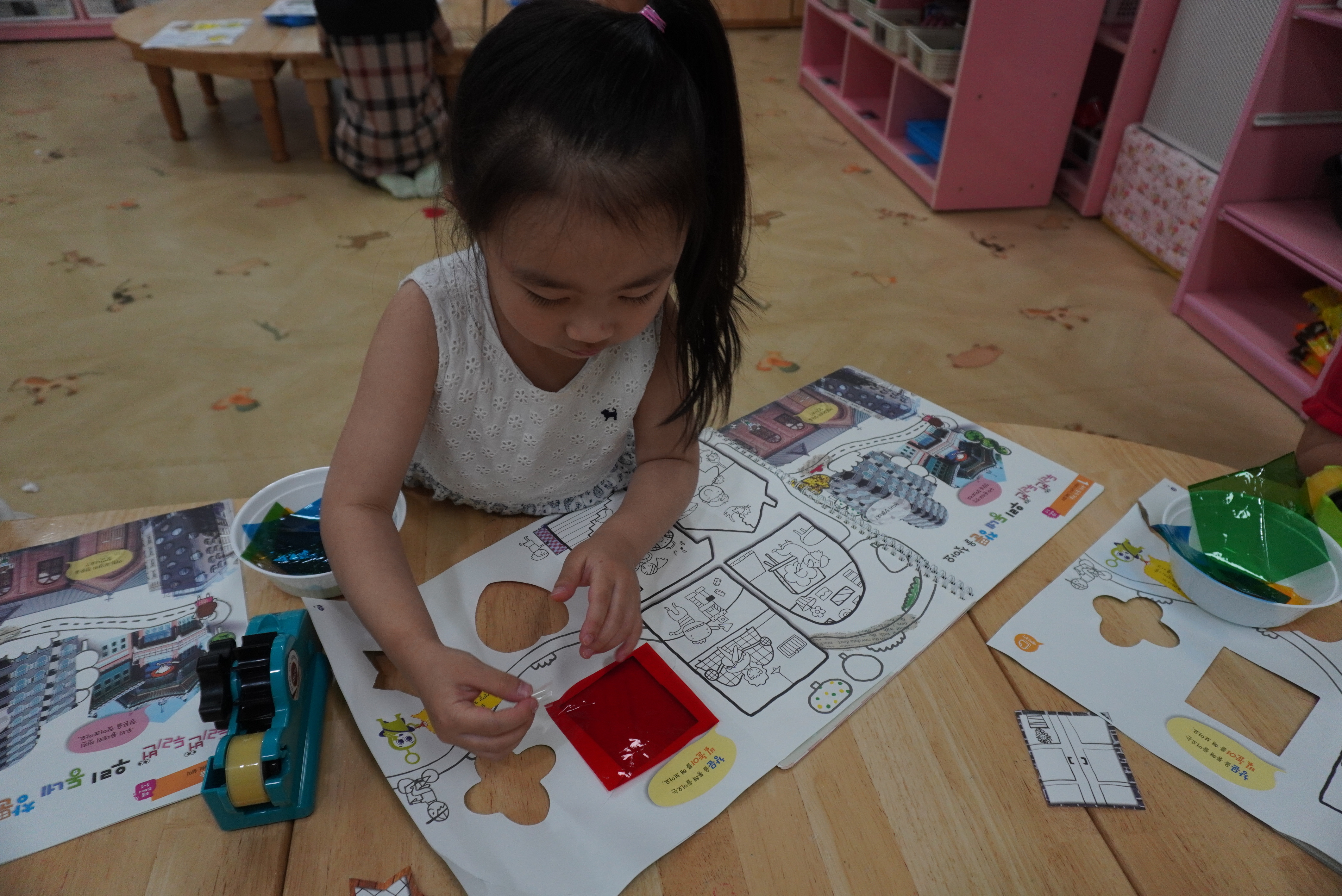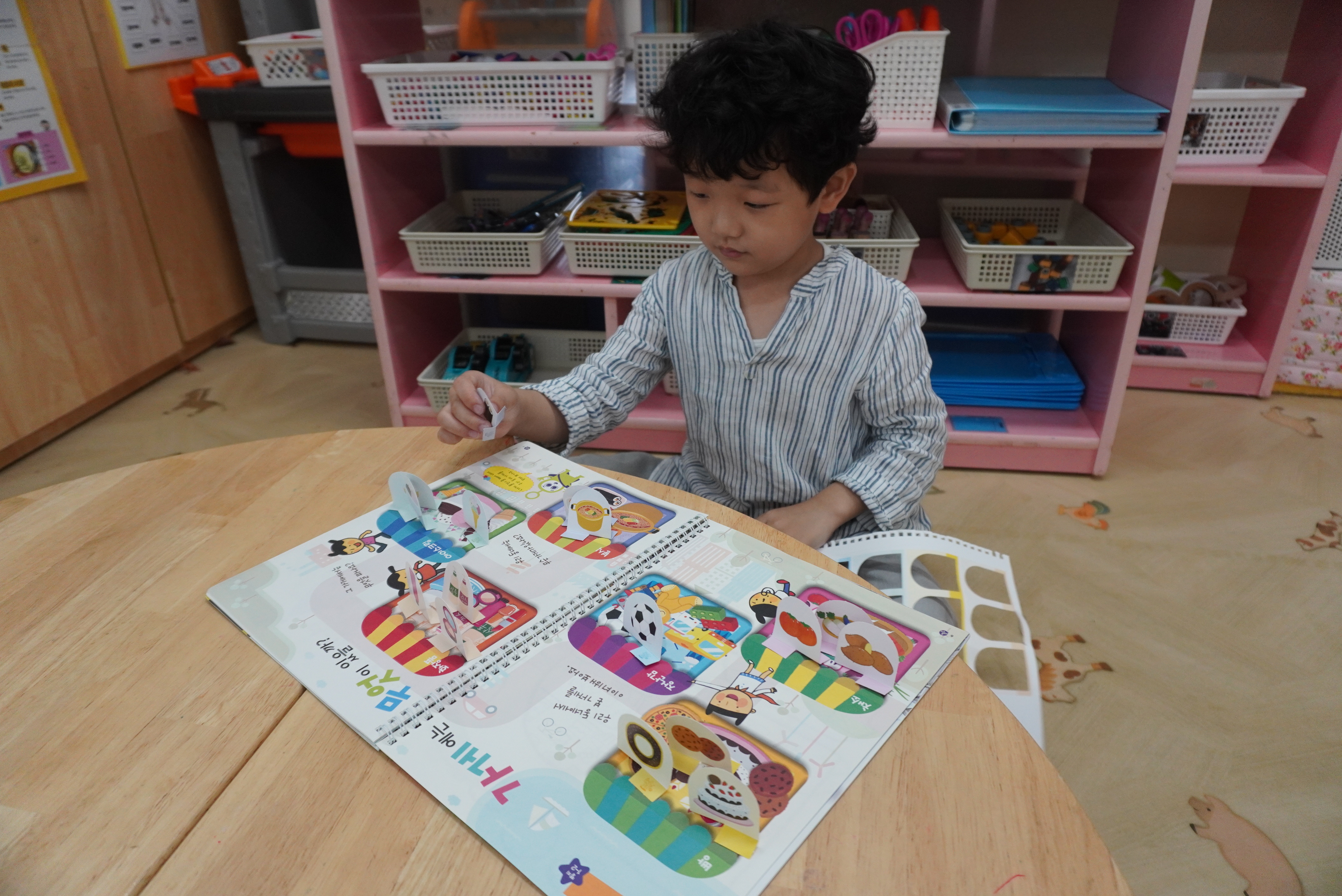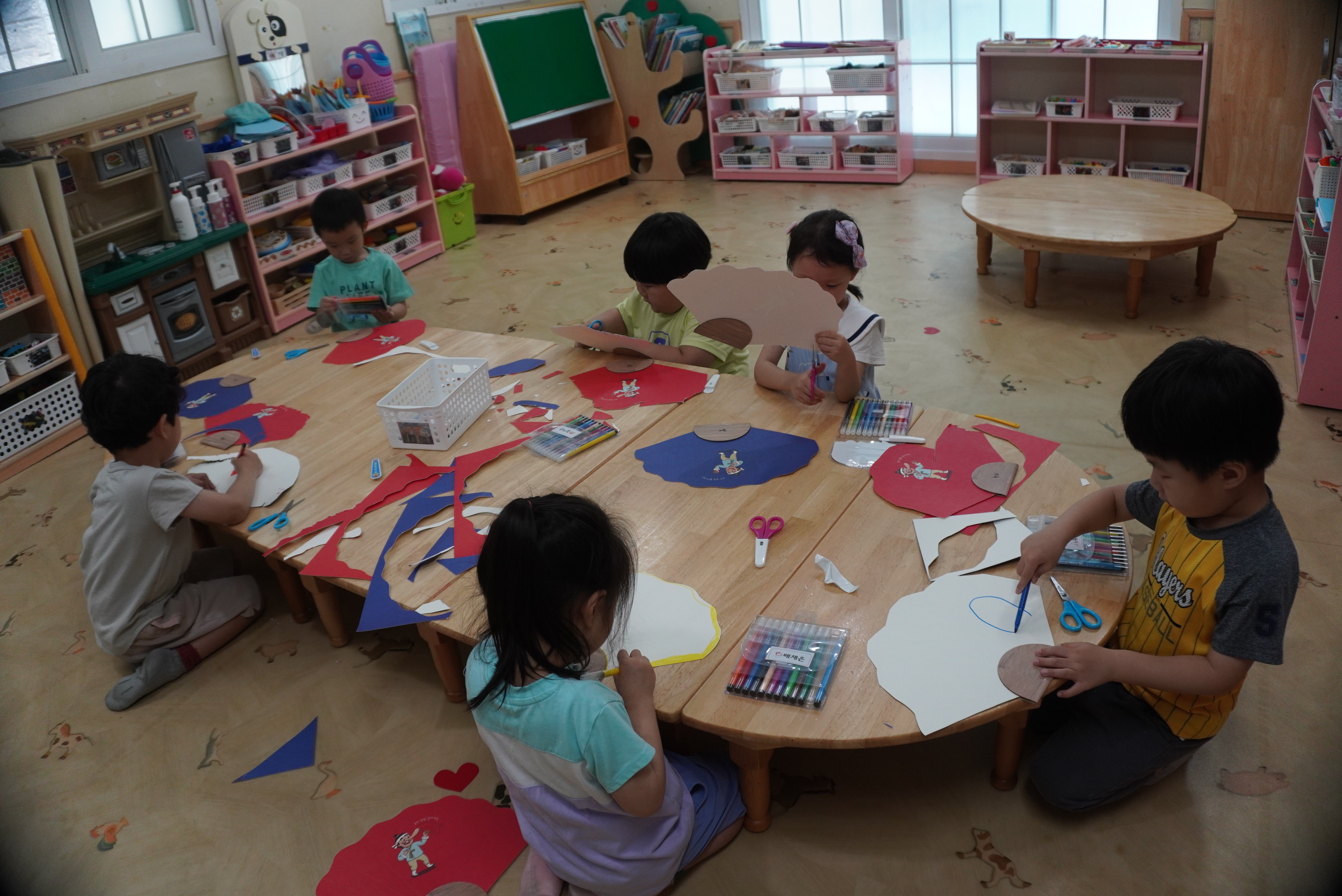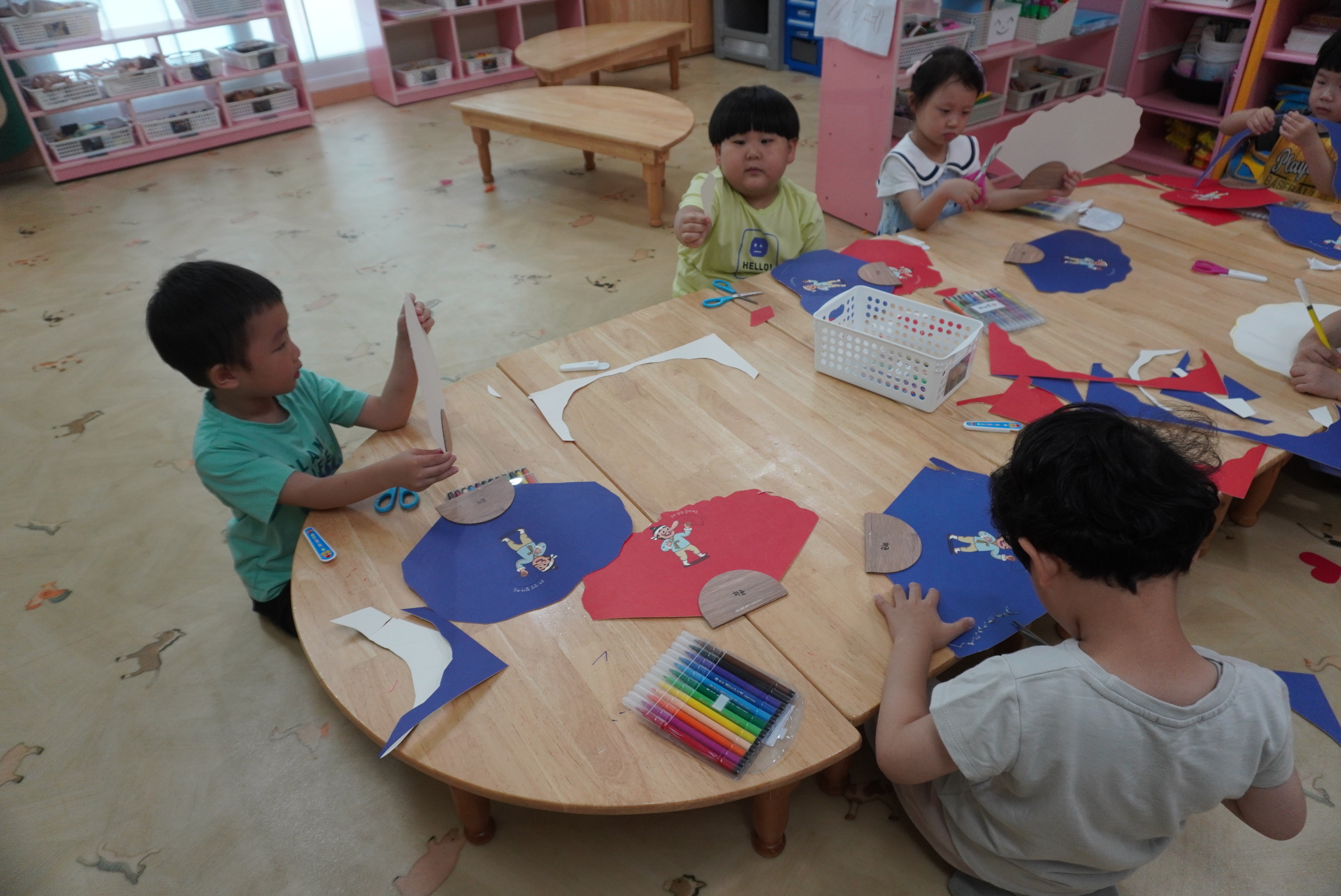 ♣ 전단지와 스티커를 이용해서 가게별로 물건 분류하고 “빨간부채 파란부태” 동화를 듣고 난 후