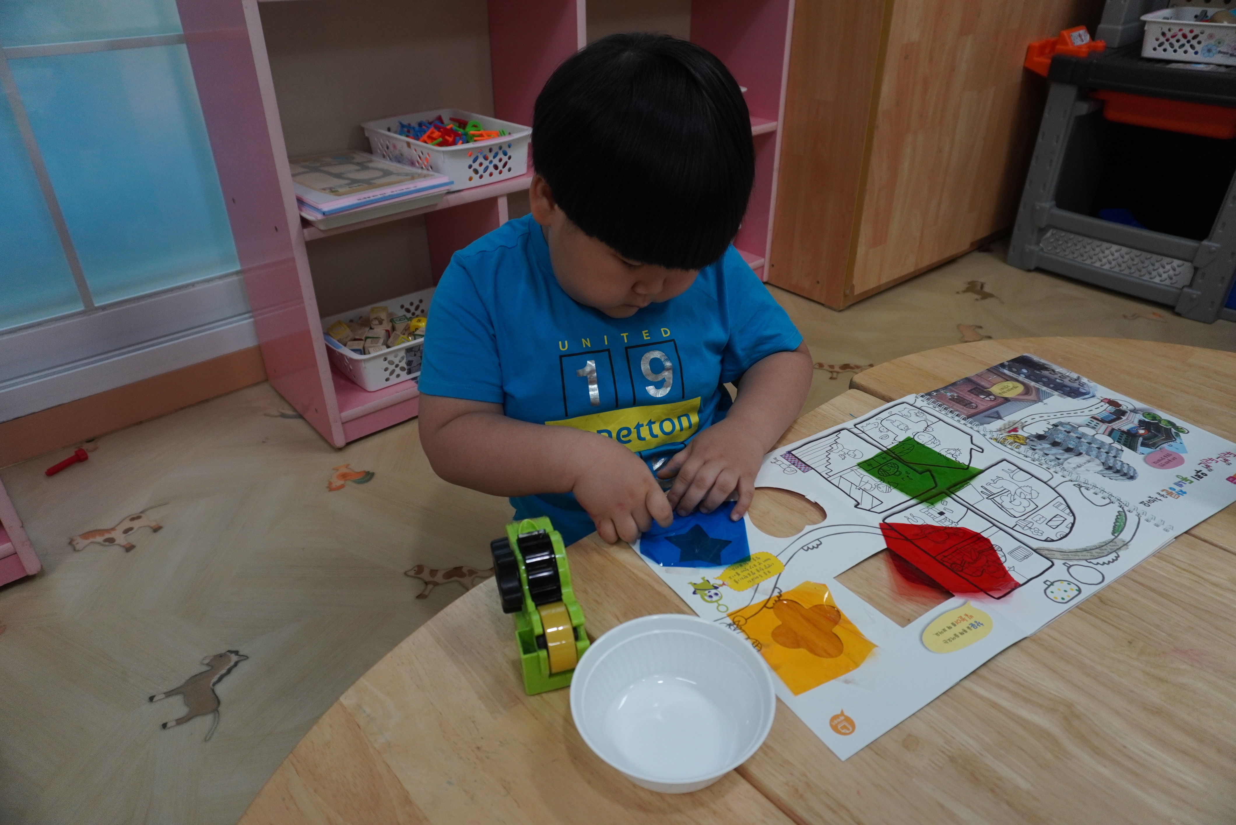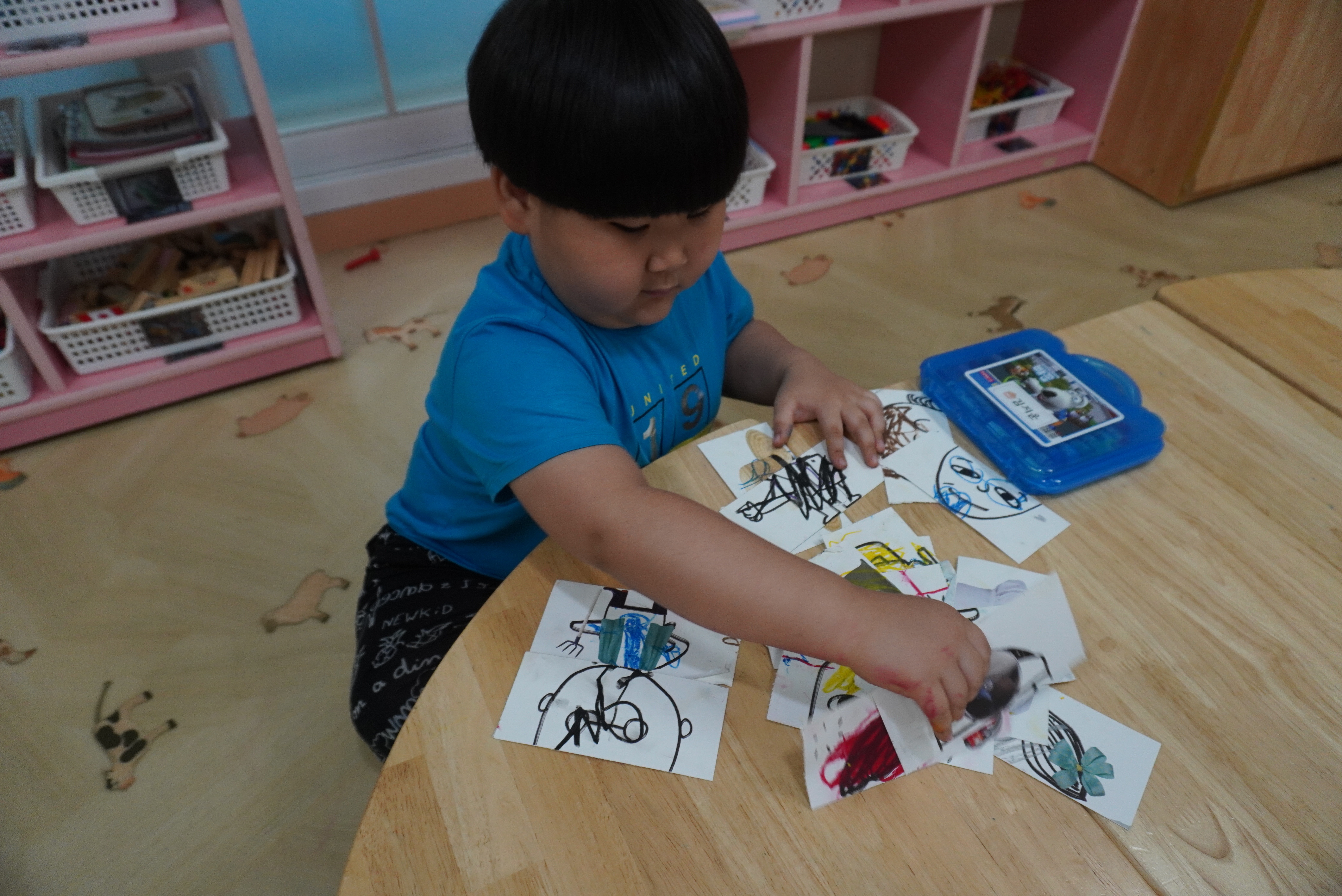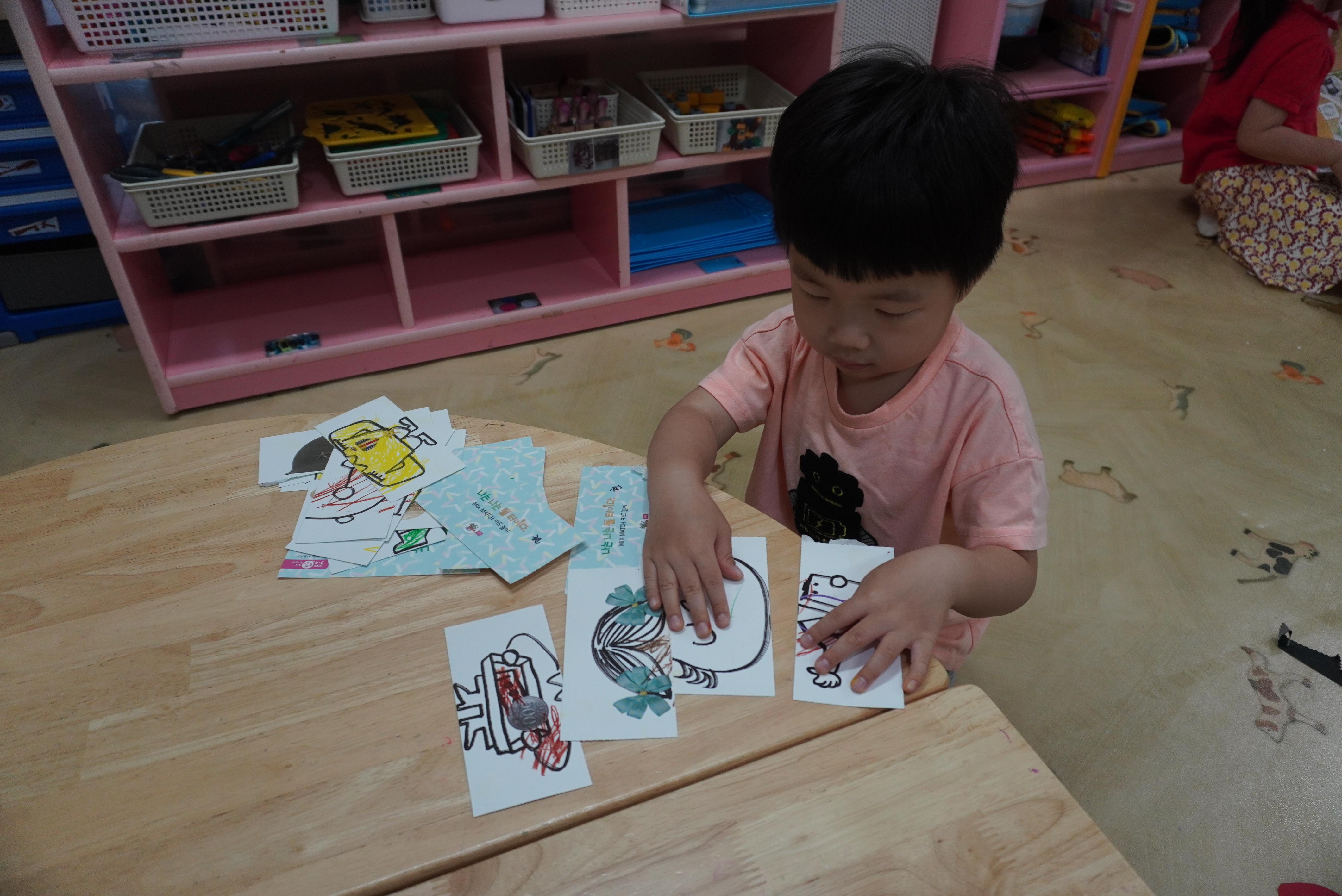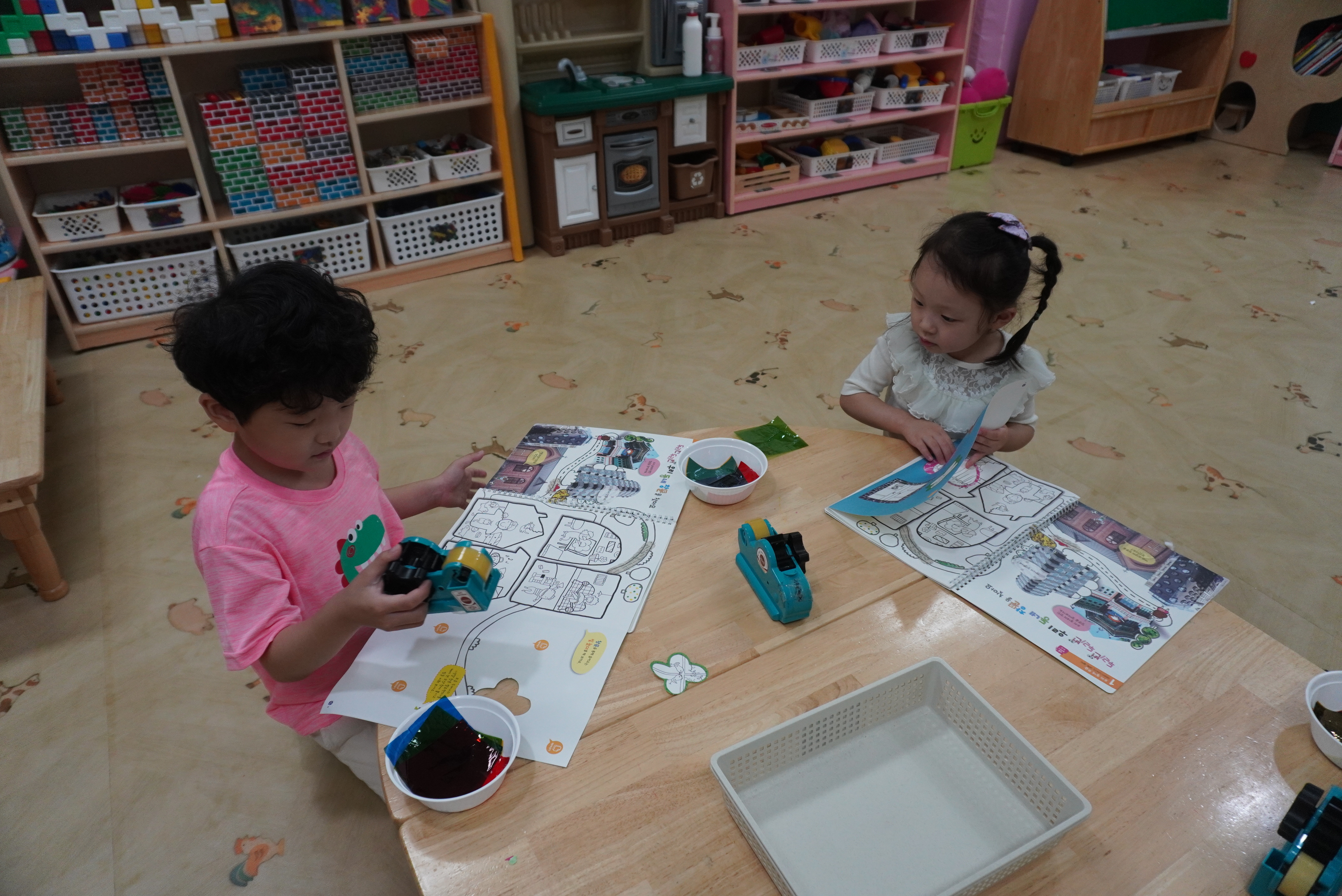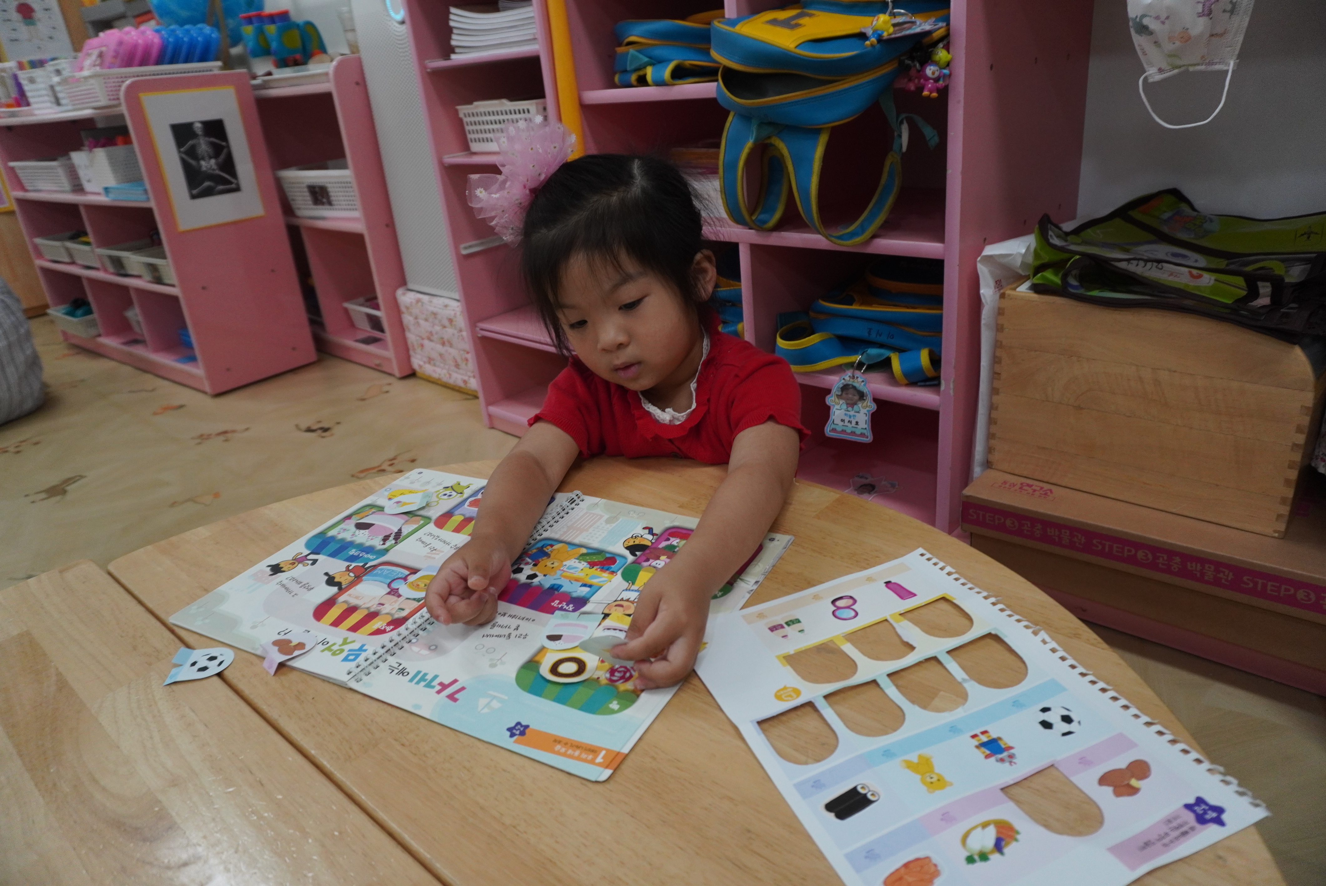 ♣ 전단지와 스티커를 이용해서 가게별로 물건 분류하고 “빨간부채 파란부태” 동화를 듣고 난 후
