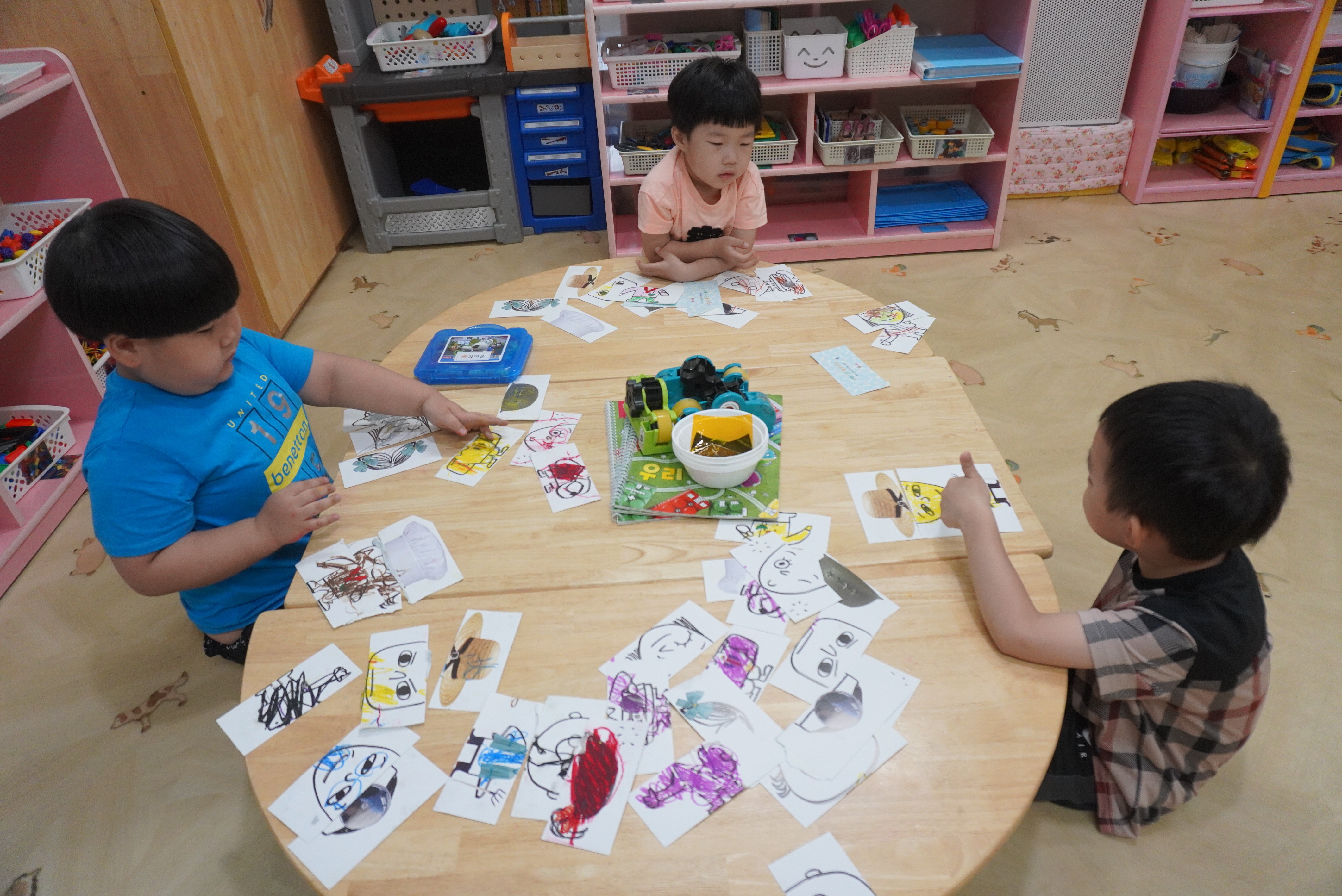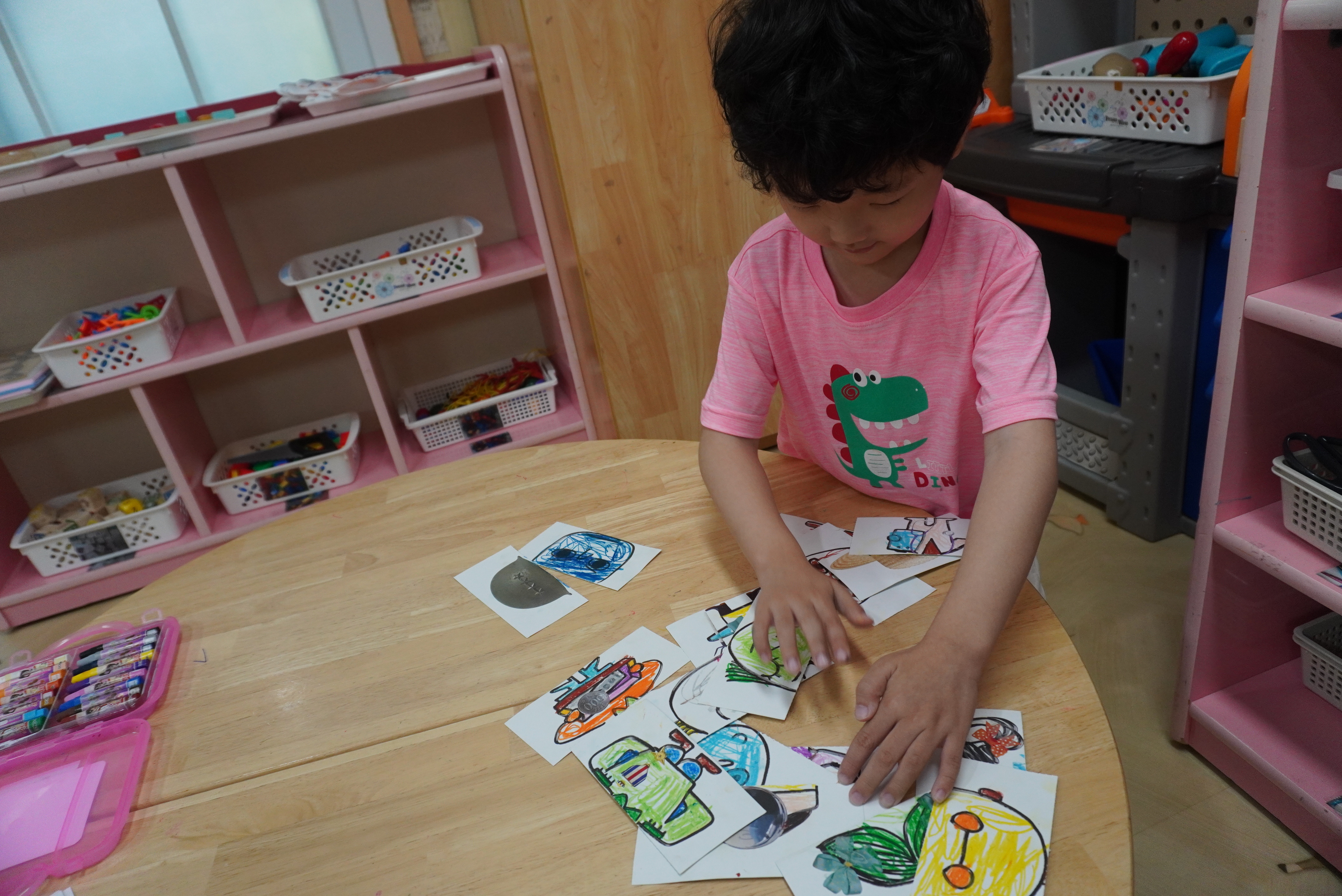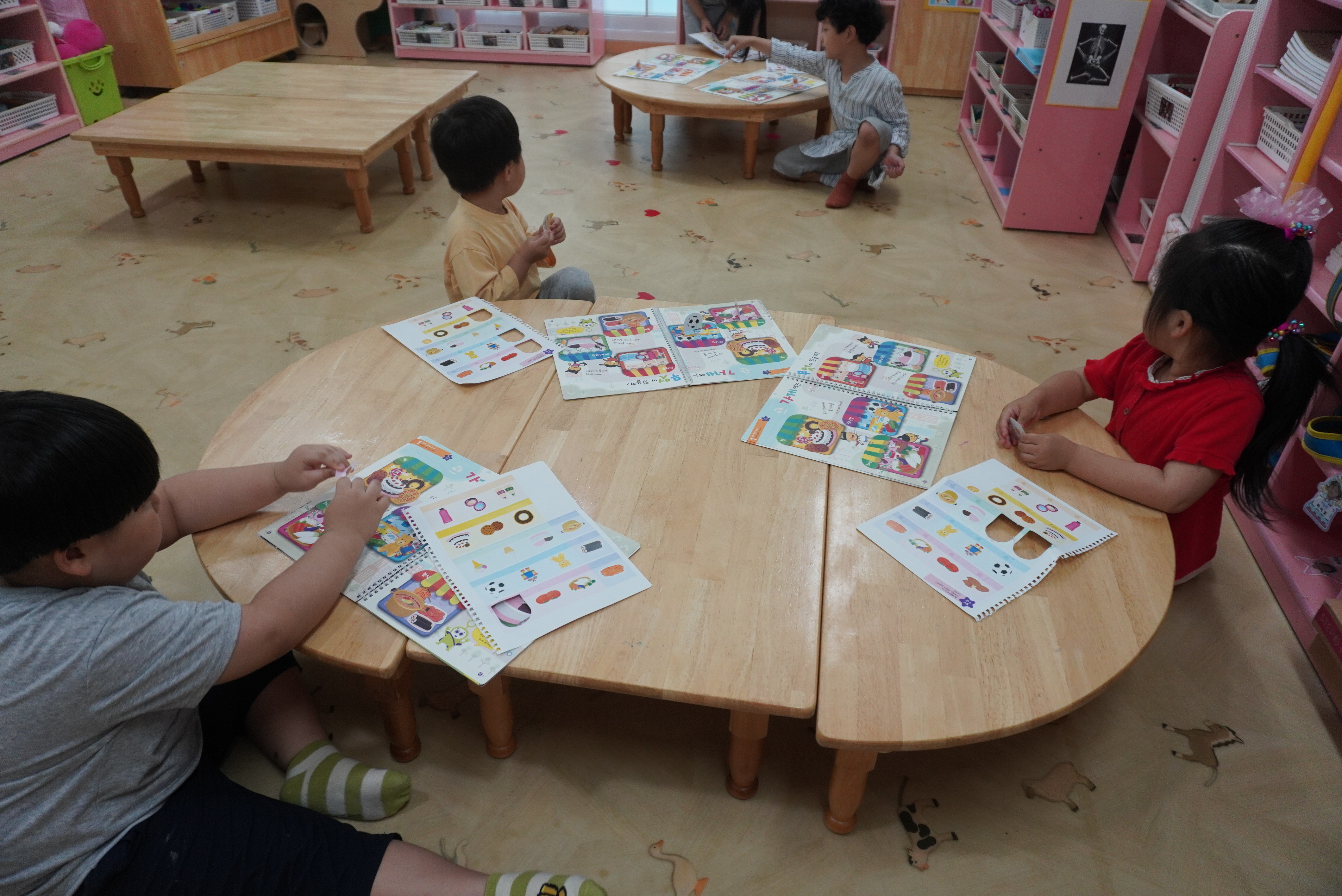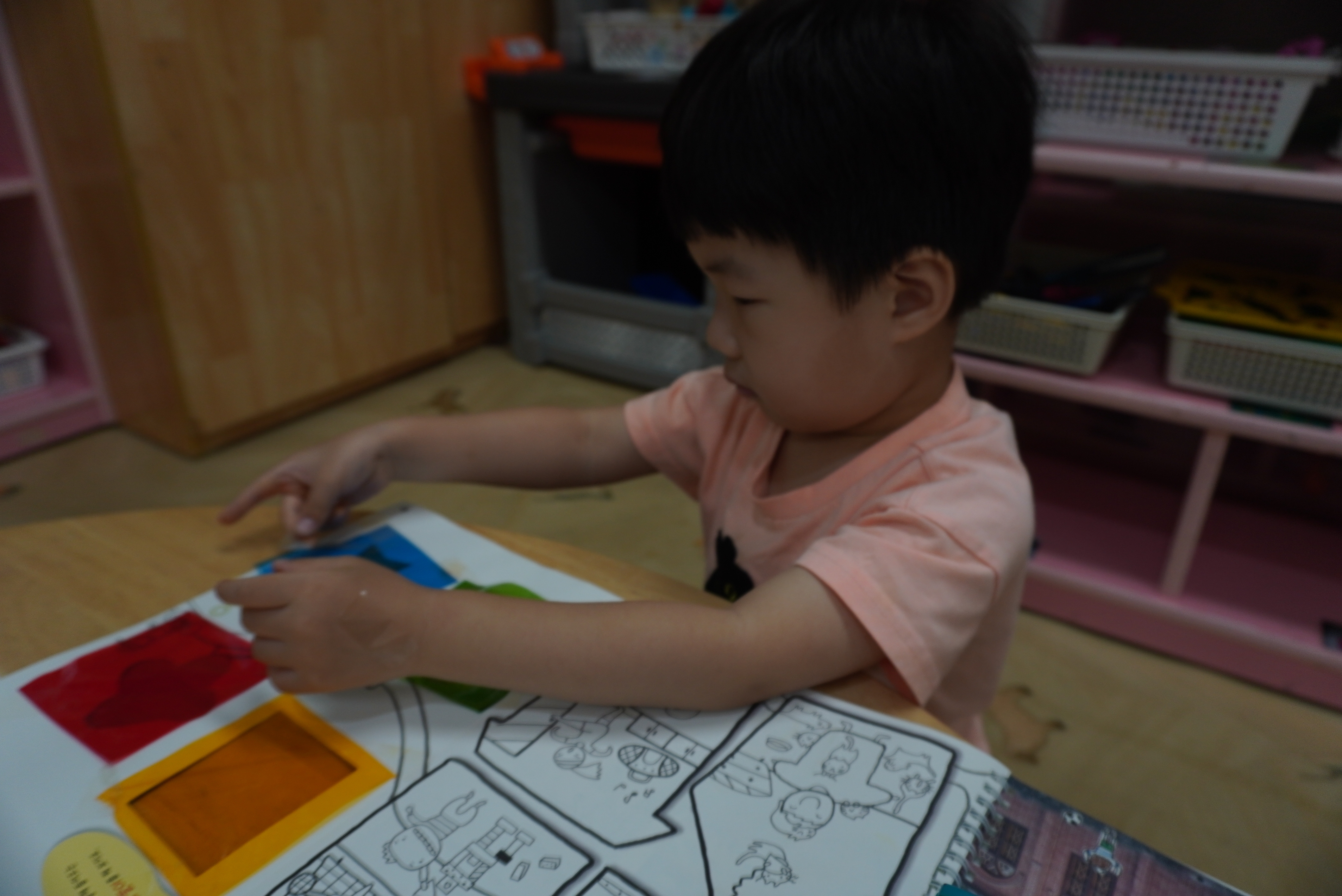 ♣ 전단지와 스티커를 이용해서 가게별로 물건 분류하고 “빨간부채 파란부태” 동화를 듣고 난 후
