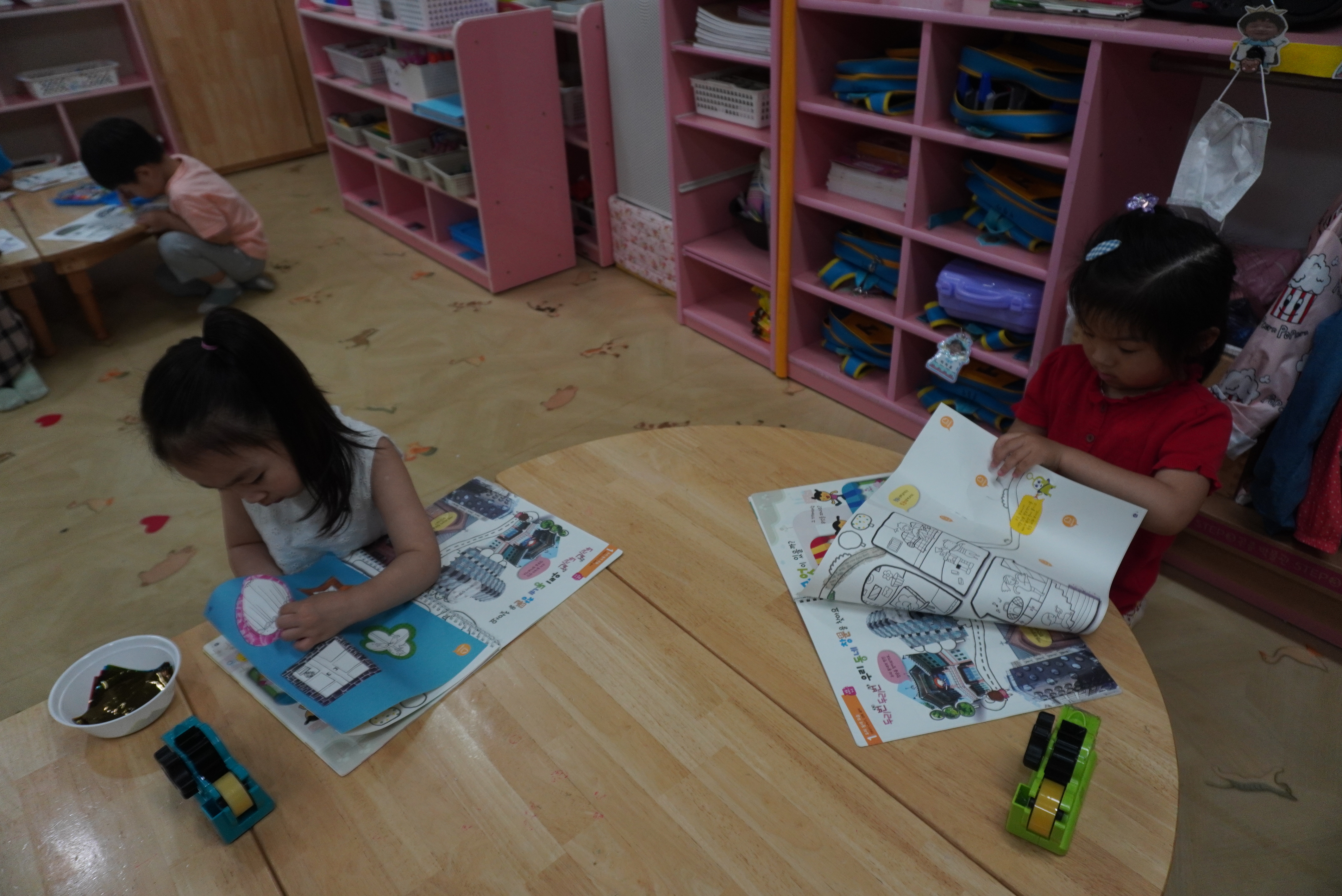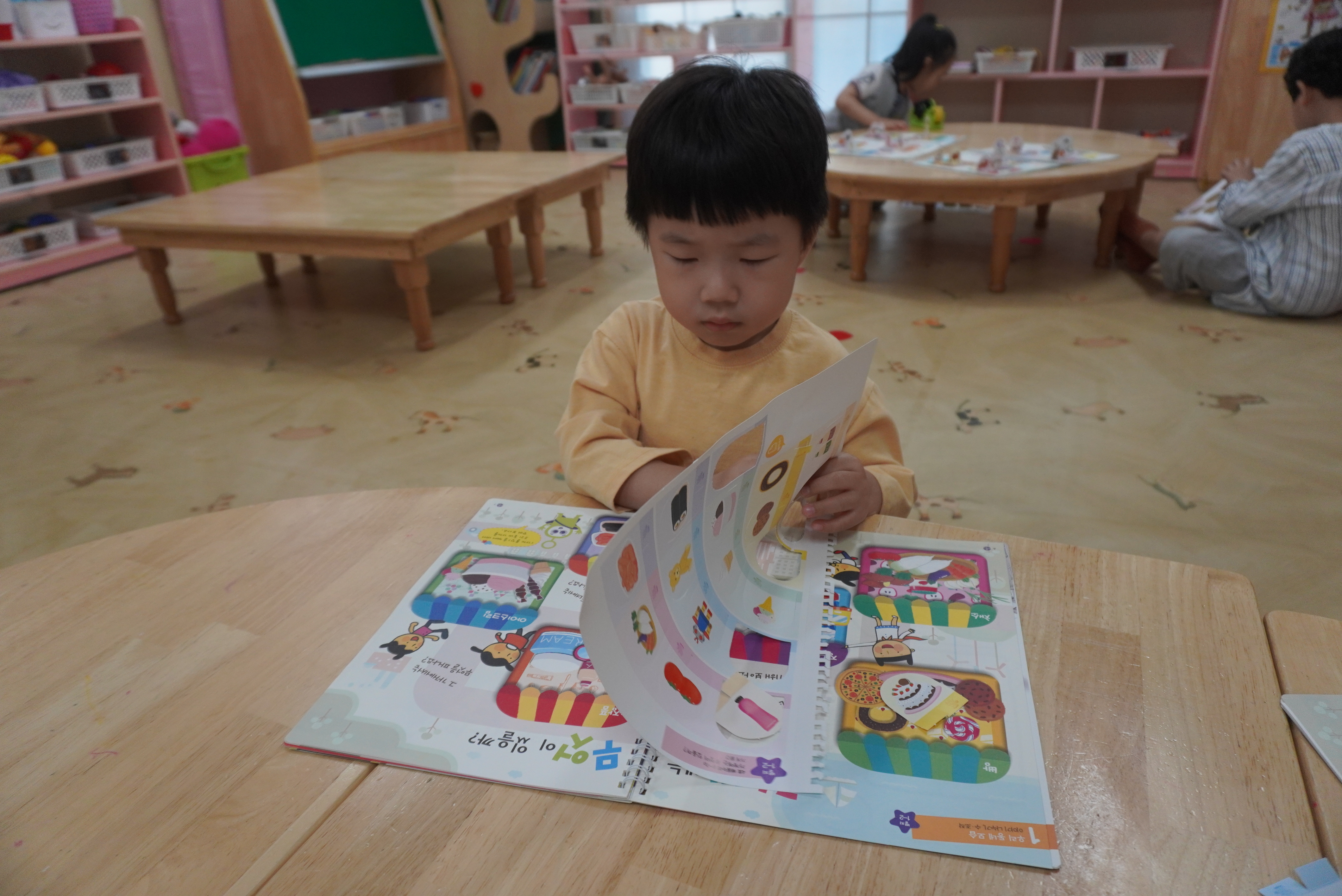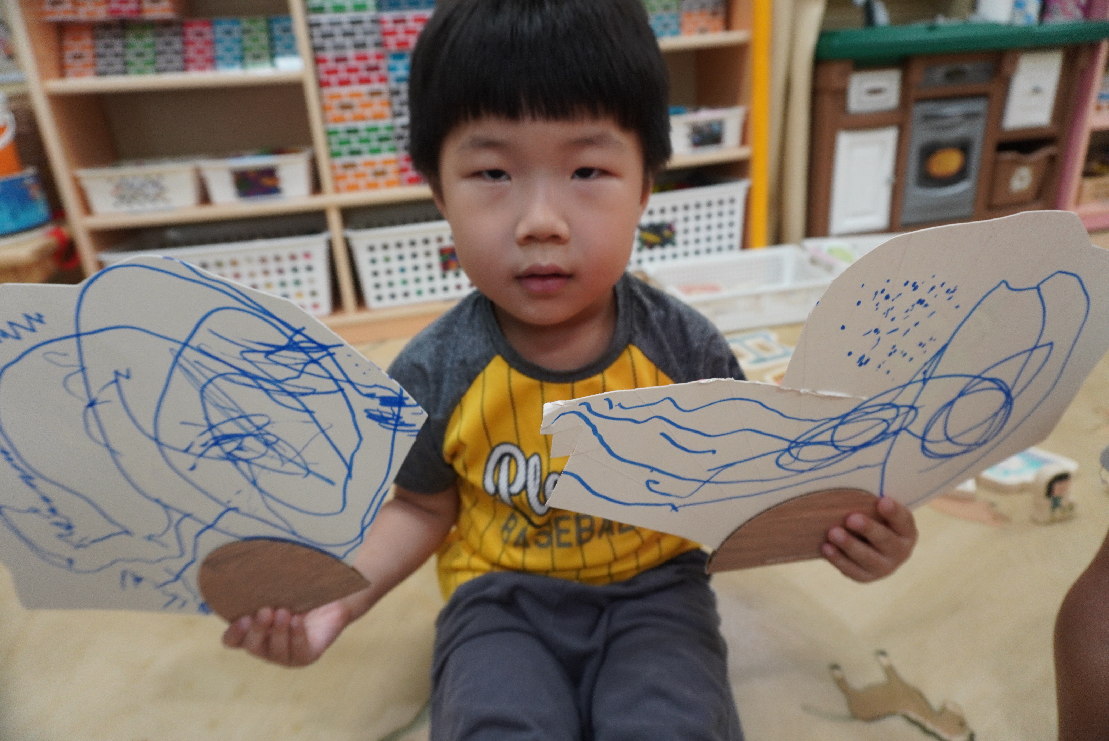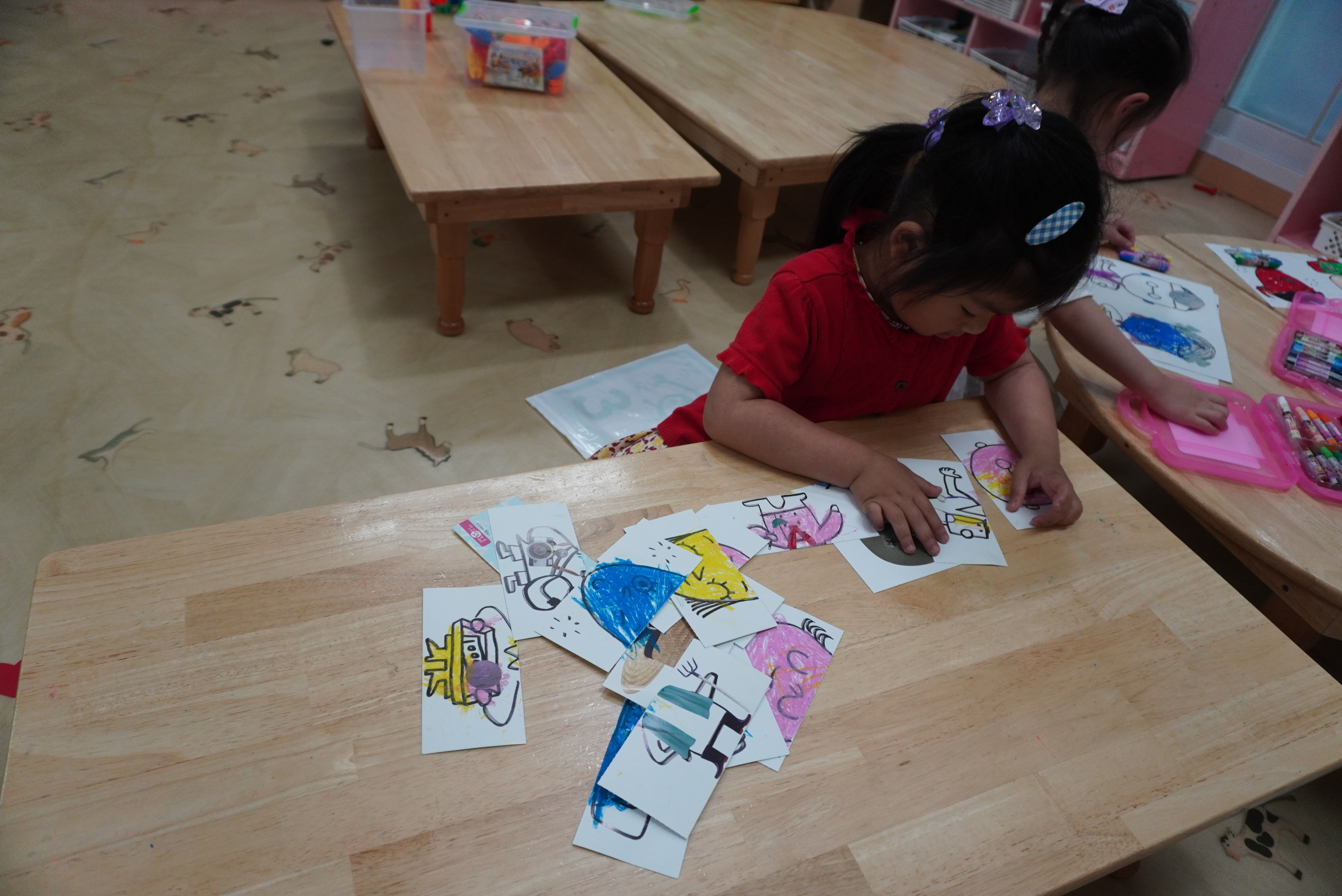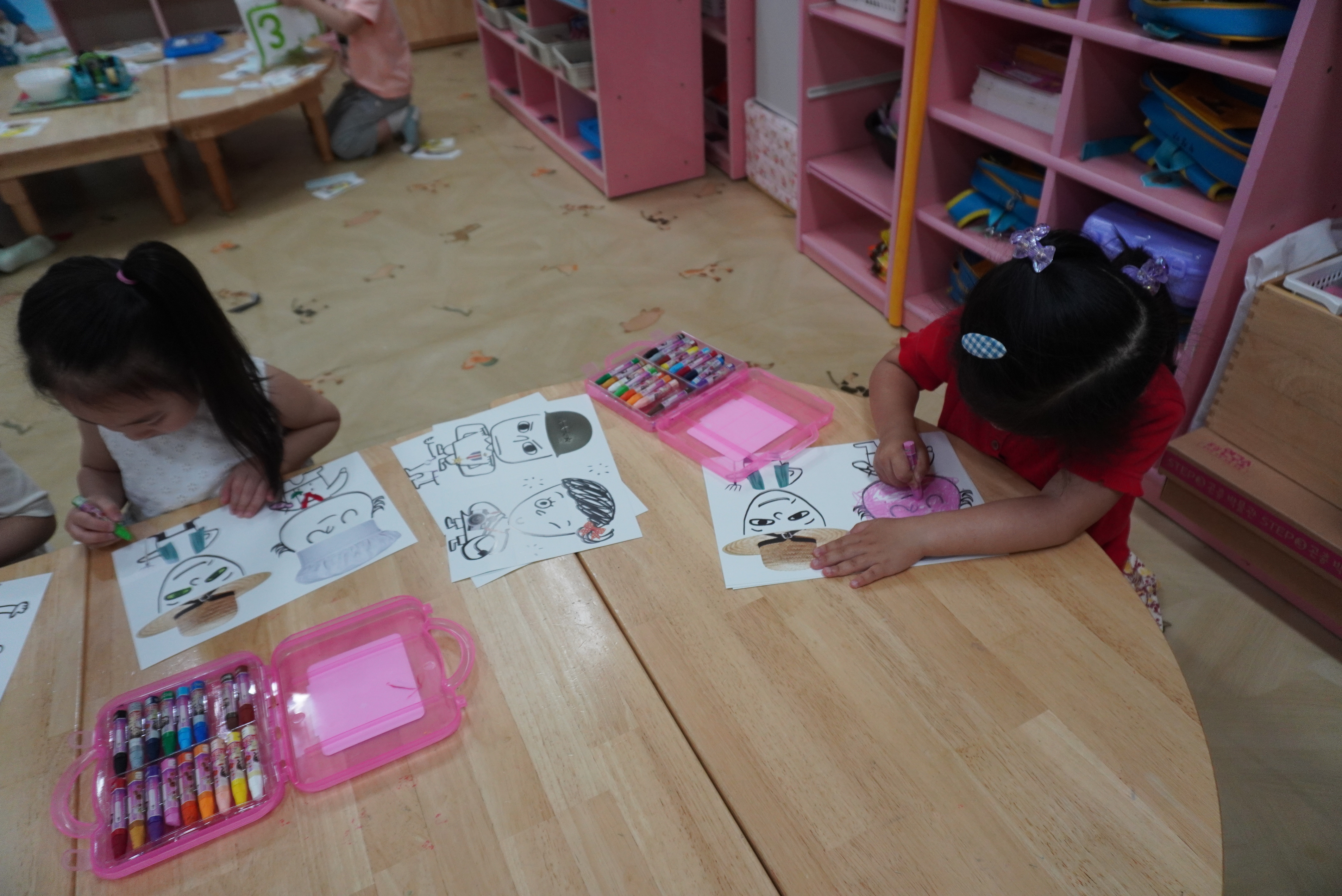 ♣ 전단지와 스티커를 이용해서 가게별로 물건 분류하고 “빨간부채 파란부태” 동화를 듣고 난 후