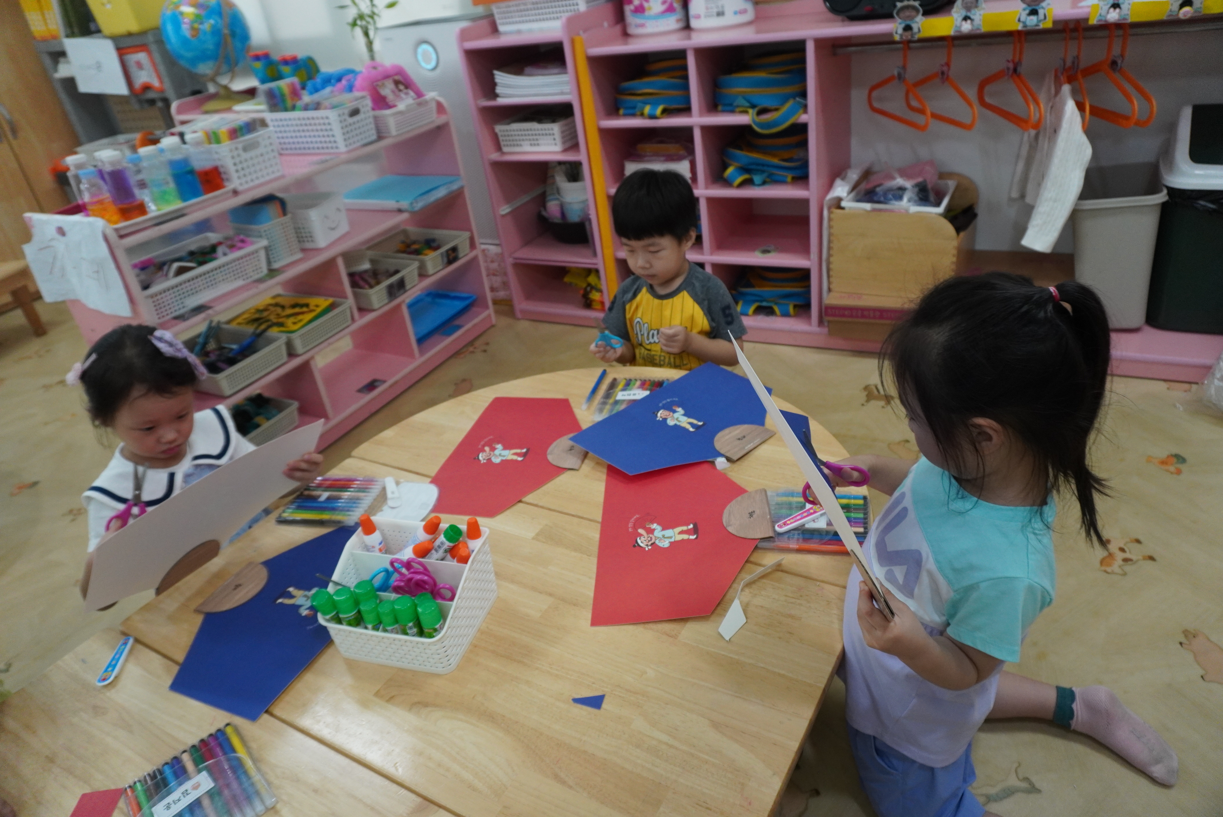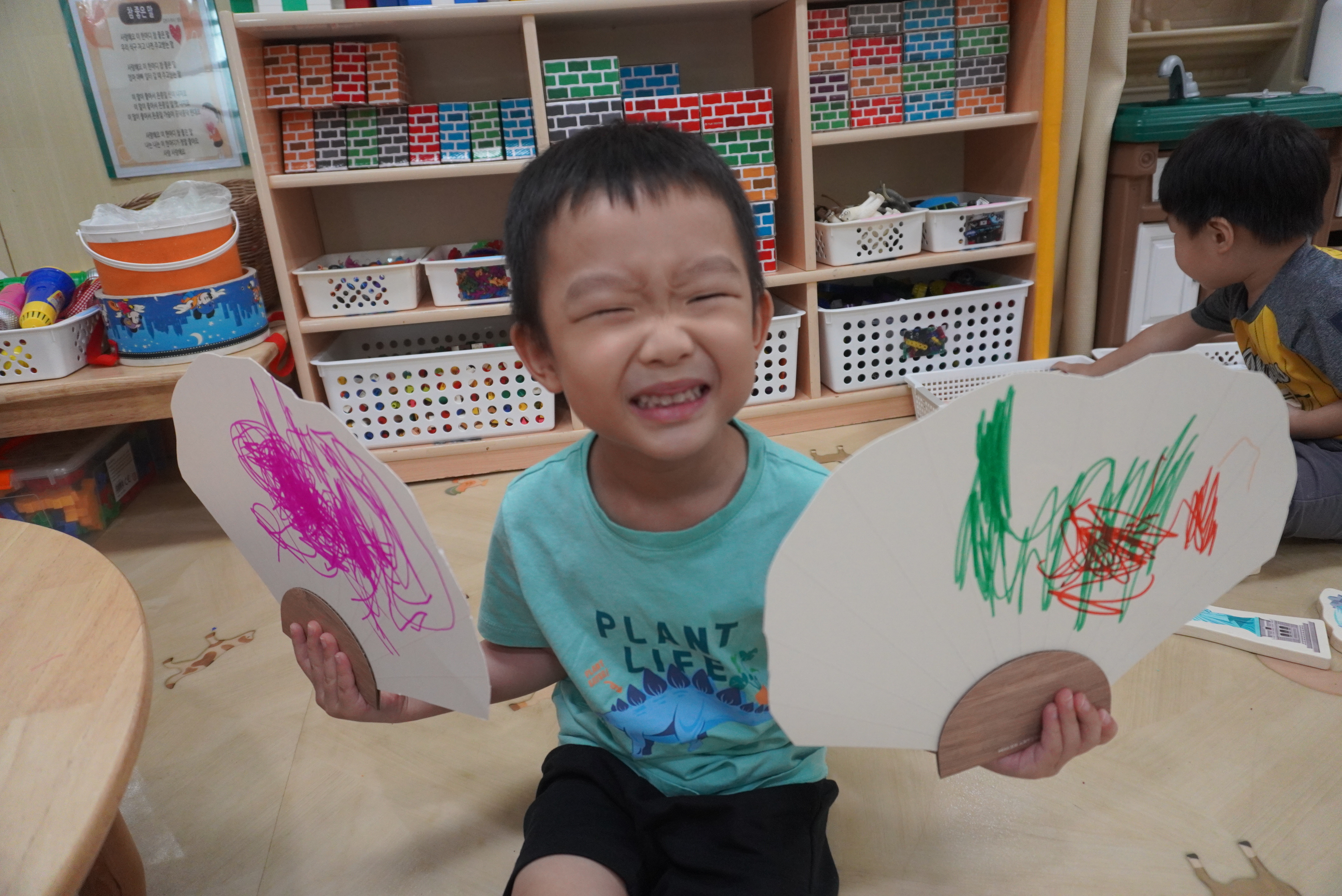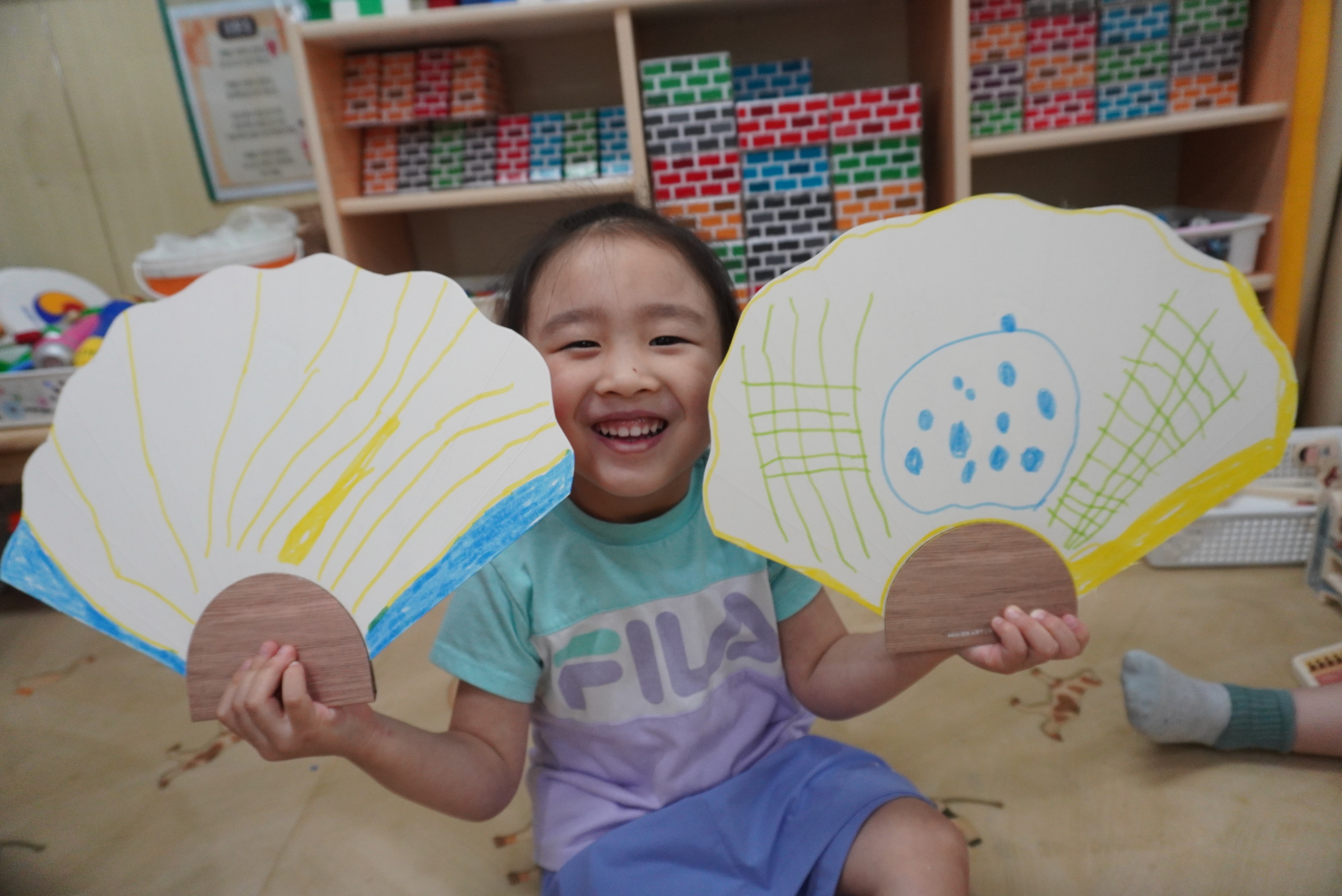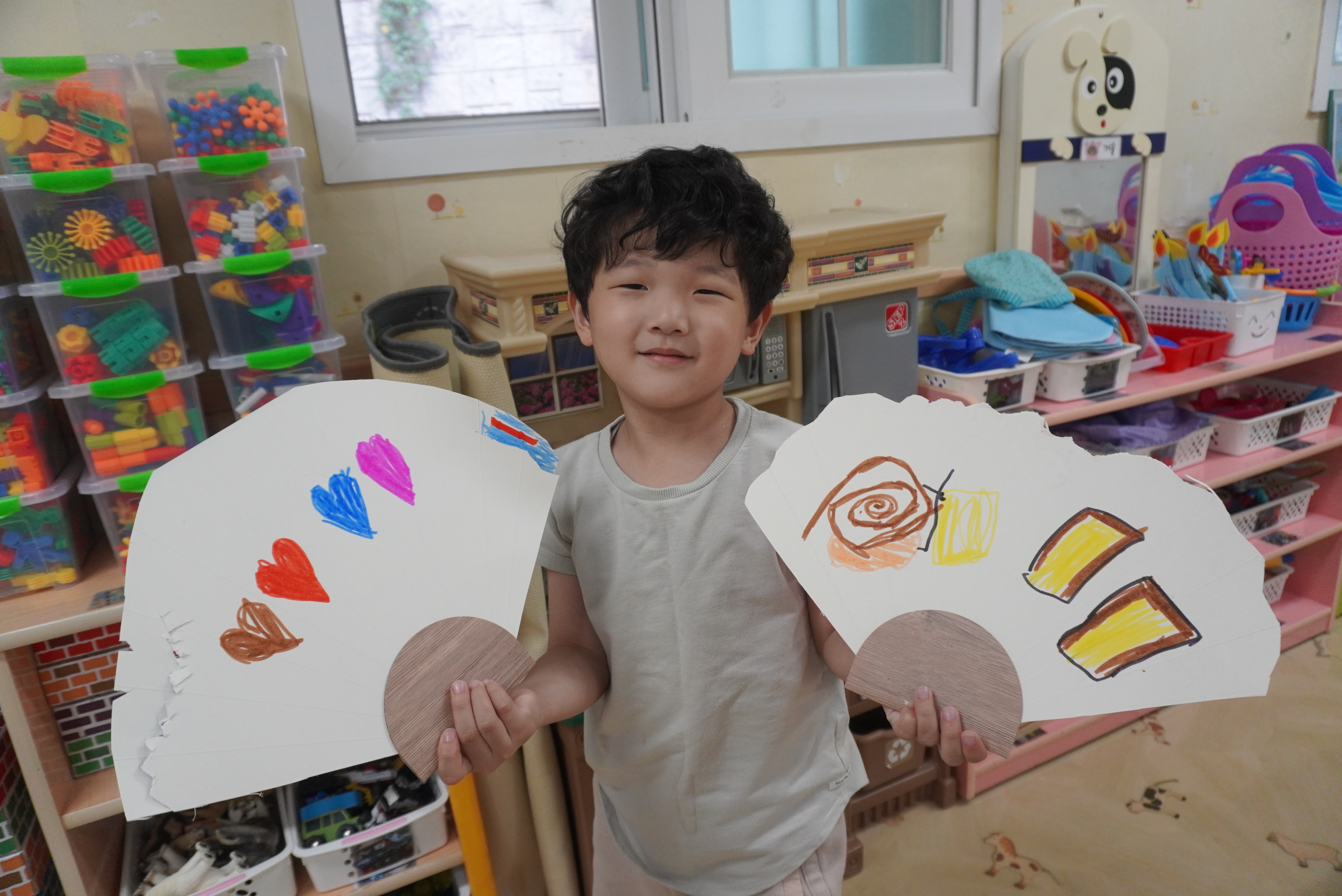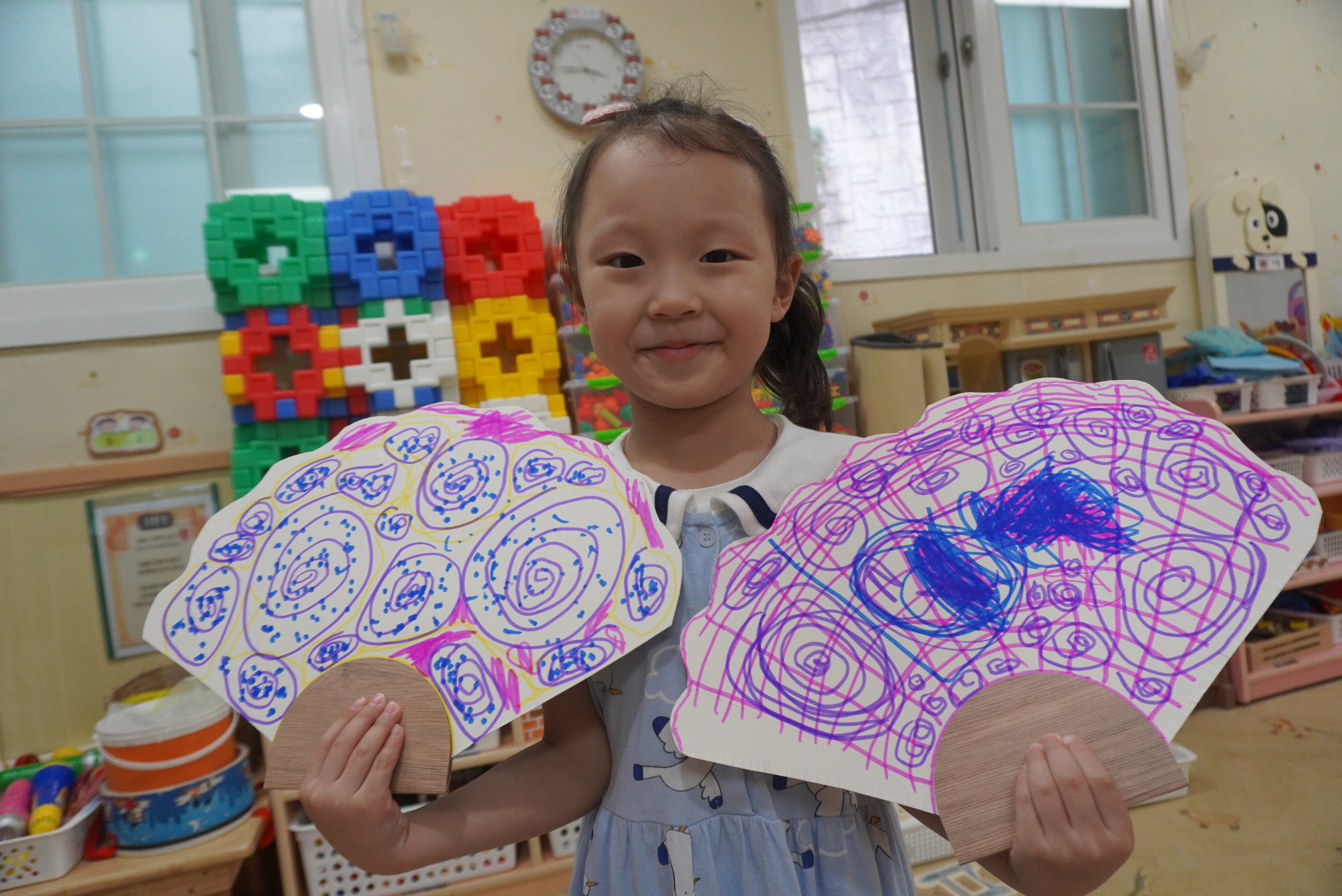 빨간부채 파란 부채를 자르고 싶은 모양대로 자르고 꾸며 보았어요.