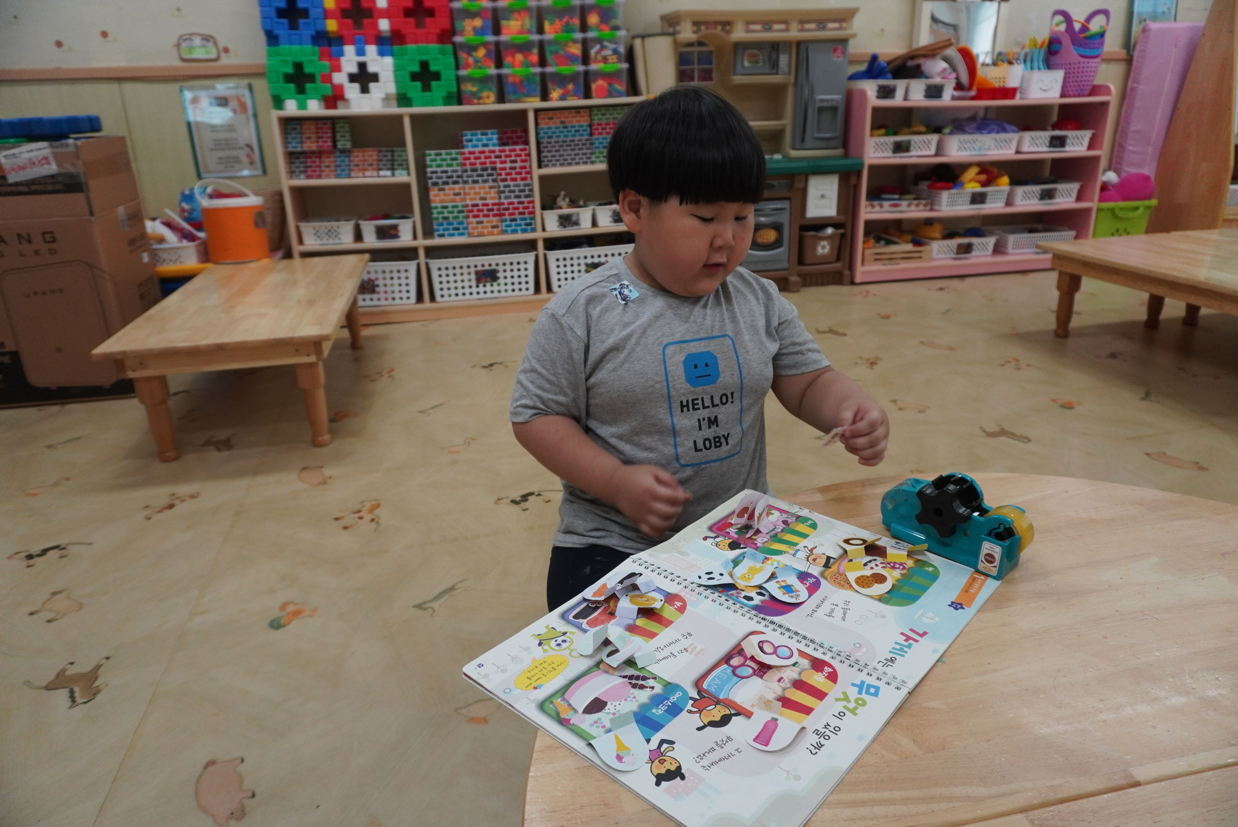 ♣ 우리 동네에 있는 여러 가게에 대해 이야기를 나누고 가게에 필요한 물건을 뗴어서 가게 놀이했어요.
