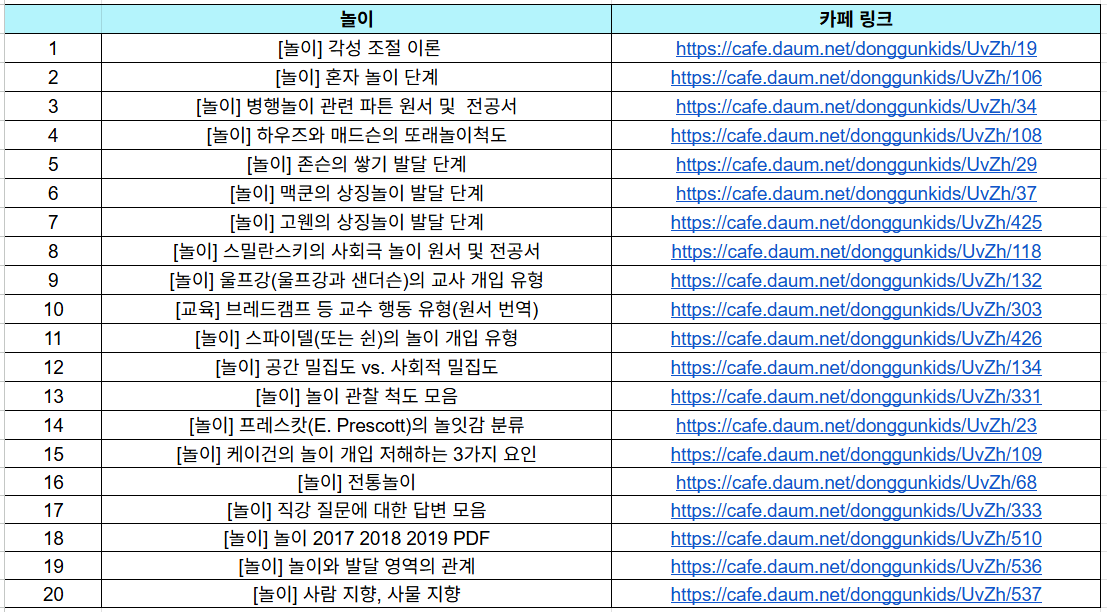 놀이 파트에 관련 자료가 순서대로 제시되어 있습니다 🍀