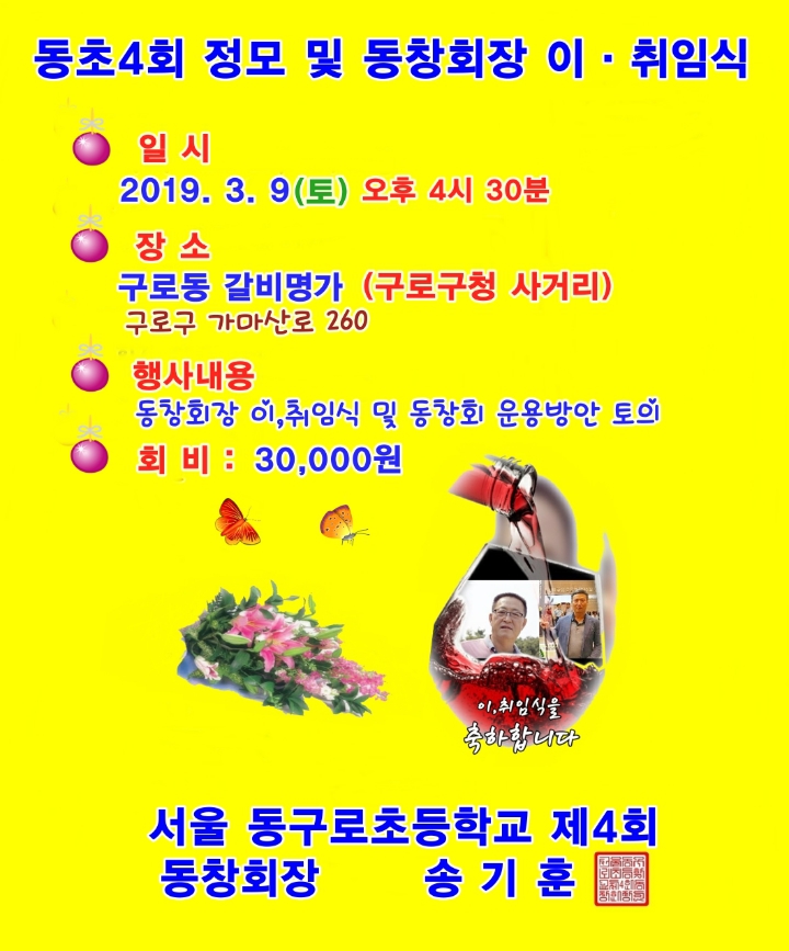 서울 동구로초등학교 제4회 동창회장 이,취임식 알림 작성자운예(김명중)|작성시간19.02.13|조회수225 목록 댓글 0 글자크기 작게가 글자크기 크게가 동구로초등학교 제4회 동창회장 이,취임식 다음검색 현재 게시글 추가 기능 열기 북마크 공유하기 신고 센터로 신고 댓글 댓글 0 댓글쓰기 답글쓰기 댓글 리스트