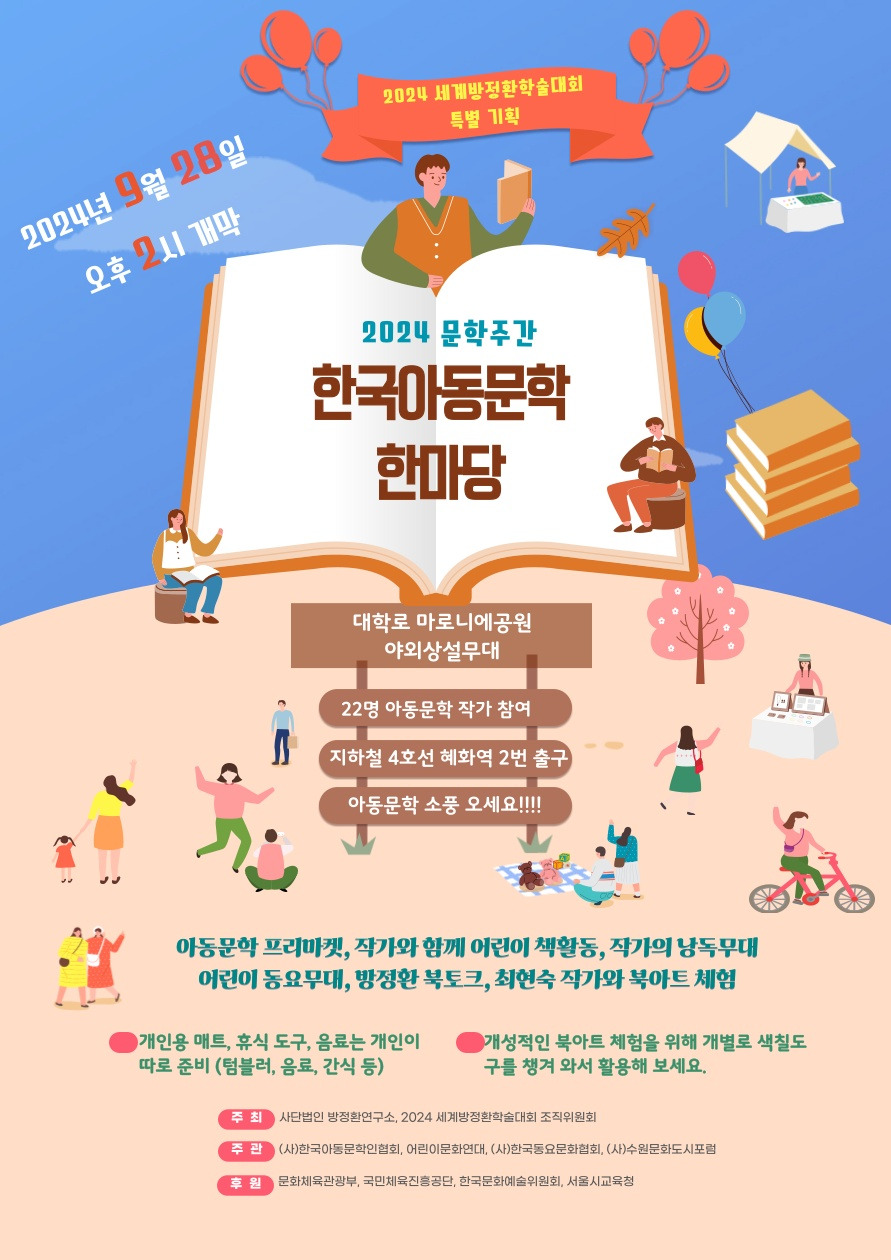 어제 혜화역 마로니에공원에서 2024 문학주간 한국아동문학 한마당을 펼쳤다.
