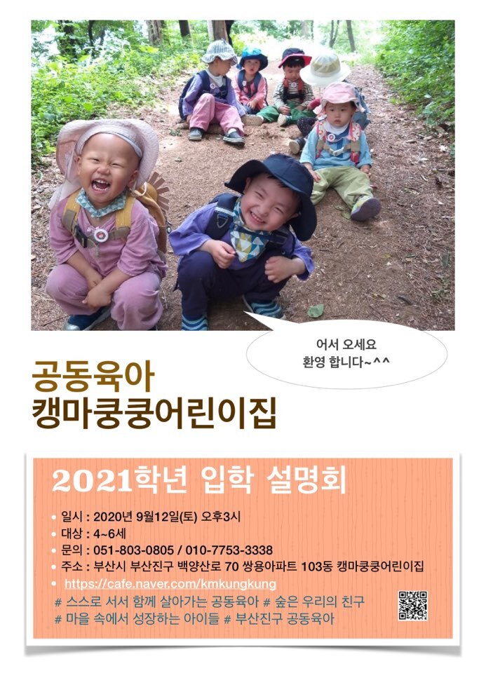 부산진구 유일 공동육아 '캥마쿵쿵 어린이집' 에서 2021학년도 입학설명회에 여러분을 초대합니다!!