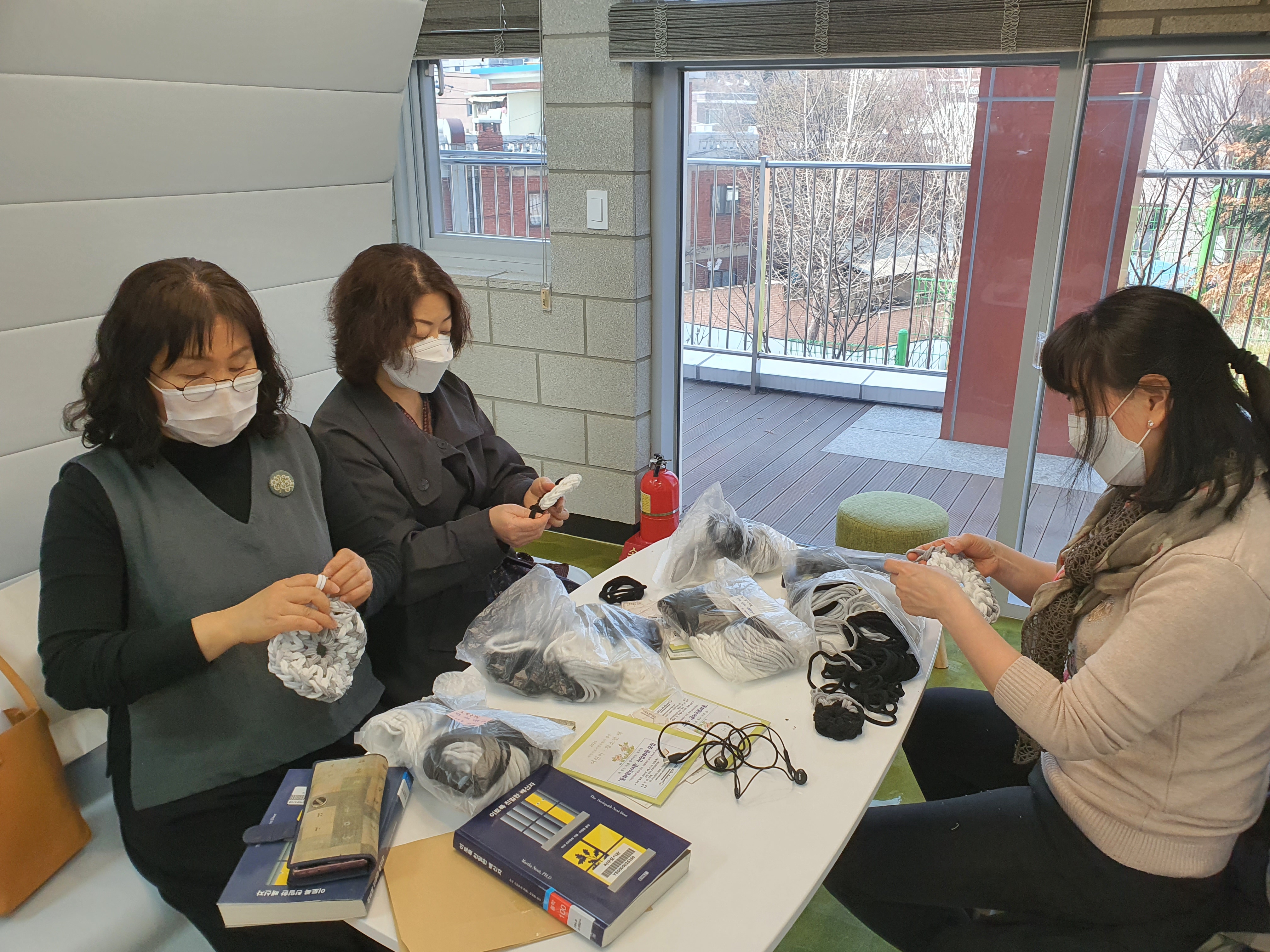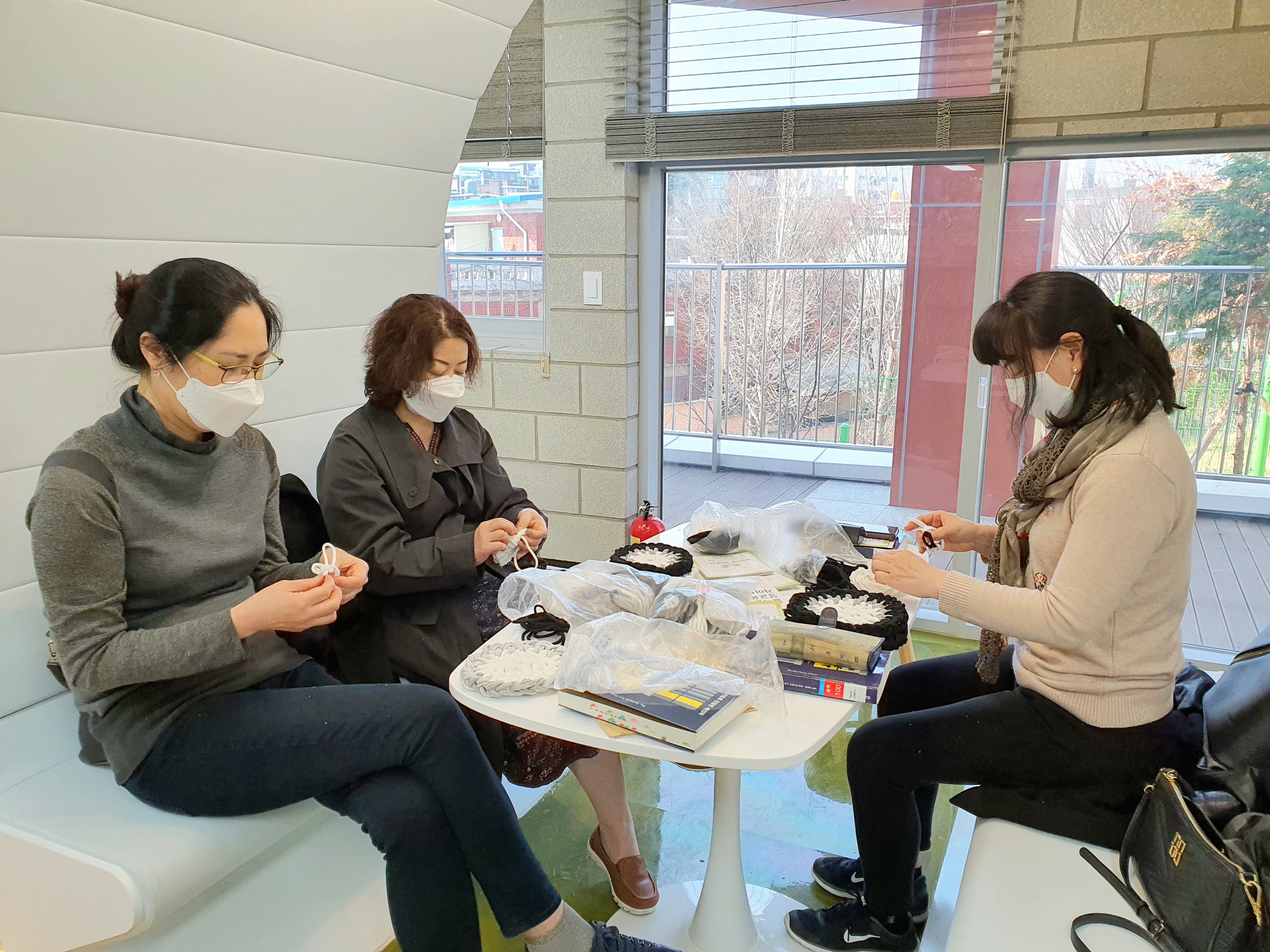 -전체모임에 참여 못했던 회원들과 양말목뜨기완성