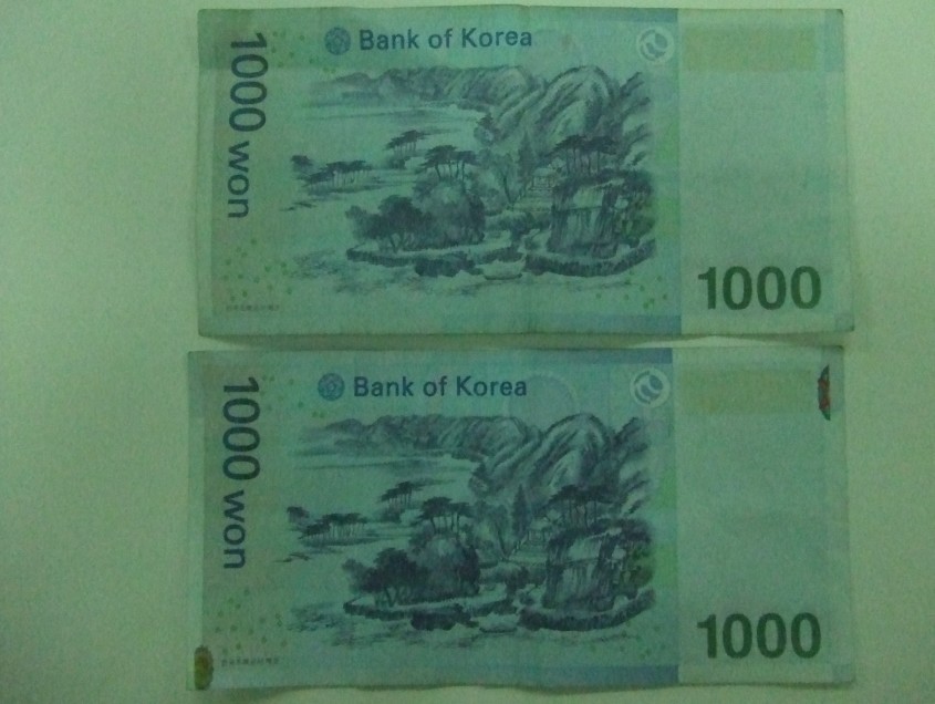 일반적으로 지폐에 있을 수 있는 (천원권이 아니라두) 도안이거나 색이면 이해가 가지만