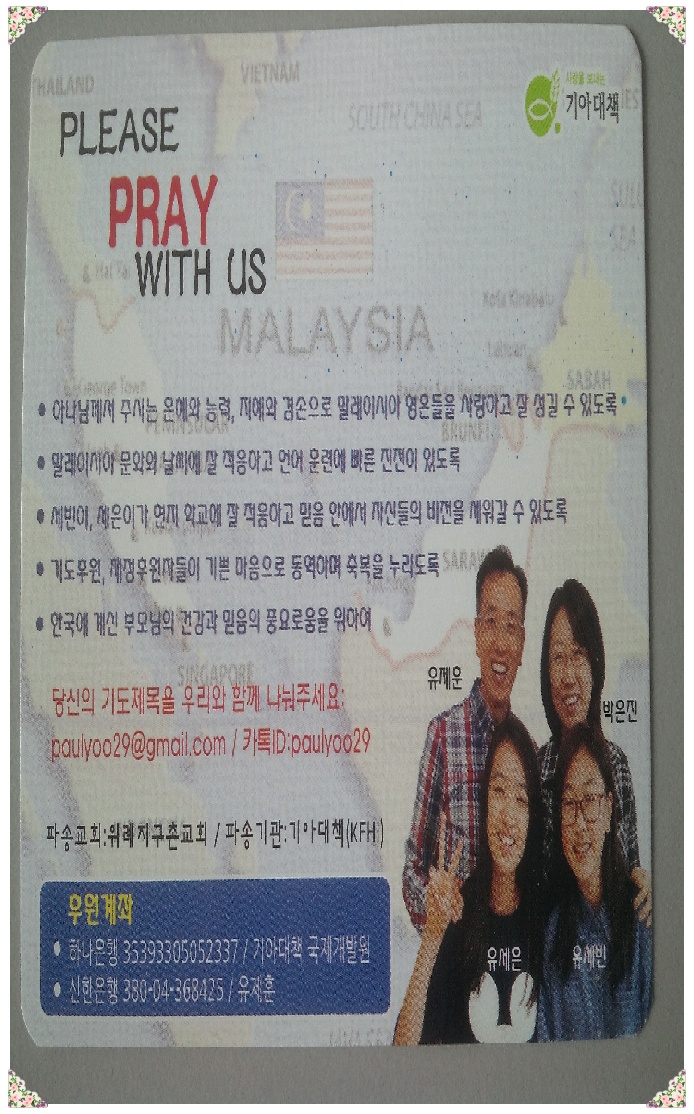 음악을 전공하신 사모님과 우리의 큰 힘이 되어줄 유제훈 선교사님