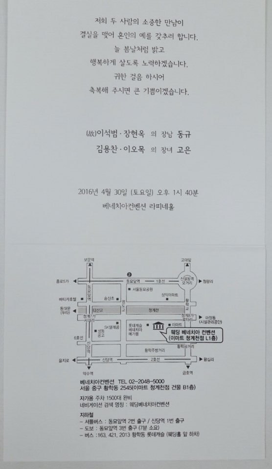 ◆ 장소 : 서울중구황학동 2545번지웨딩벤네치아 컨벤션(02-2048-5000)라피네홀
