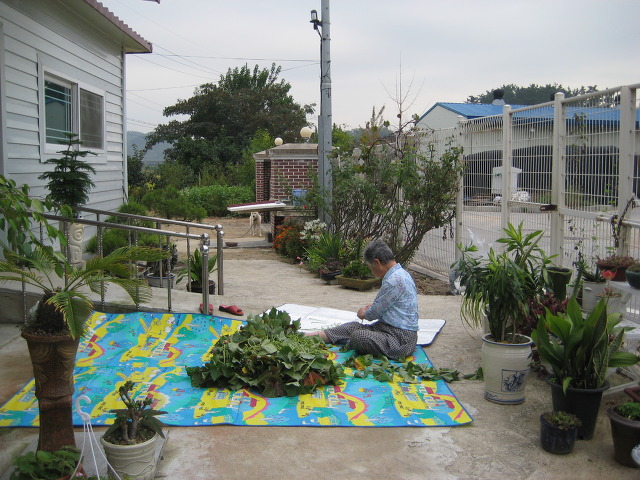 자리를 펴고 한 옆에선 줄기와 잎을 따로 분리하고 계시다.. 당신들 스스로 이젠 뭔가를 찾아서 하시며 즐거움을 맛보시는것 같다..