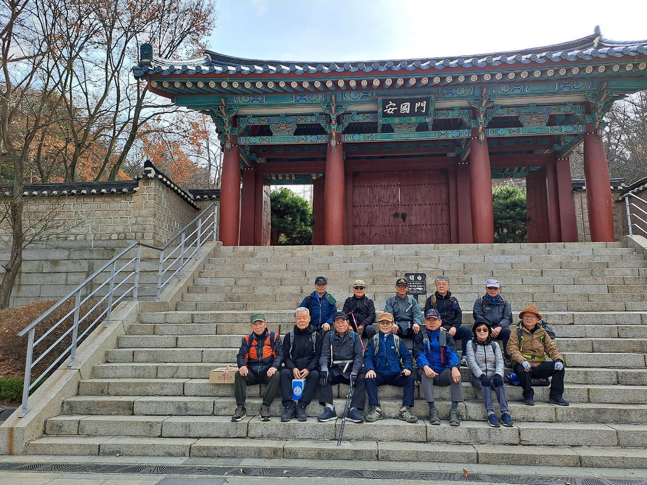 강감찬 장군을 기리는 사당 앞 안국문에서 단체사진을 남긴다 (참가자 12명 , 앞쪽부터..호칭생략)