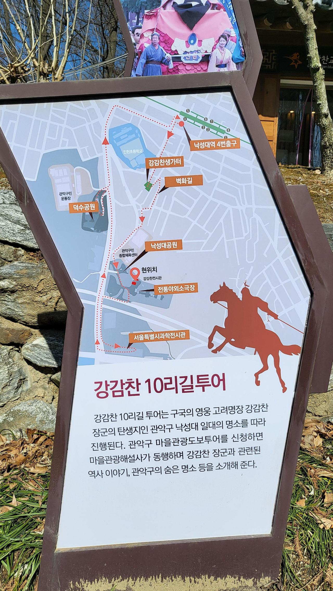 강감찬장군의 업적을 기리는 낙성대공원의 안내도와 설명문 .