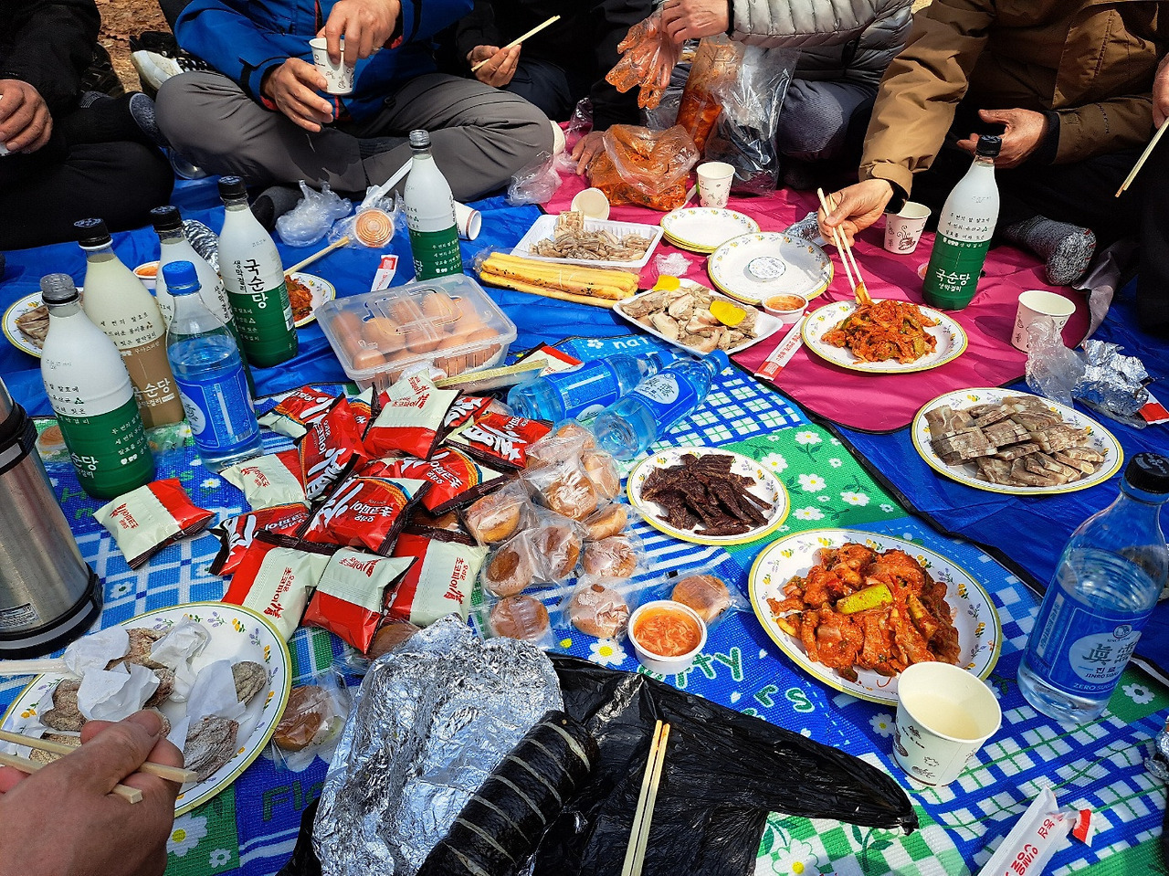 이곳에서 치킨과 여러가지 안주와 맥주, 소주로 하산식을 즐긴다..