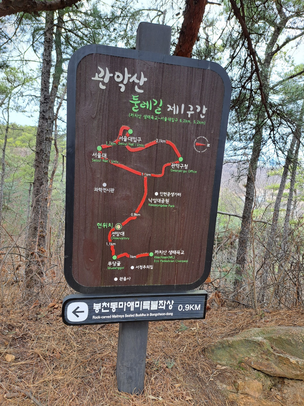 관음사 입구에서 관음사, 무당골, 인헌공 강감찬 길 전망대, 낙성대, 서울대학교 정문을 지나