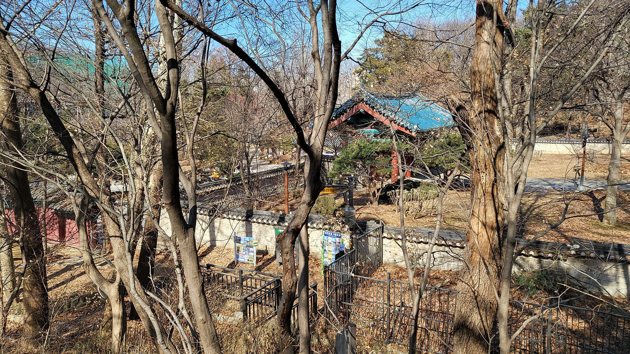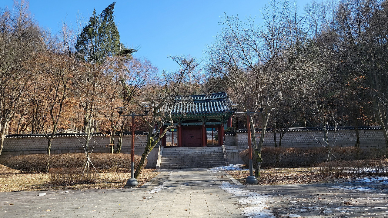 인국문이라는 현판이 걸려있는 외삼문을 통과하면 잔디와 수목으로 깔끔하게 조경이 된 넓은 정원이 펼쳐지고