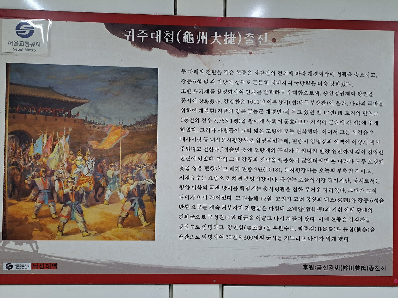 낙성대역에서 동지들을 기다리면서 강감찬 장군에 관한 사진 2점만 올린다.