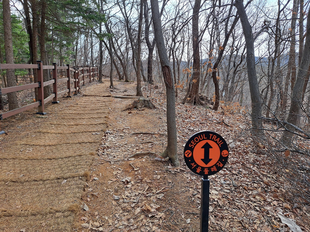 관악산 둘레길 1구간이다 . 이곳엔 야자매트가 깔려져 있다.