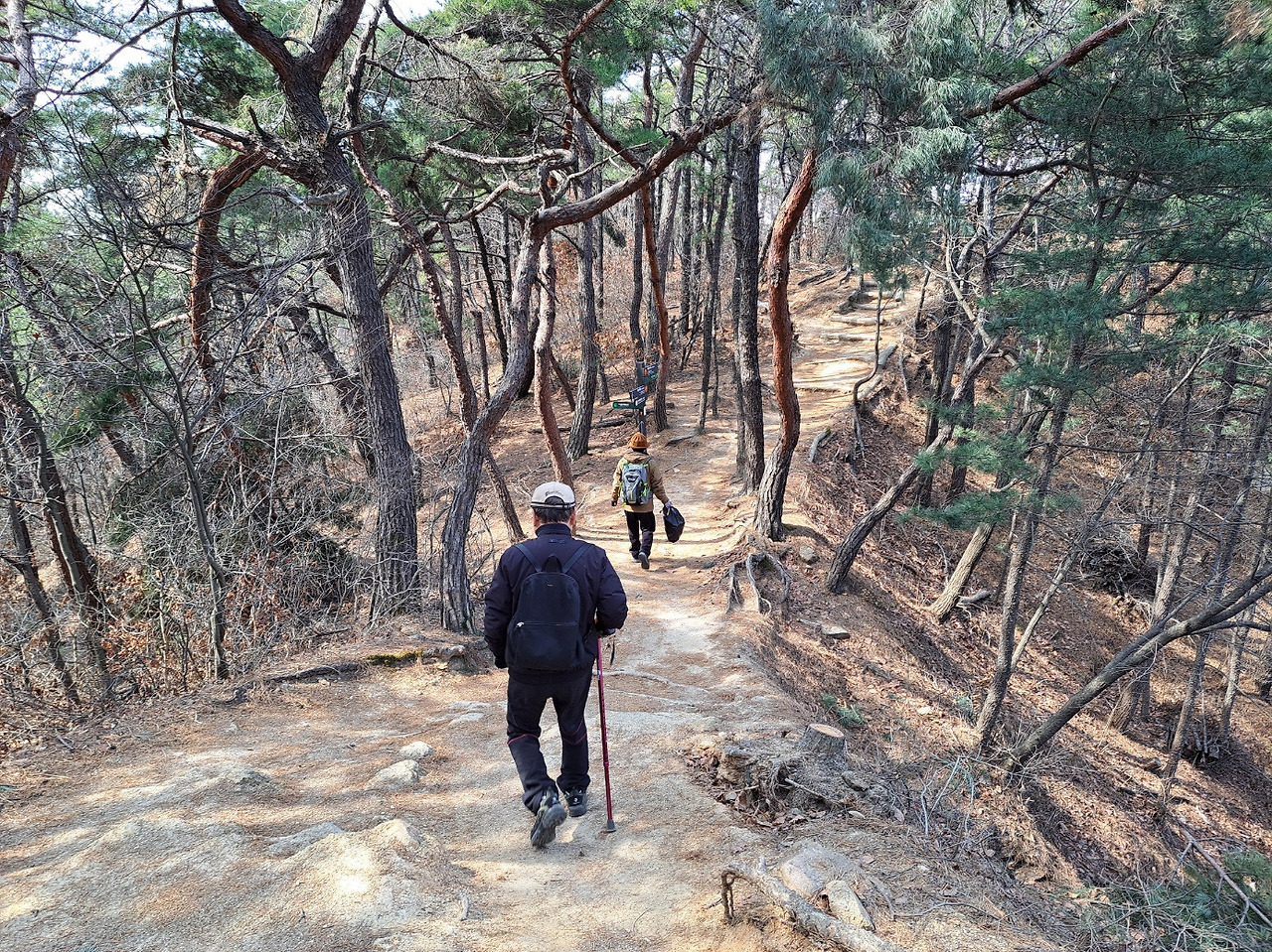 하산길이 아쉬움으로 걷고 있는 정진환 동지의 모습이다.