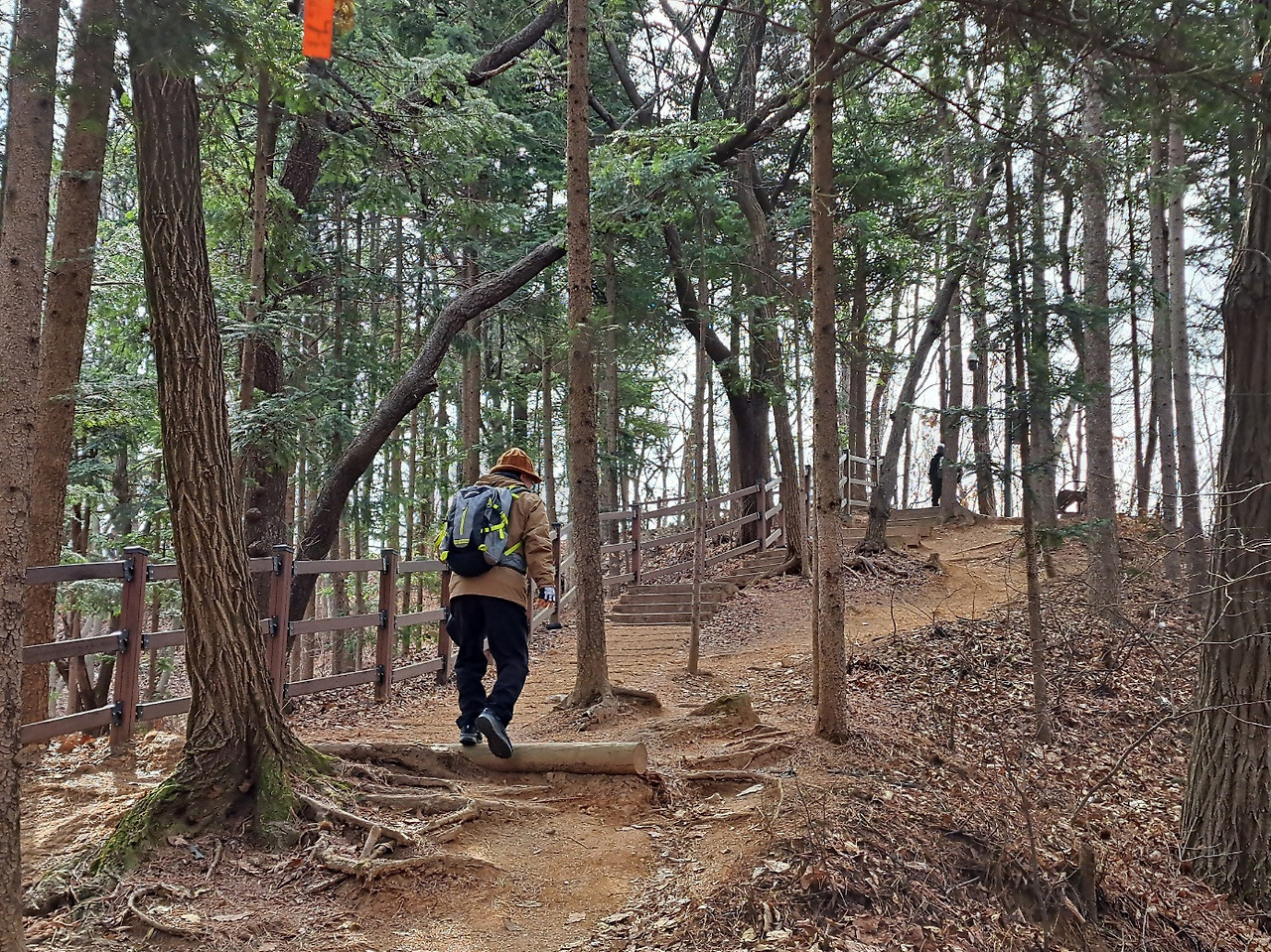 넓고 편안한 산길을 따라 가니 계단이 있다