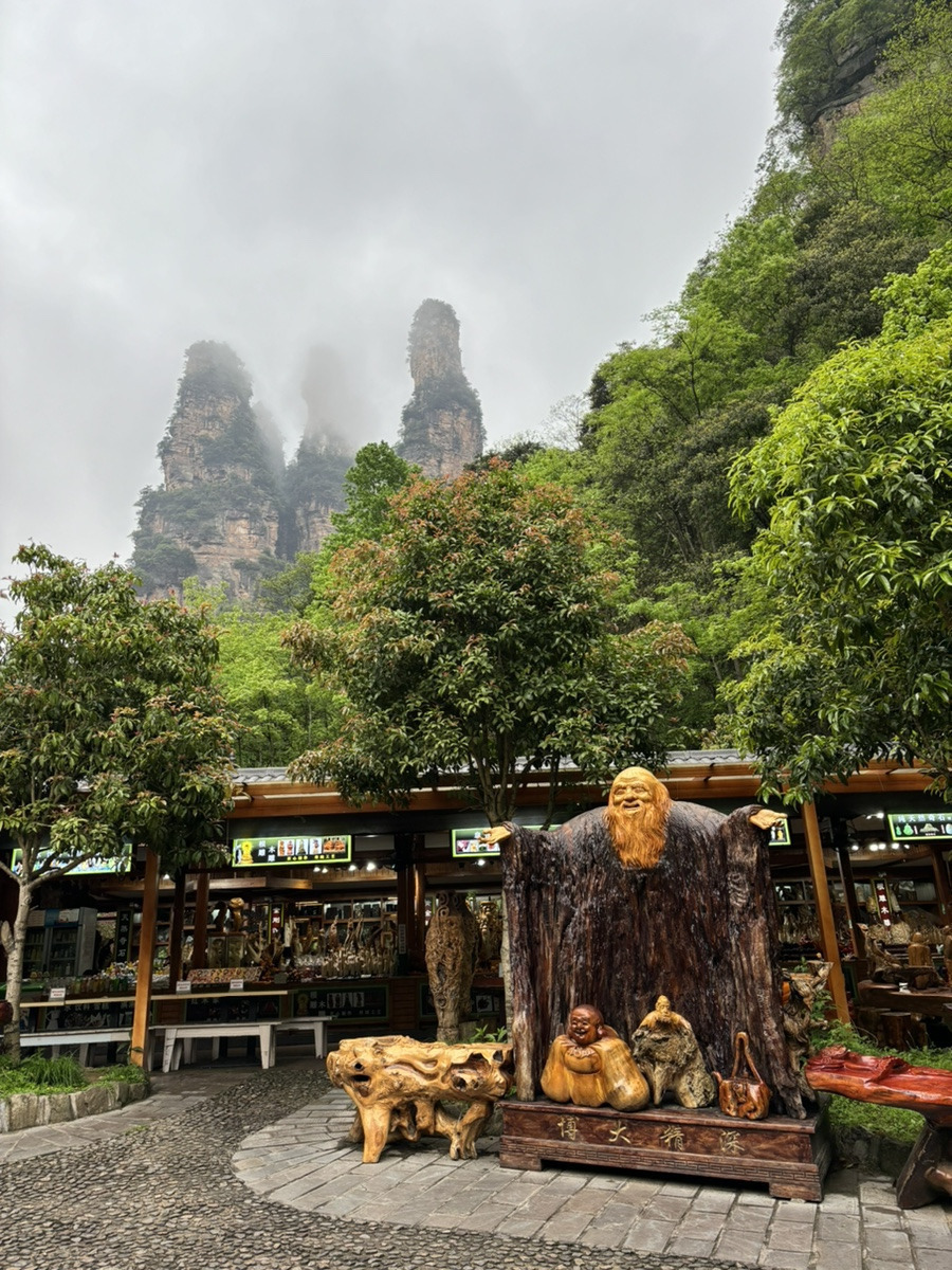 장가계 국가삼림공원 입구에는 장가계를 세상에 알린 우관중 화가의 동상이 서 있다.