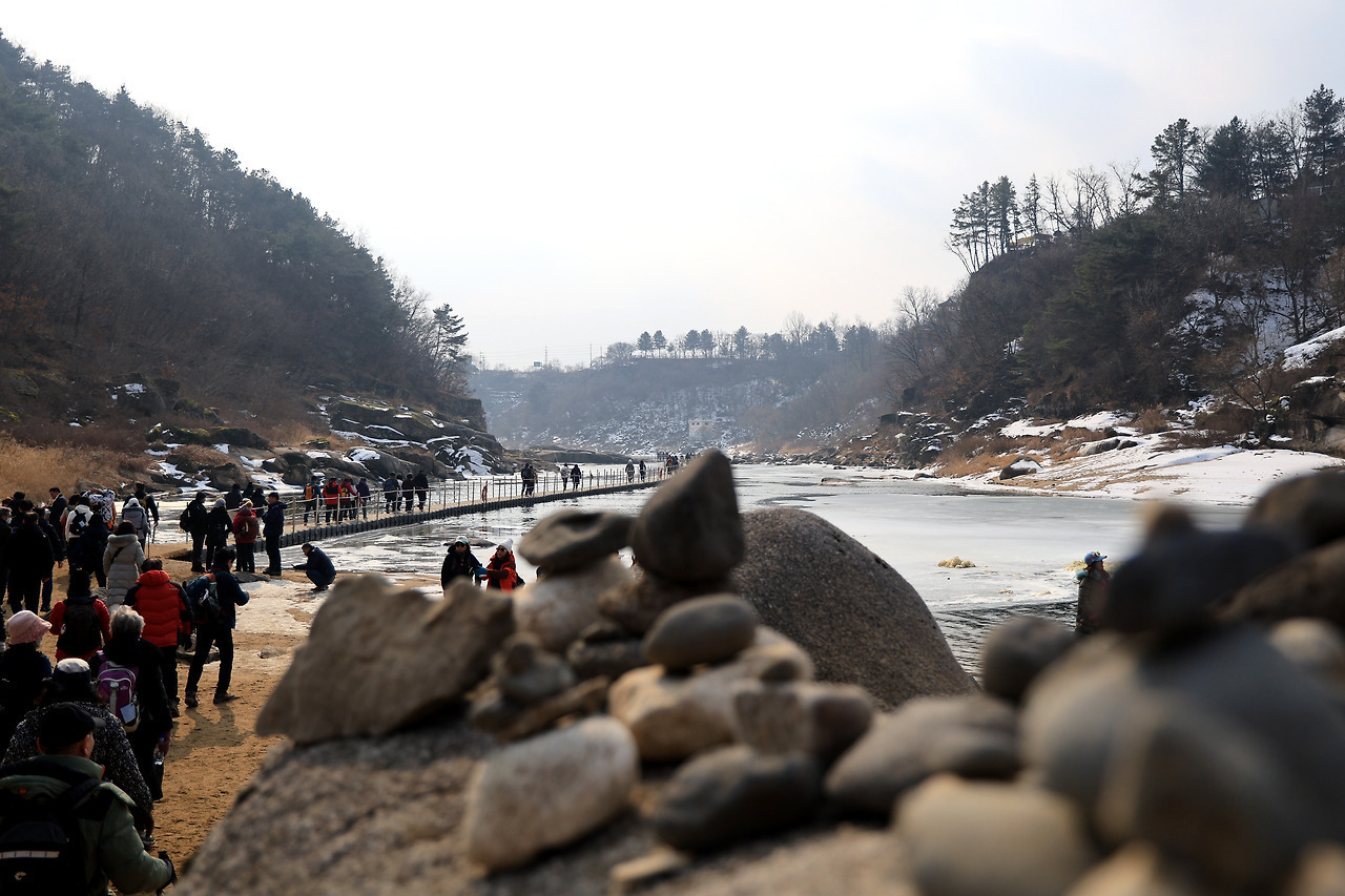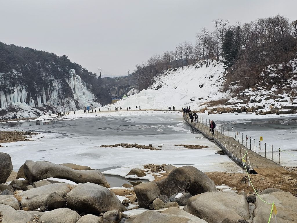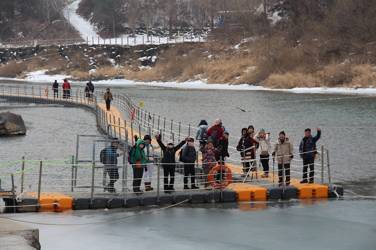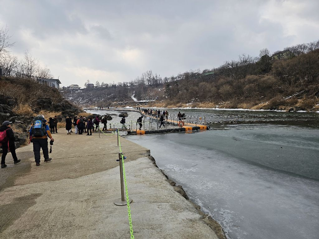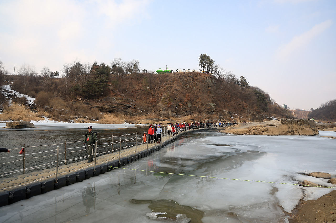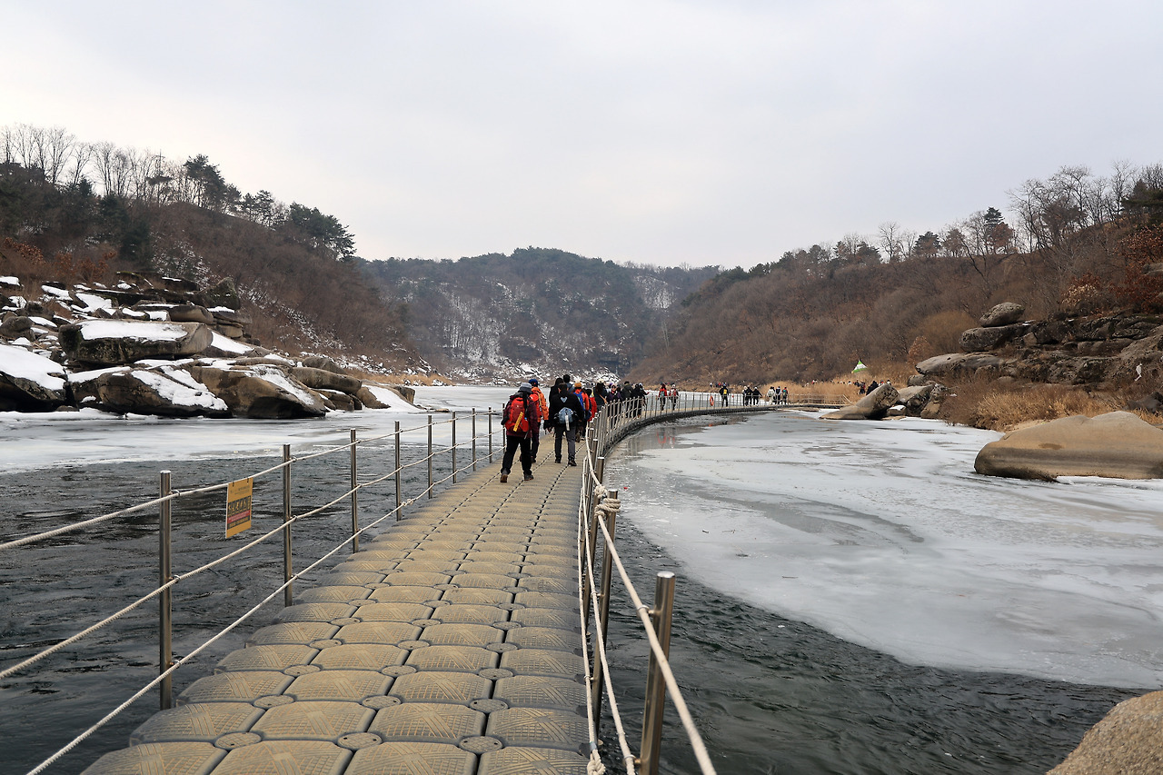 직탕폭포에서 순담까지 약 8.5km 구간에 부교가 설치되어 얼어붙은 강 위로 걸을 수 있습니다