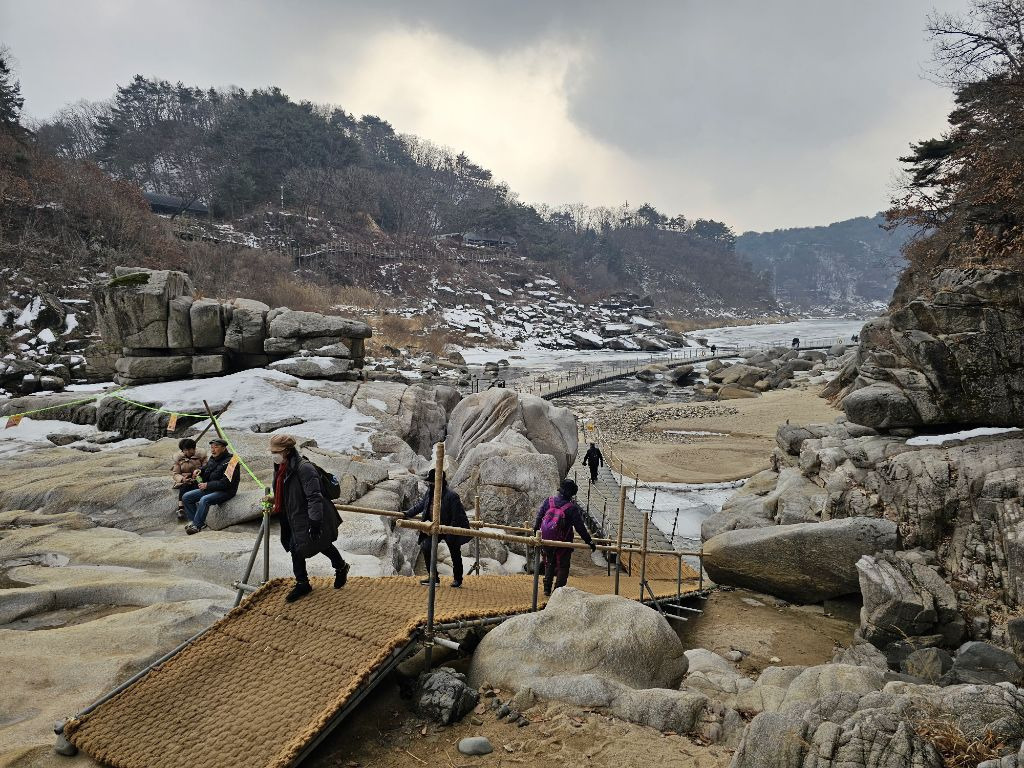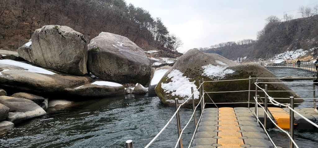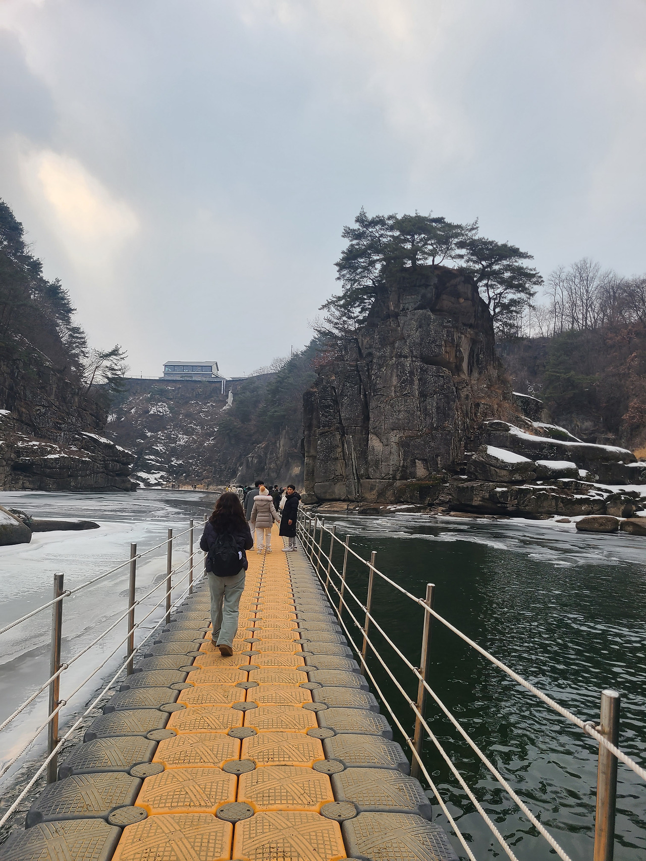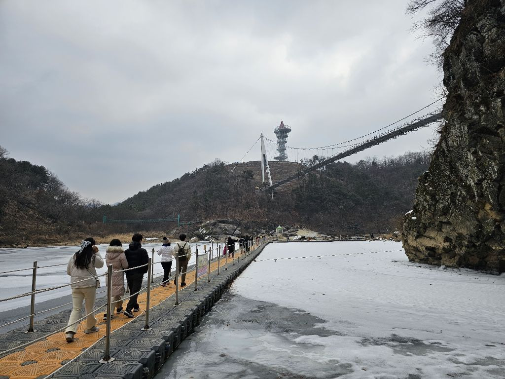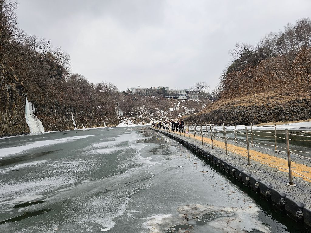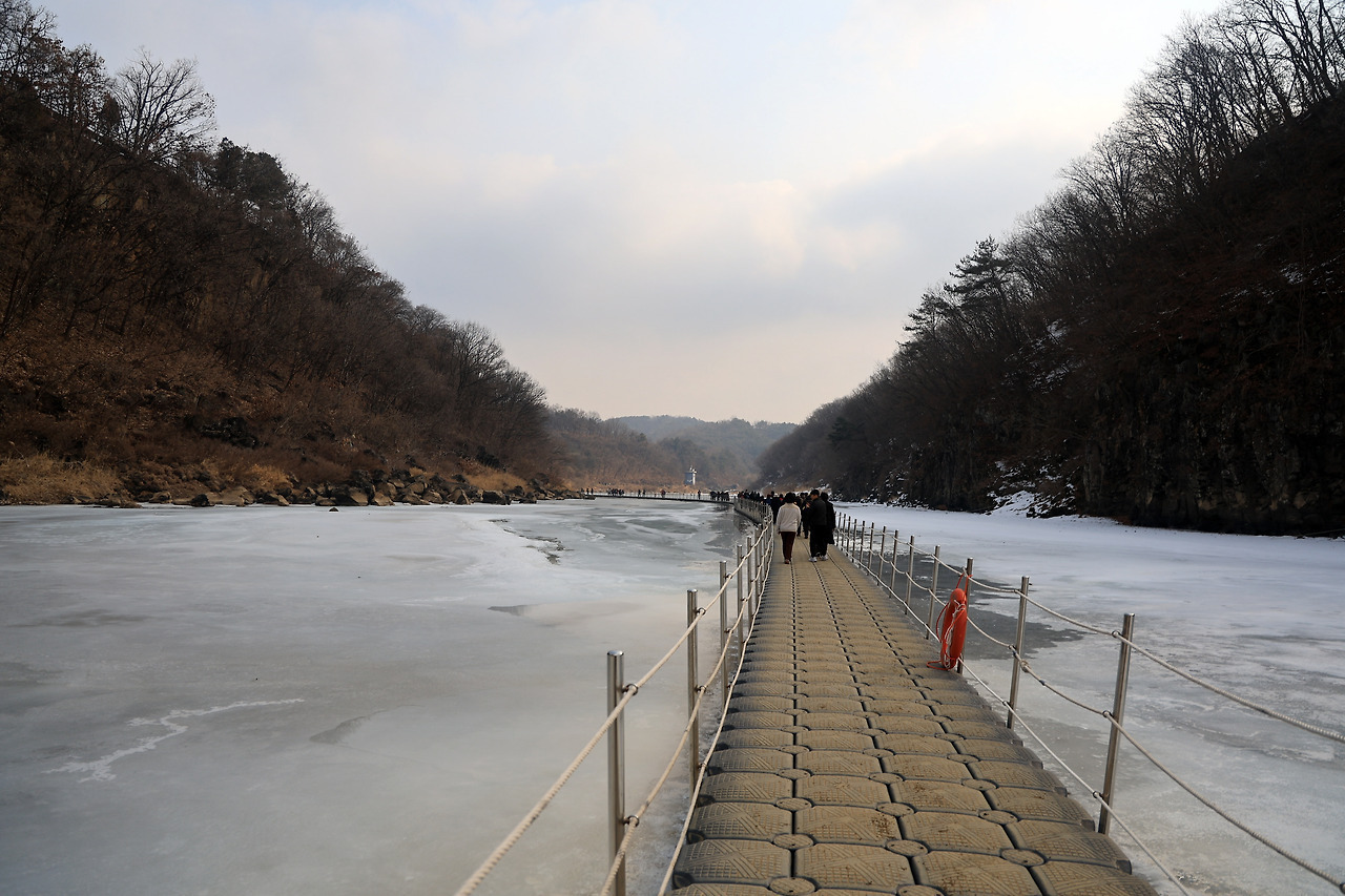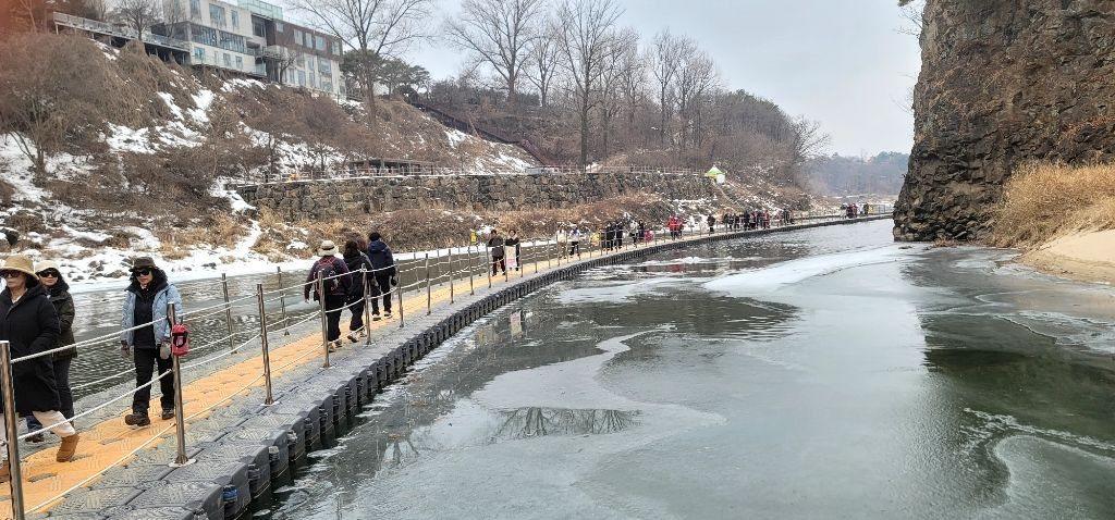 직탕폭포에서 순담까지 약 8.5km 구간에 부교가 설치되어 얼어붙은 강 위로 걸을 수 있습니다