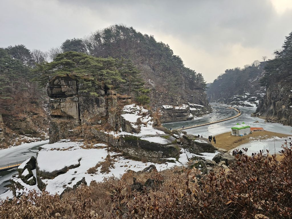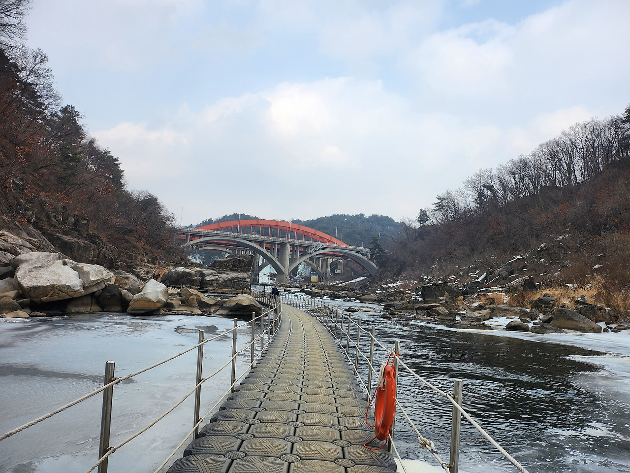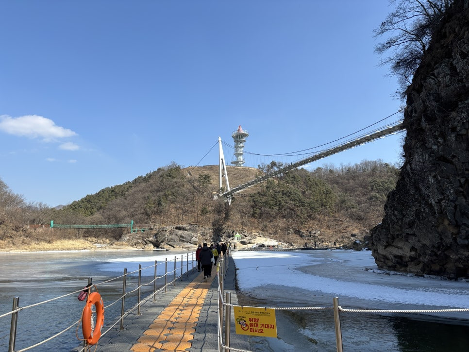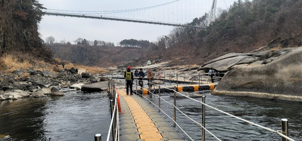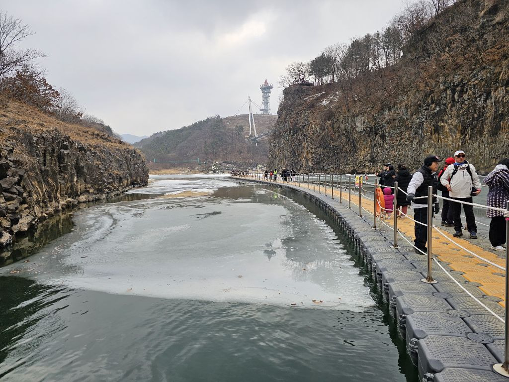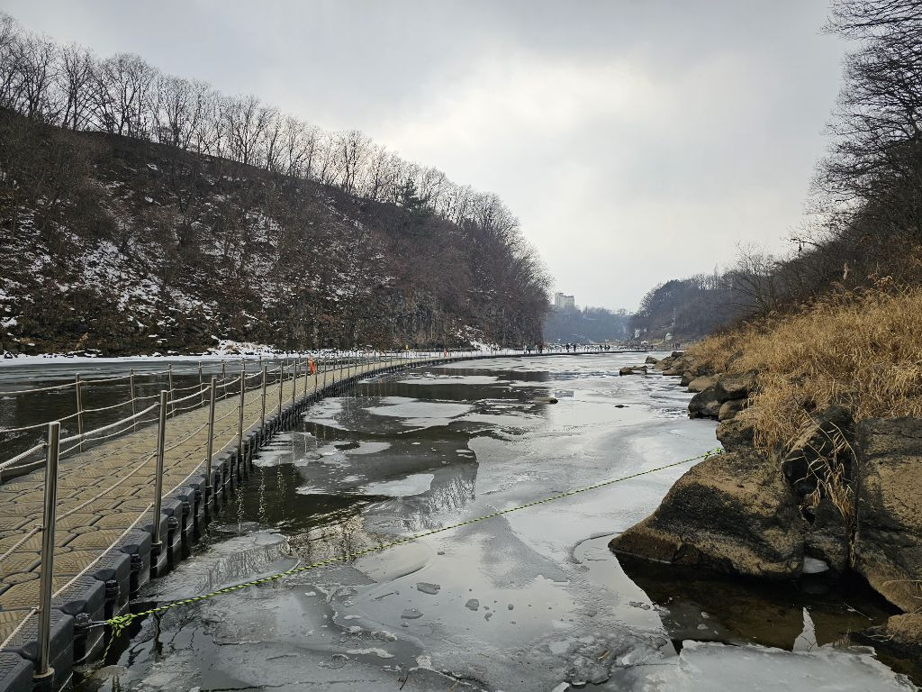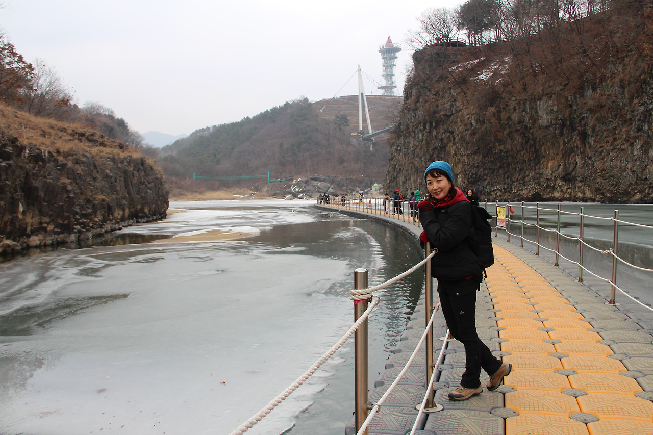 직탕폭포에서 순담까지 약 8.5km 구간에 부교가 설치되어 얼어붙은 강 위로 걸을 수 있습니다