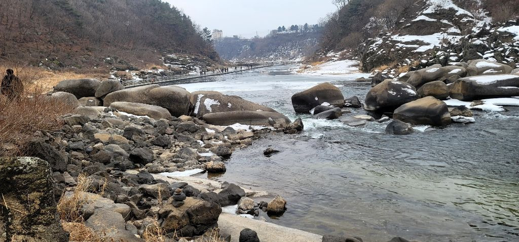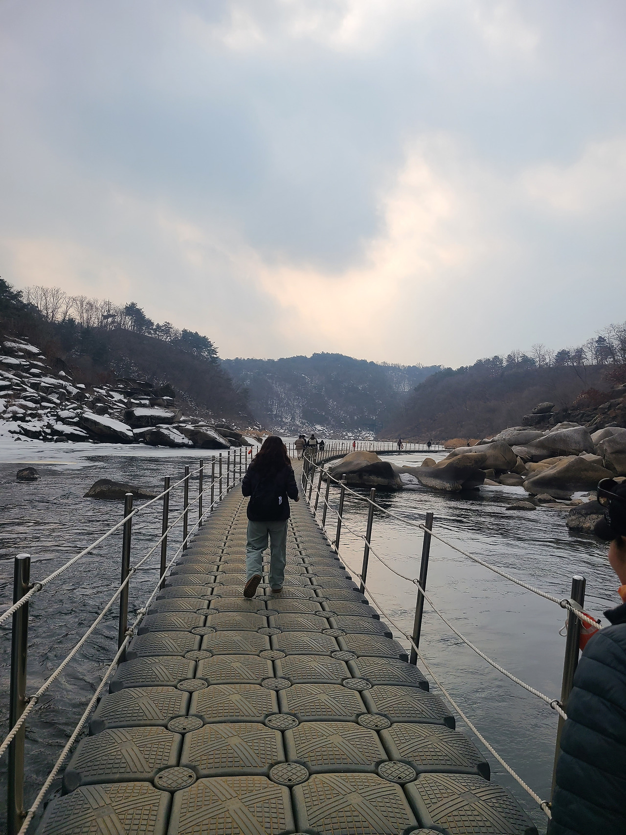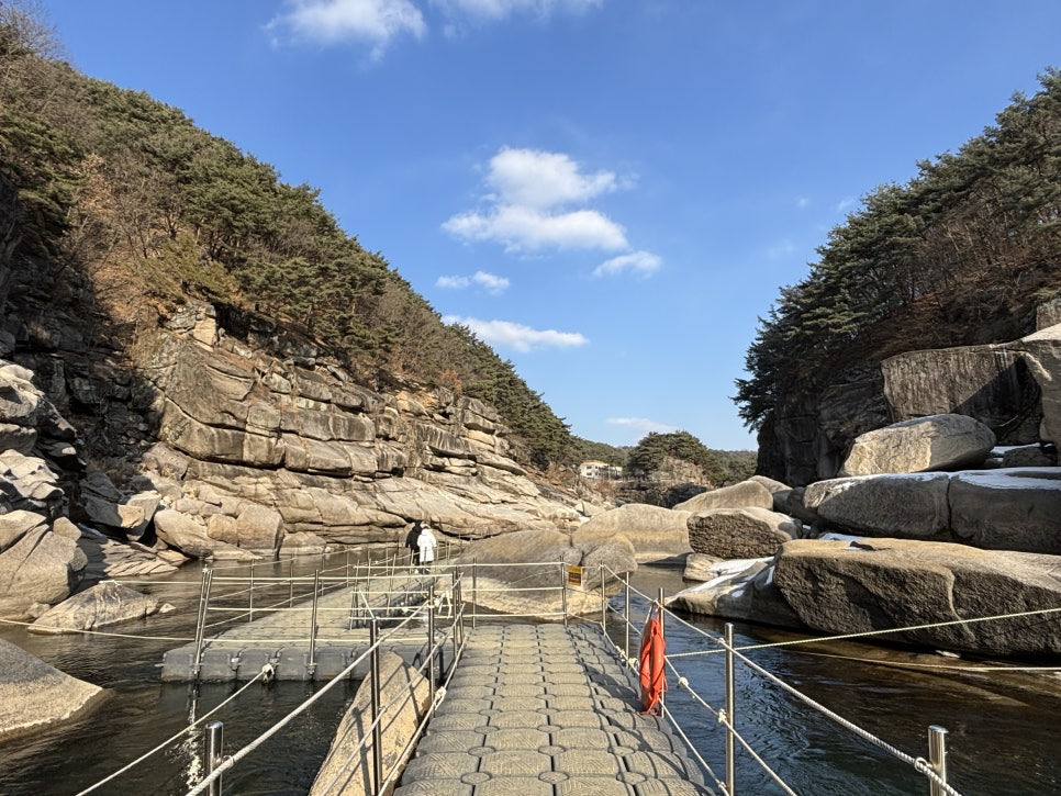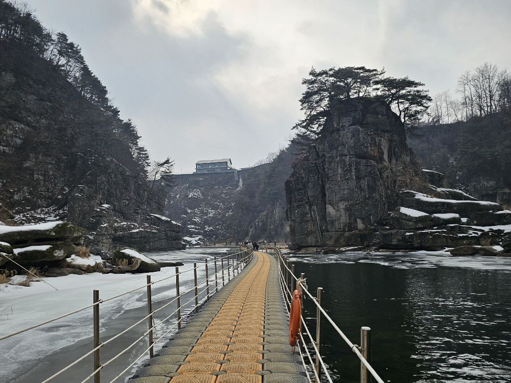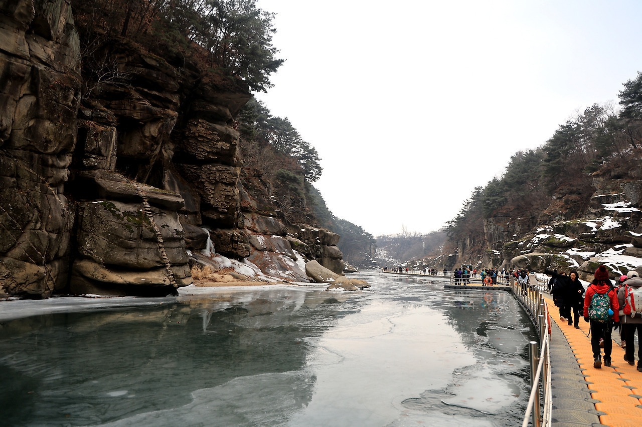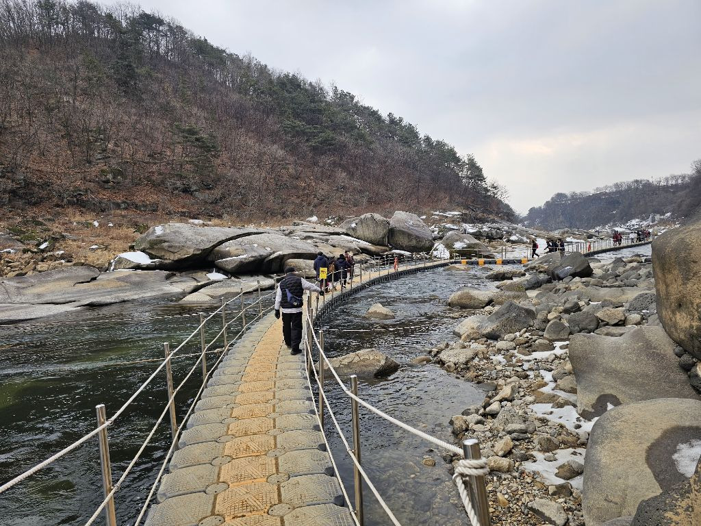직탕폭포에서 순담까지 약 8.5km 구간에 부교가 설치되어 얼어붙은 강 위로 걸을 수 있습니다