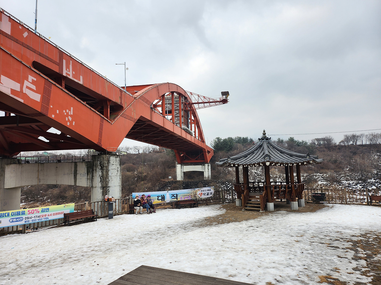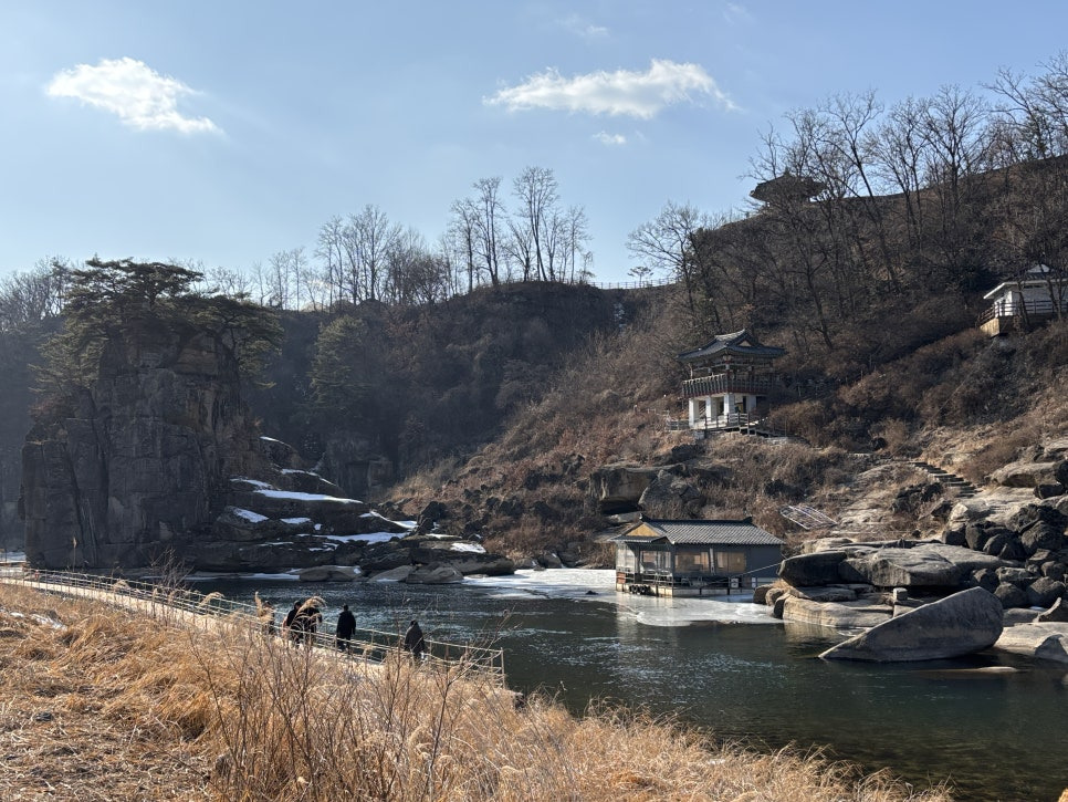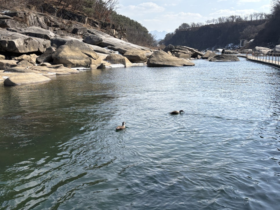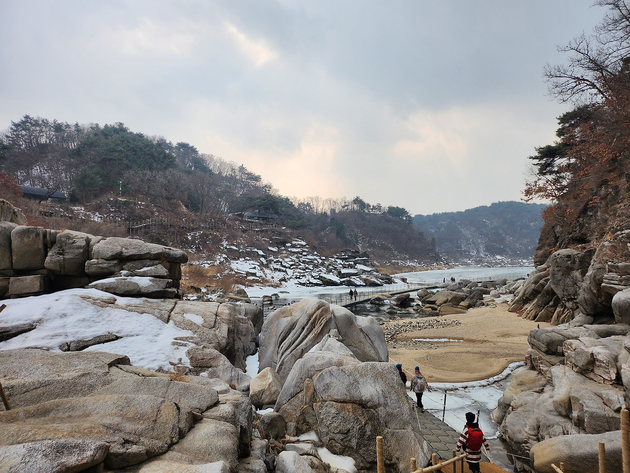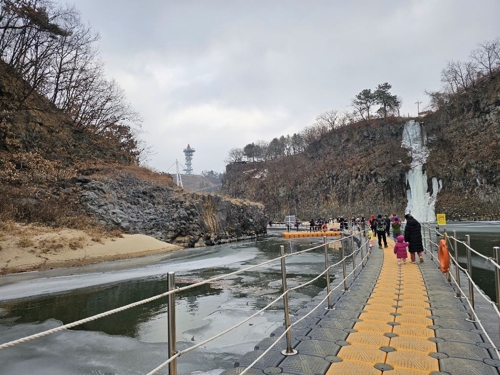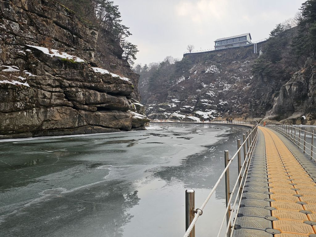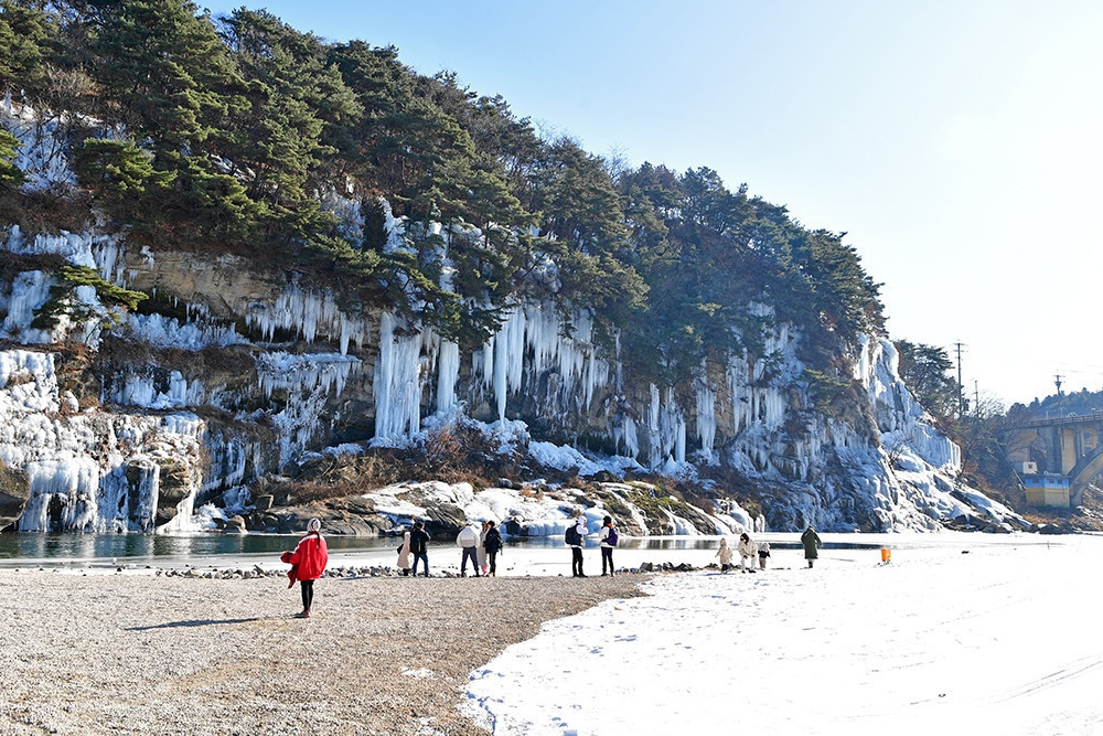 직탕폭포에서 순담까지 약 8.5km 구간에 부교가 설치되어 얼어붙은 강 위로 걸을 수 있습니다