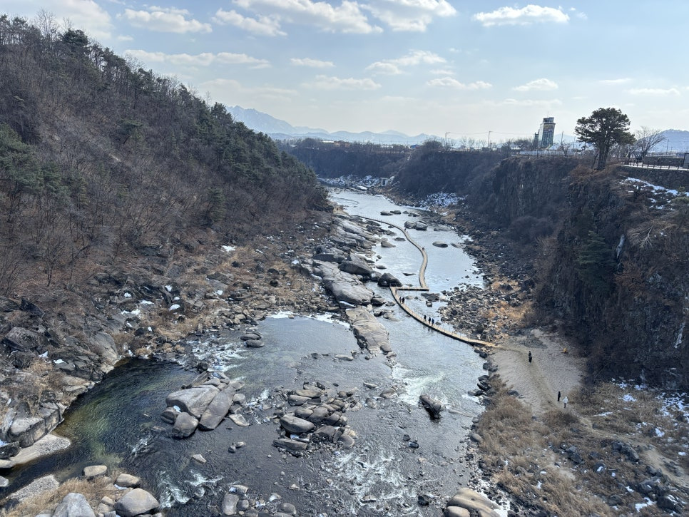 한탄강 계곡 그 자체가 너무 멋졌다. 이런 멋진 계곡을 이렇게 편하게 부교를 따라 걸을 수 있다니 이건 축복이다.